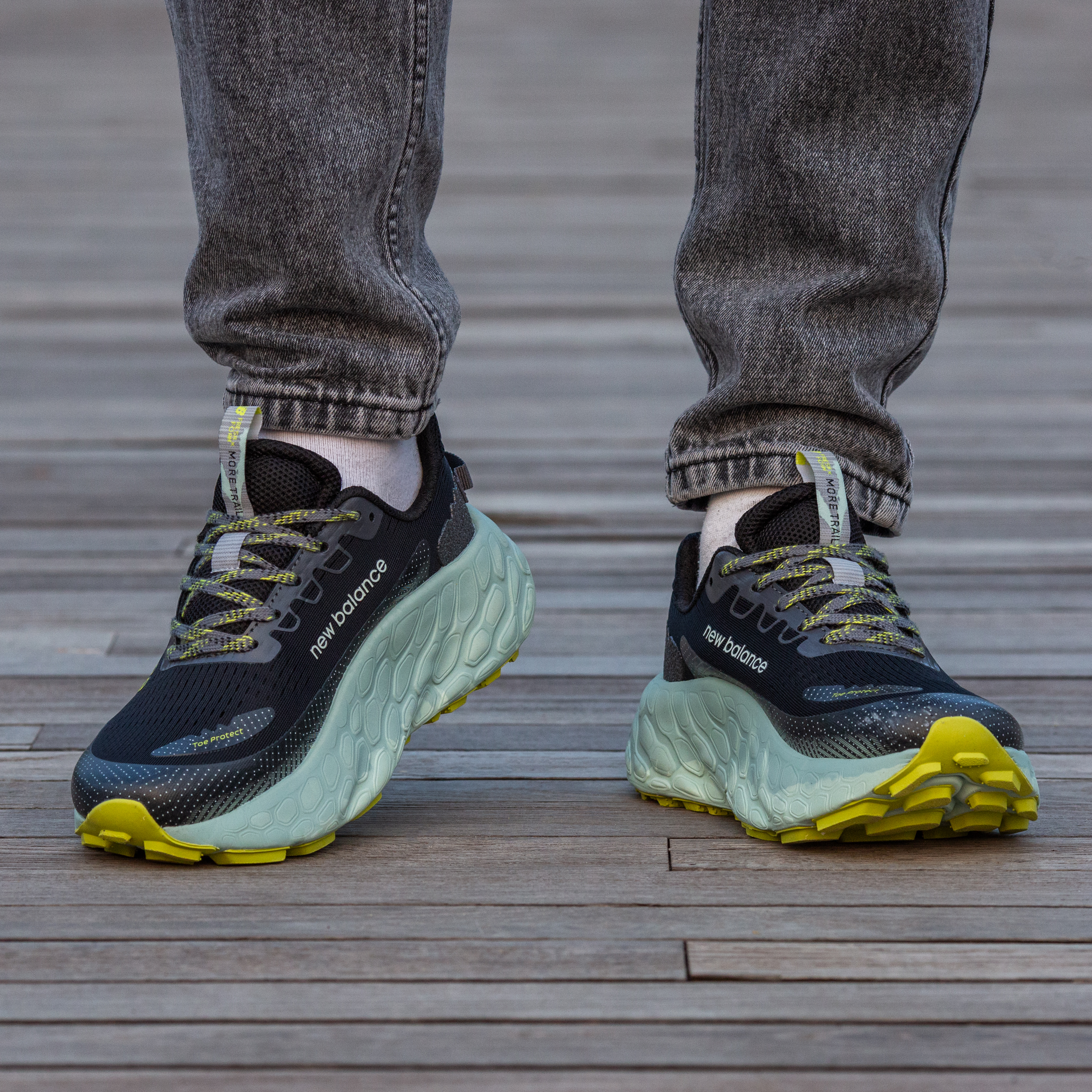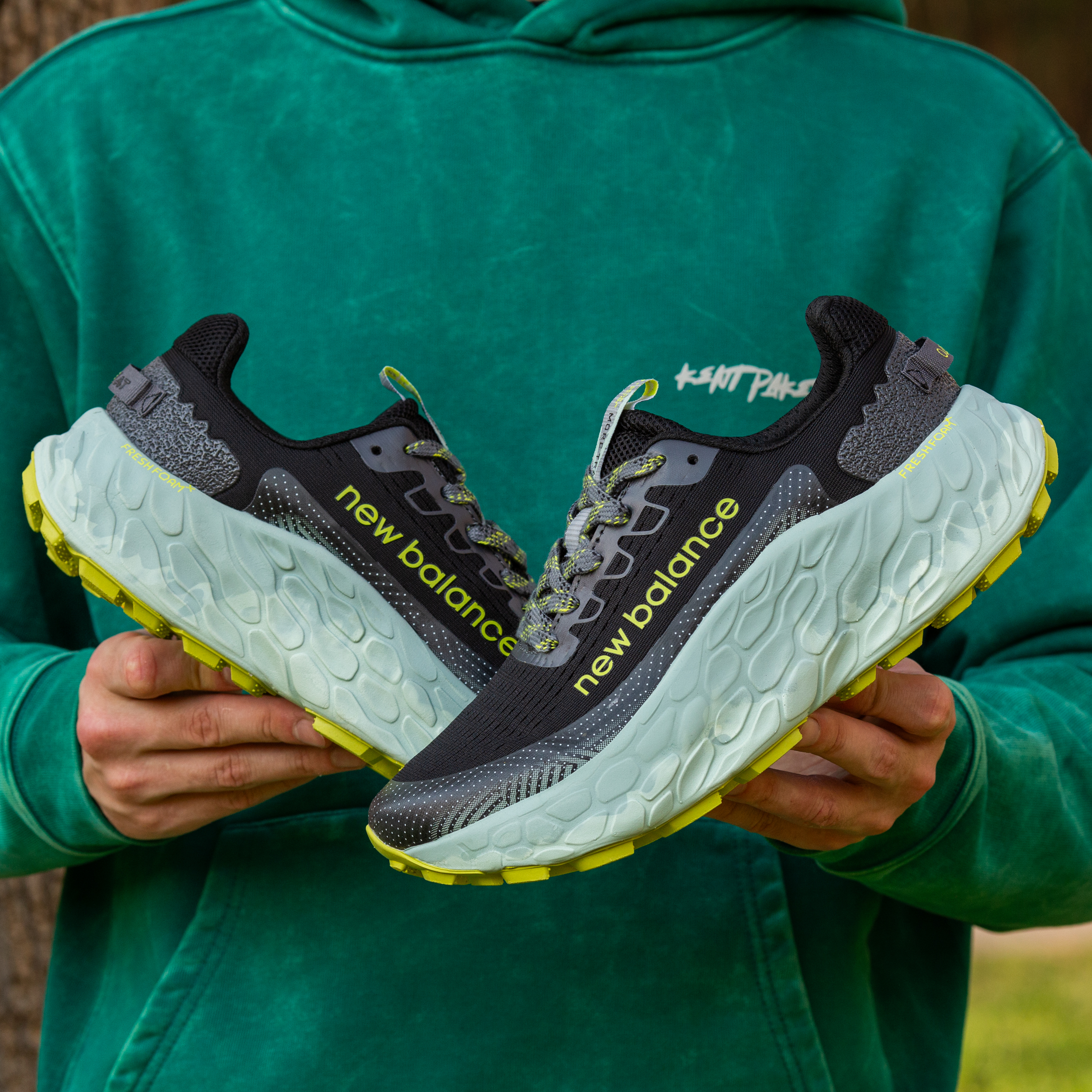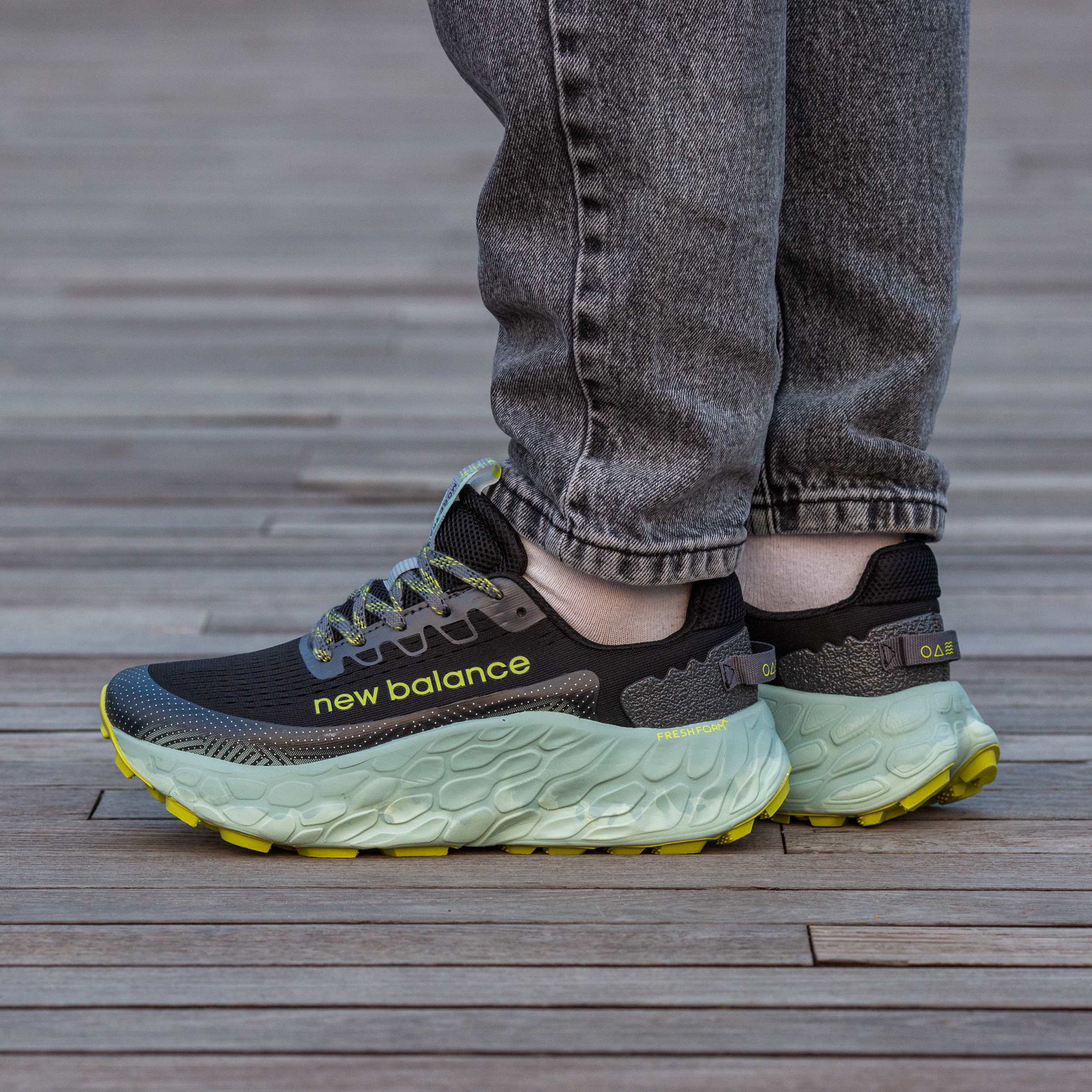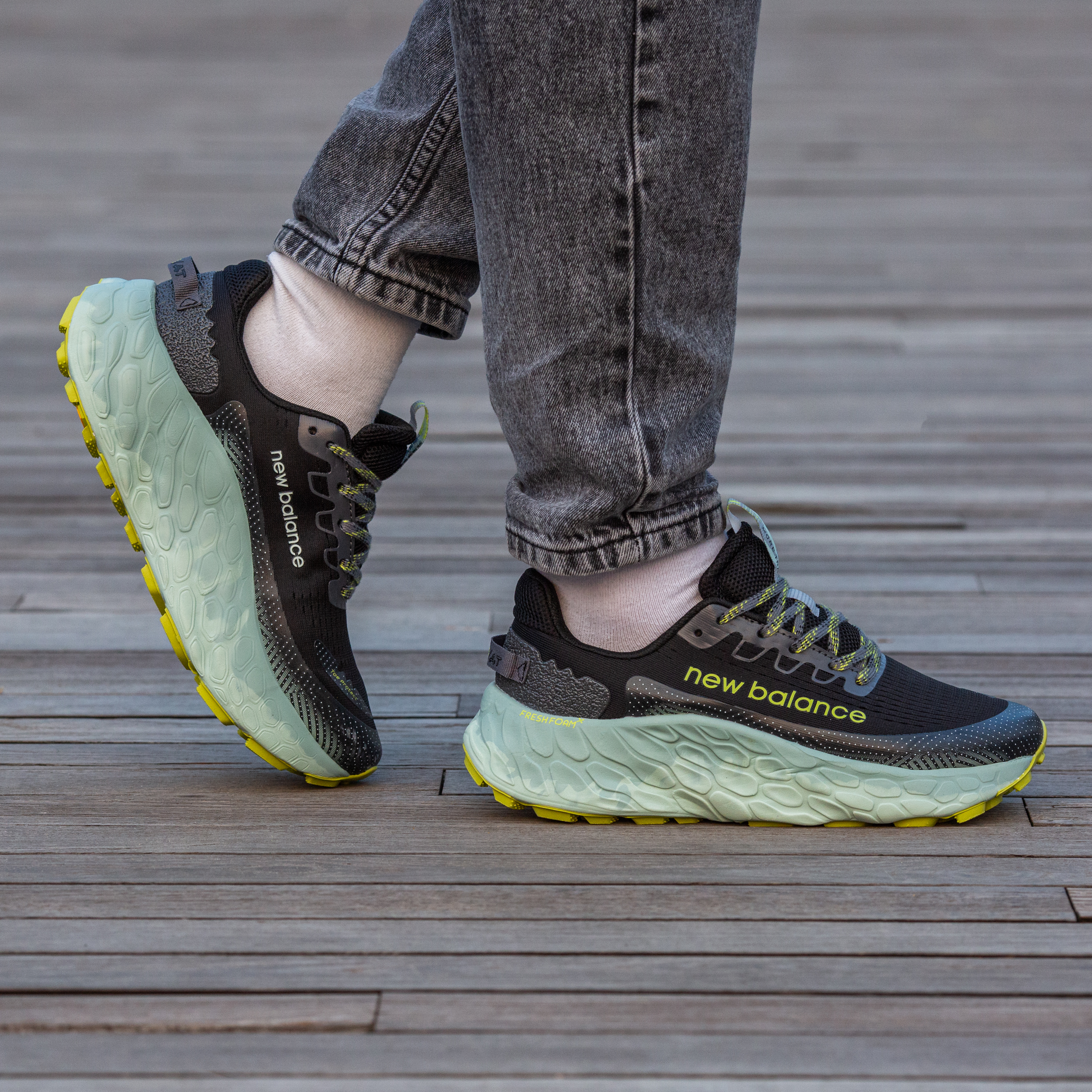 New Balance Trail v3 Black Green — це трейлові кросівки з чорним сітчастим верхом, зеленою підошвою та амортизацією Fresh Foam X для комфортного бігу по пересічній місцевості.