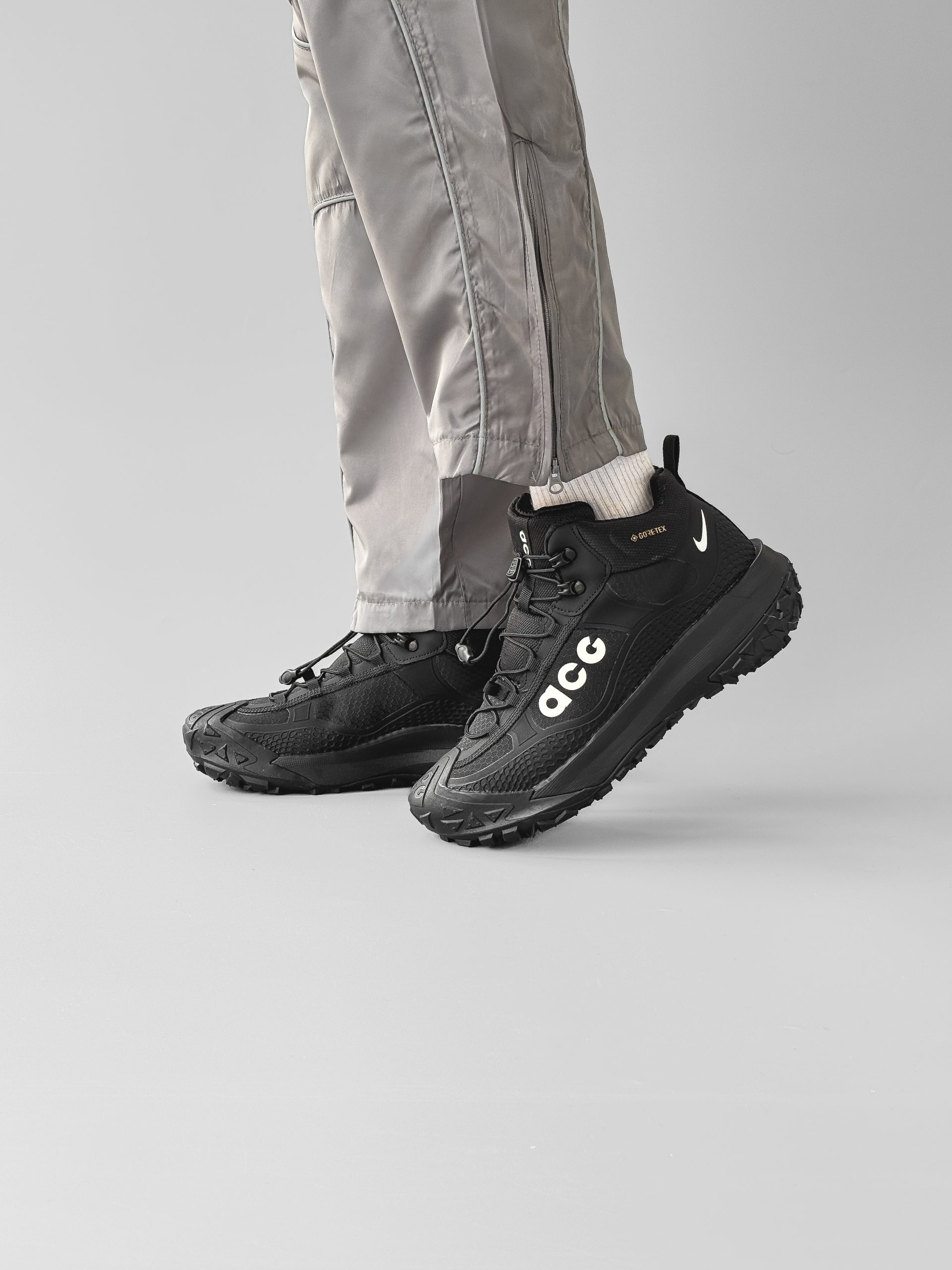 Nike ACG Mountain Fly Black Waterproof Fur — зимова модель у чорному кольорі з утепленим оздобленням, що поєднує комфорт, водостійкість і стабільність під час холодної погоди.