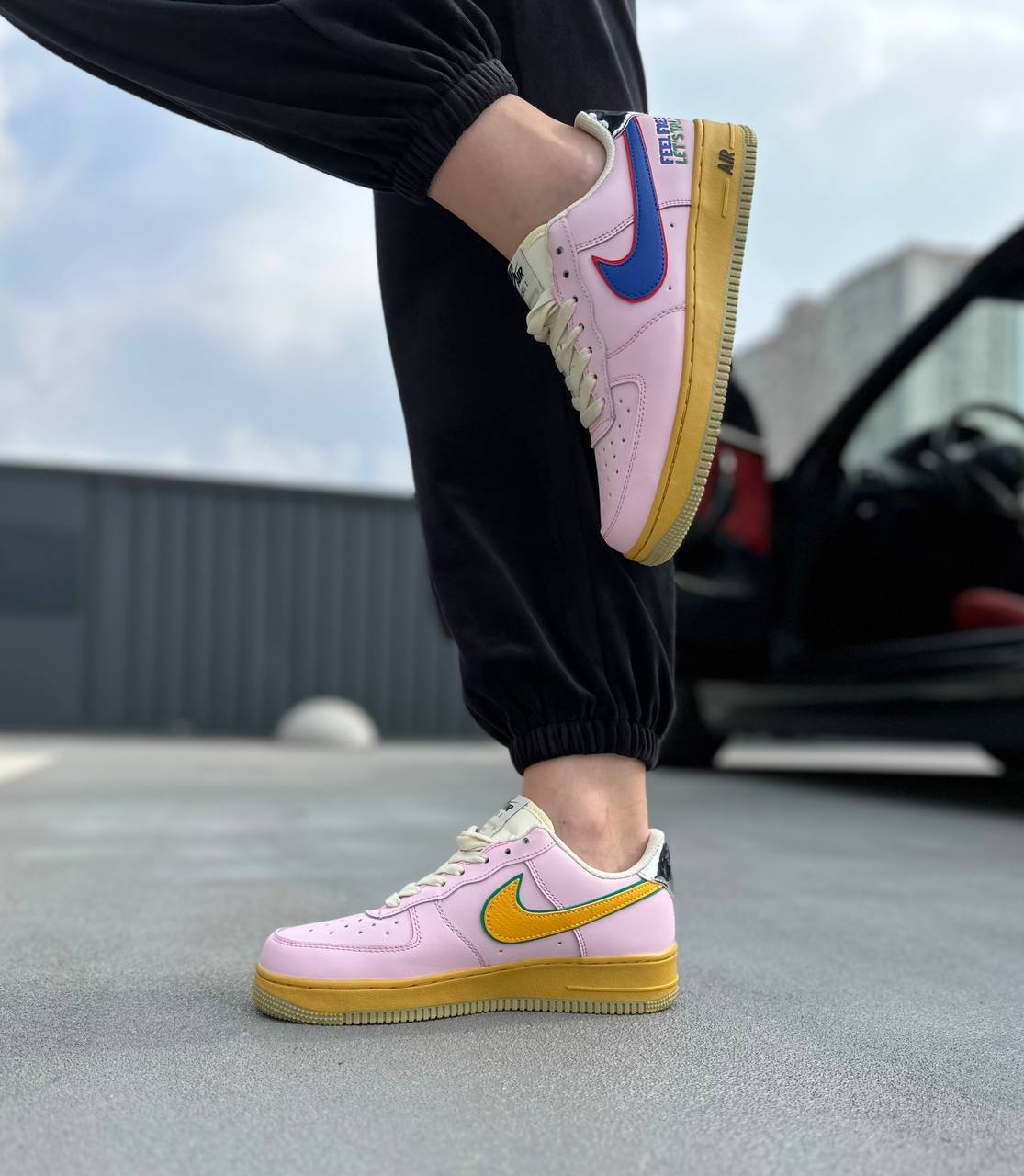 Nike Air Force 1 07 Limited Edition Pink Green Yellow — яскрава модель у поєднанні рожевого, зеленого та жовтого відтінків, яка зберігає культовий силует і додає образу сміливості та сучасного стилю.