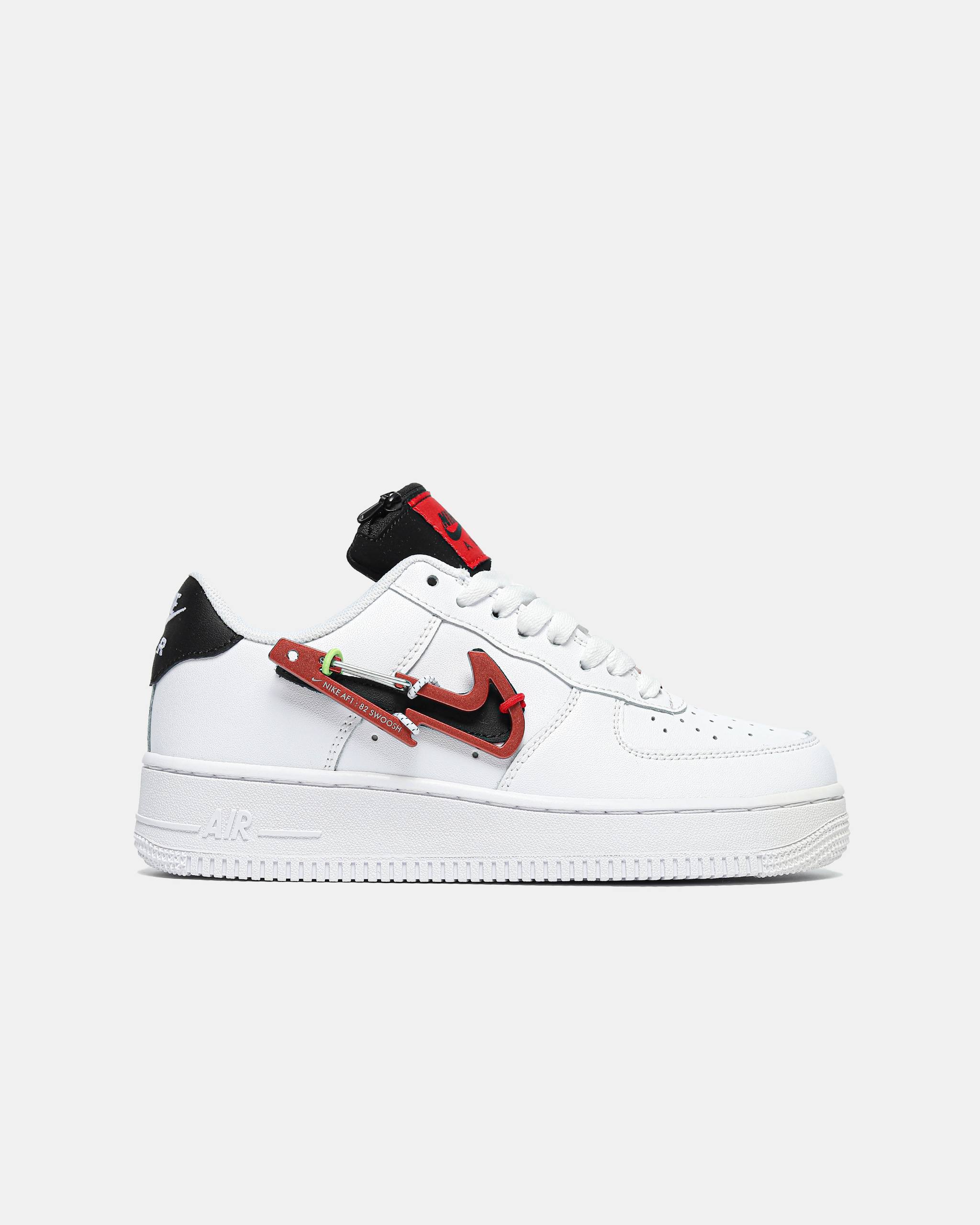 Nike Air Force 1 ’07 PRM Mousqueton Swoosh Rouge — класична модель у білому виконанні з червоним логотипом Swoosh, що поєднує культовий силует, сучасні акценти та виразний стиль.