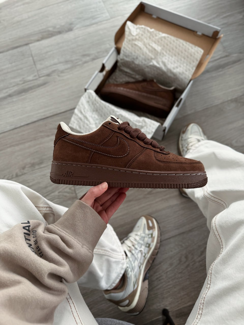 Nike Air Force 1 ’07 Shoes Brown — це культова модель, що поєднує класичний силует із сучасним стилем. Виконані в теплому коричневому відтінку, ці кросівки чудово доповнюють осінньо-зимовий гардероб та додають образу елегантності та стриманості.