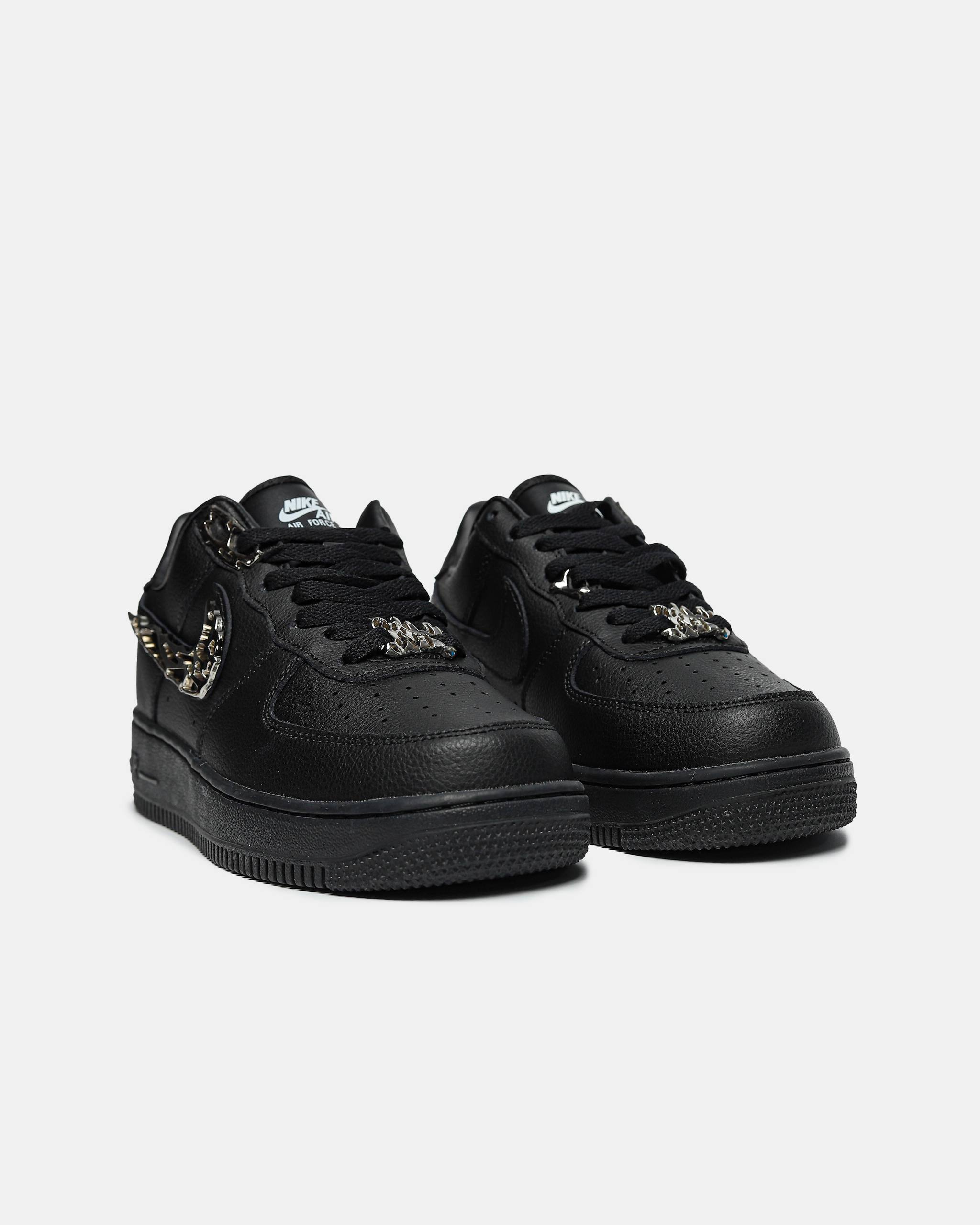 Nike Air Force 1 Low Black ‘Molten Metal Swoosh‘ — класична чорна модель, доповнена унікальним металевим логотипом, що додає яскравого акценту та сучасного стилю.