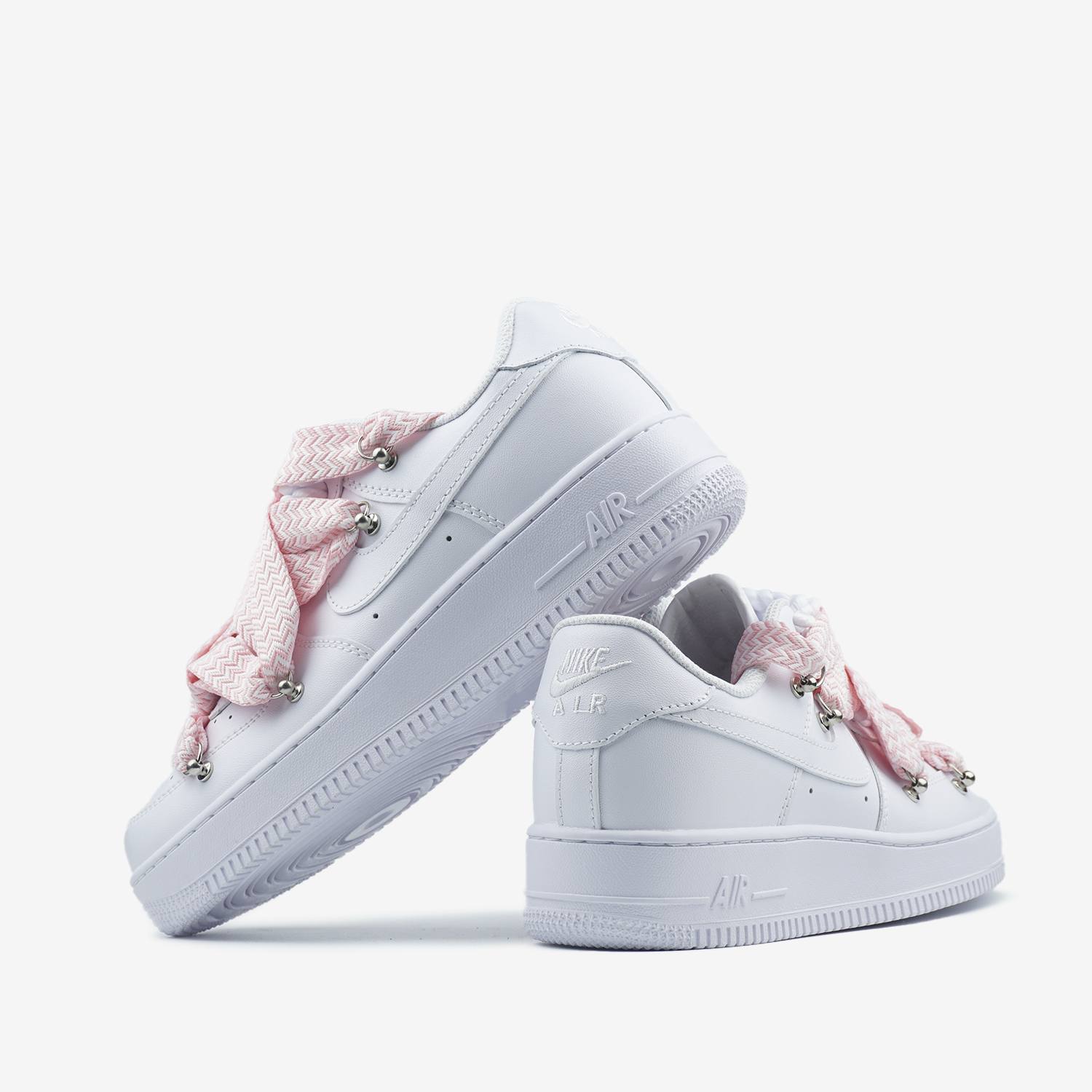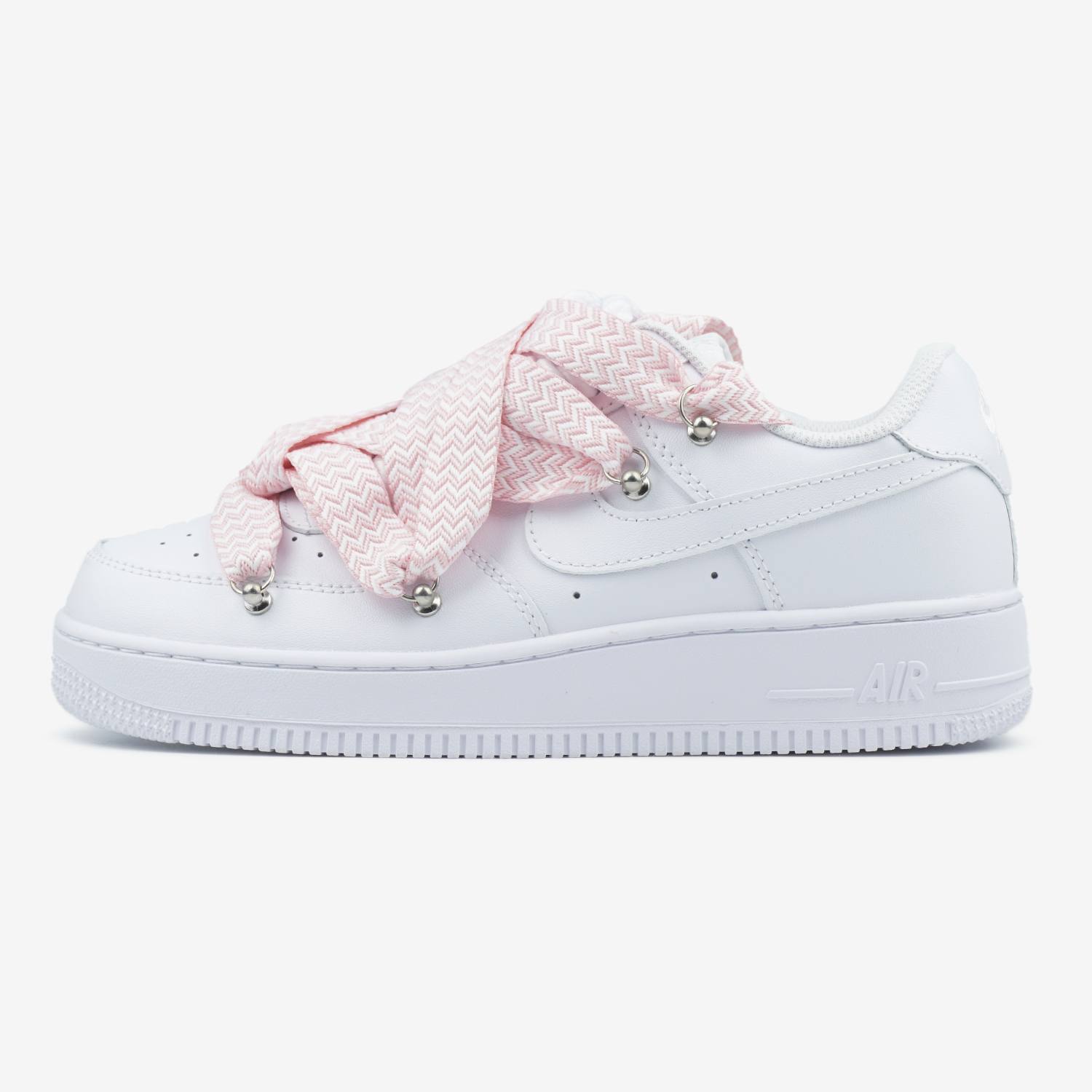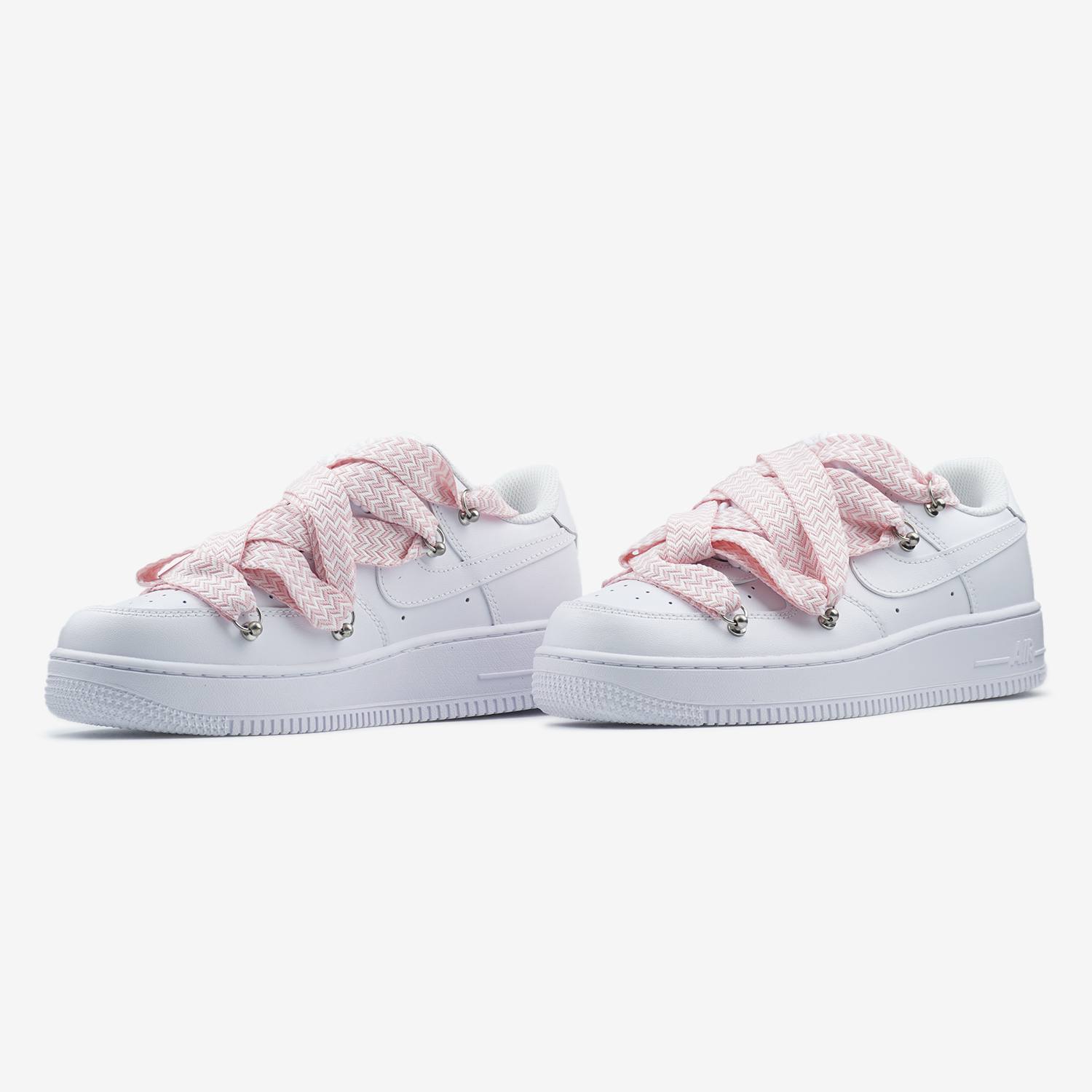 Nike Air Force 1 Low Custom Lanvin Laces Pink — кастомна версія з акцентними ніжно-рожевими шнурками, що підкреслює культовий силует, акуратний дизайн та комфортну посадку для повсякденного стилю.