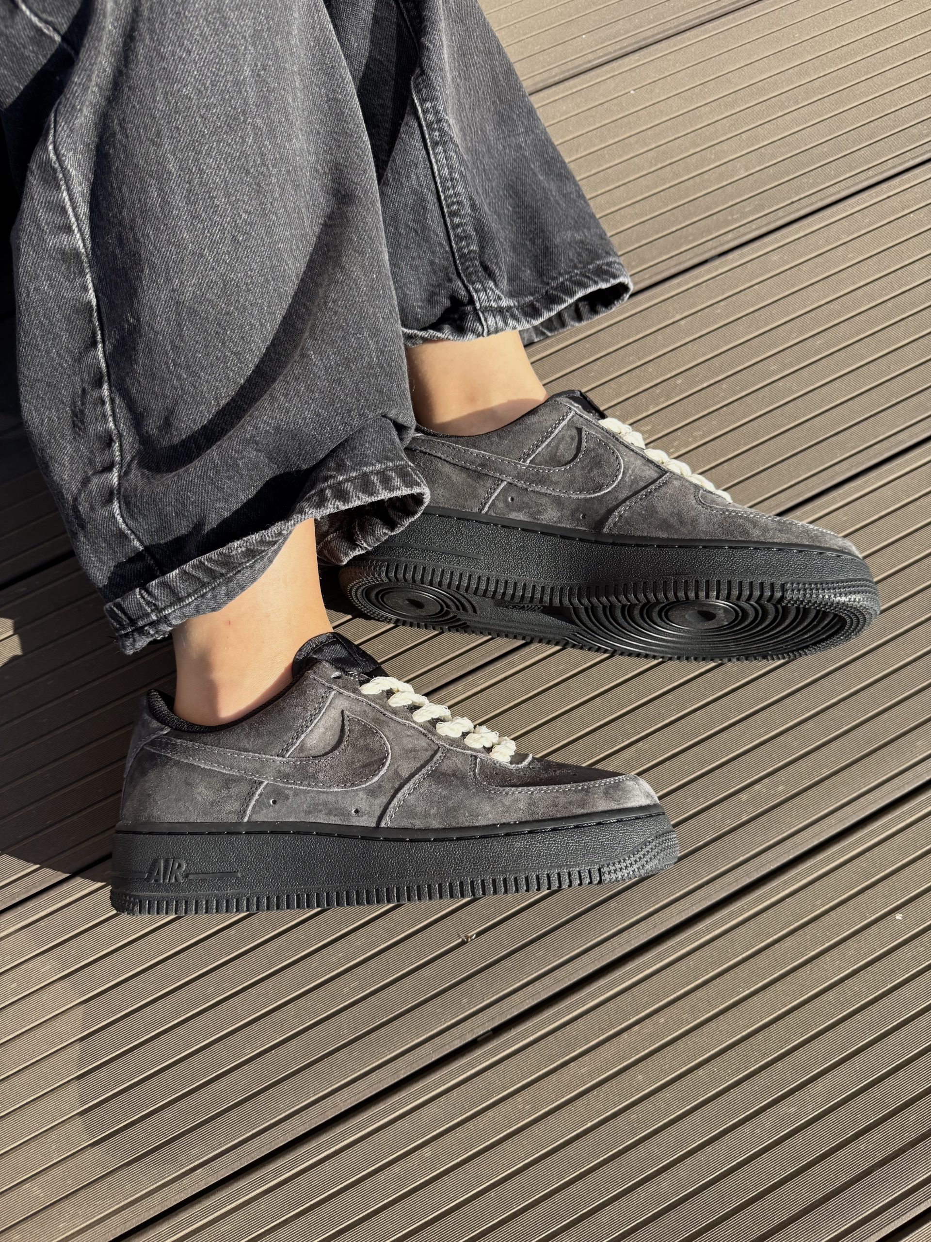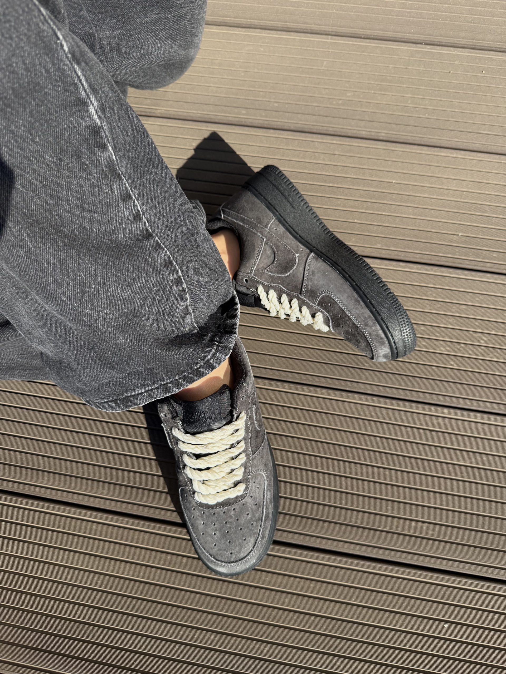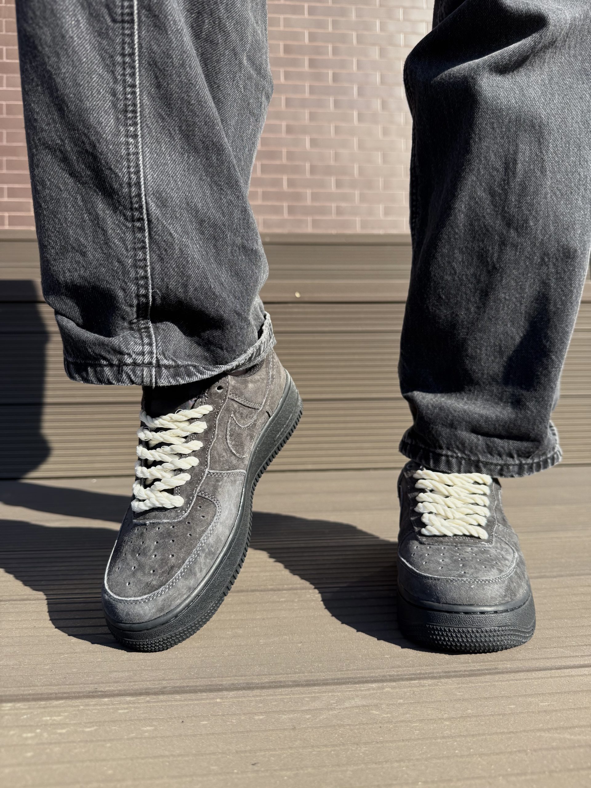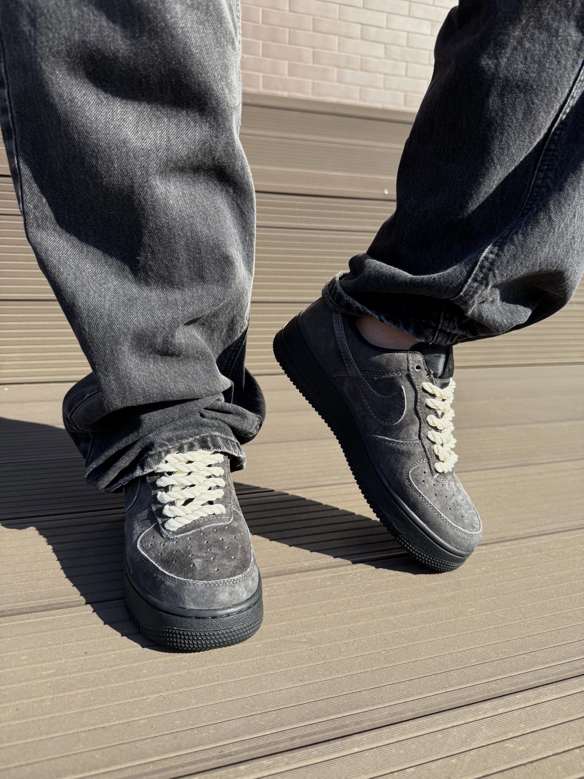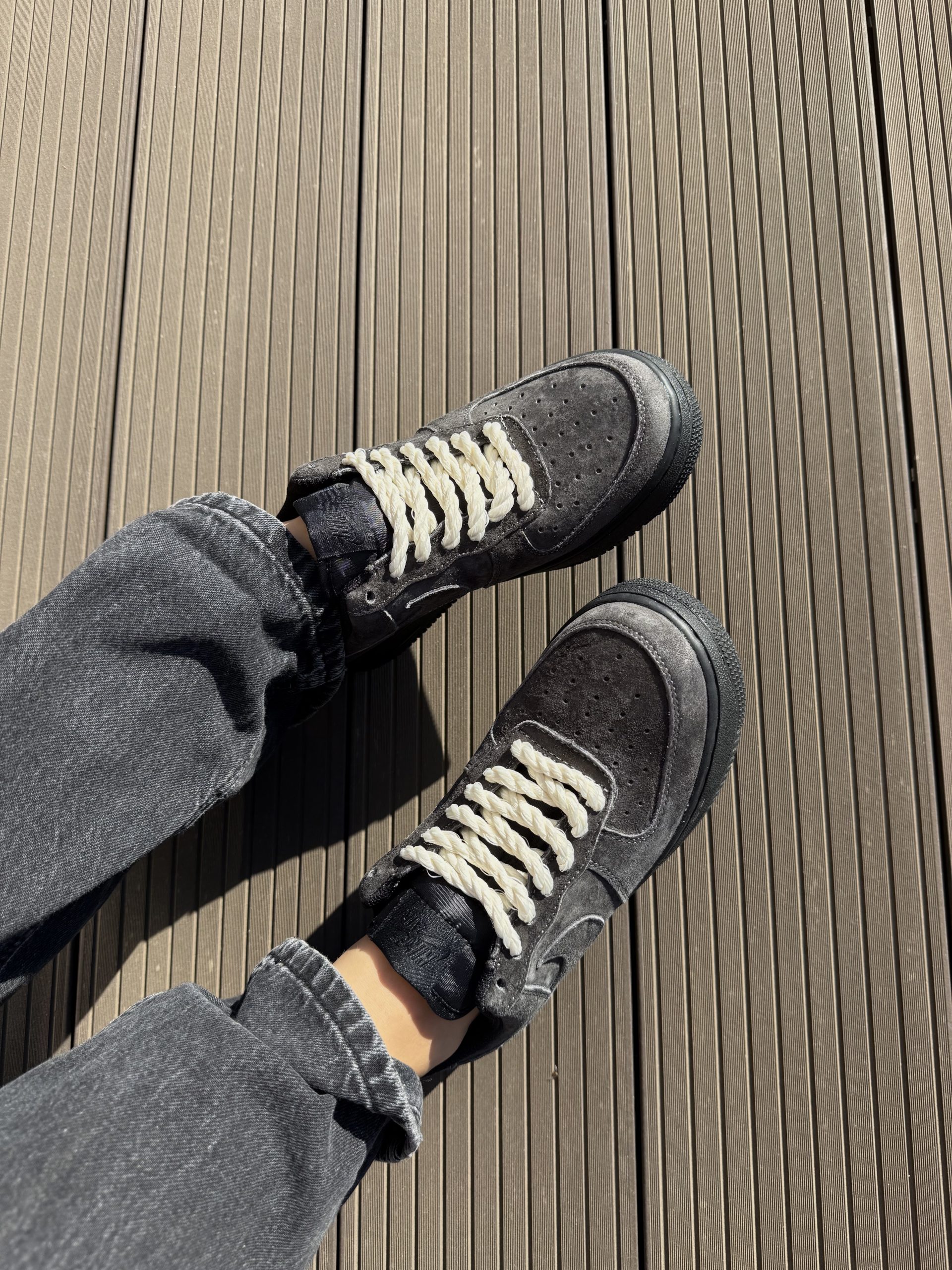 Nike Air Force 1 Low Grey Black — класична модель у сірому виконанні із чорною підошвою, що вирізняється впізнаваним дизайном, універсальністю та комфортом для щоденного носіння.