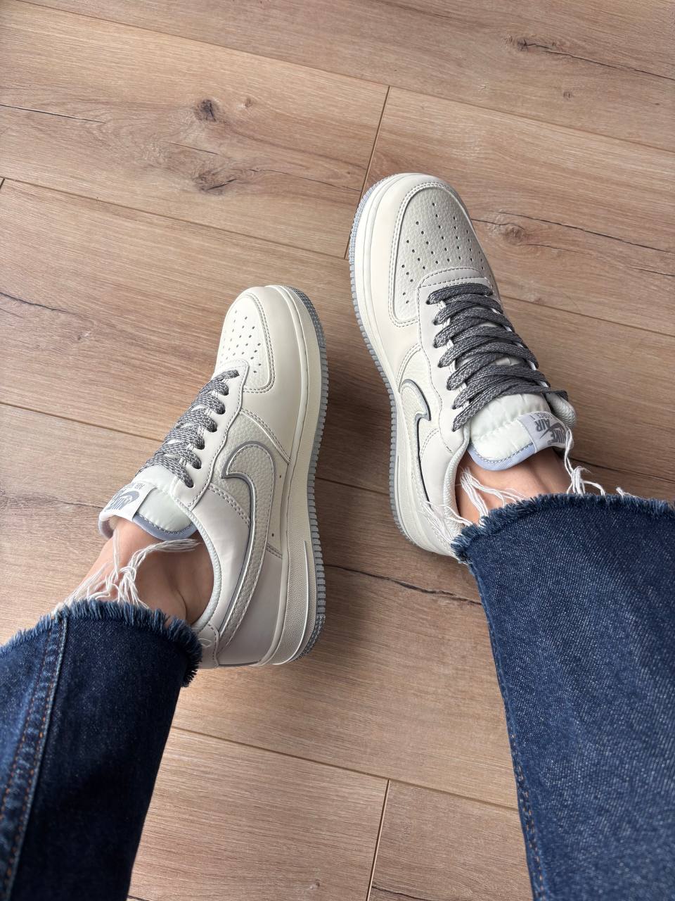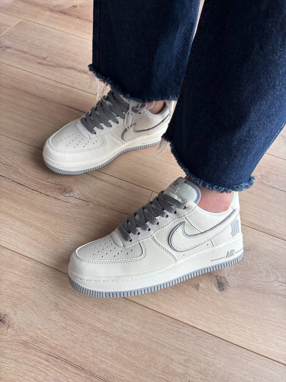 Nike Air Force 1 Low x Undefeated White Grey — стильна колабораційна модель у поєднанні білого та сірого відтінків із лаконічним силуетом і комфортною посадкою для впевненого щоденного образу.