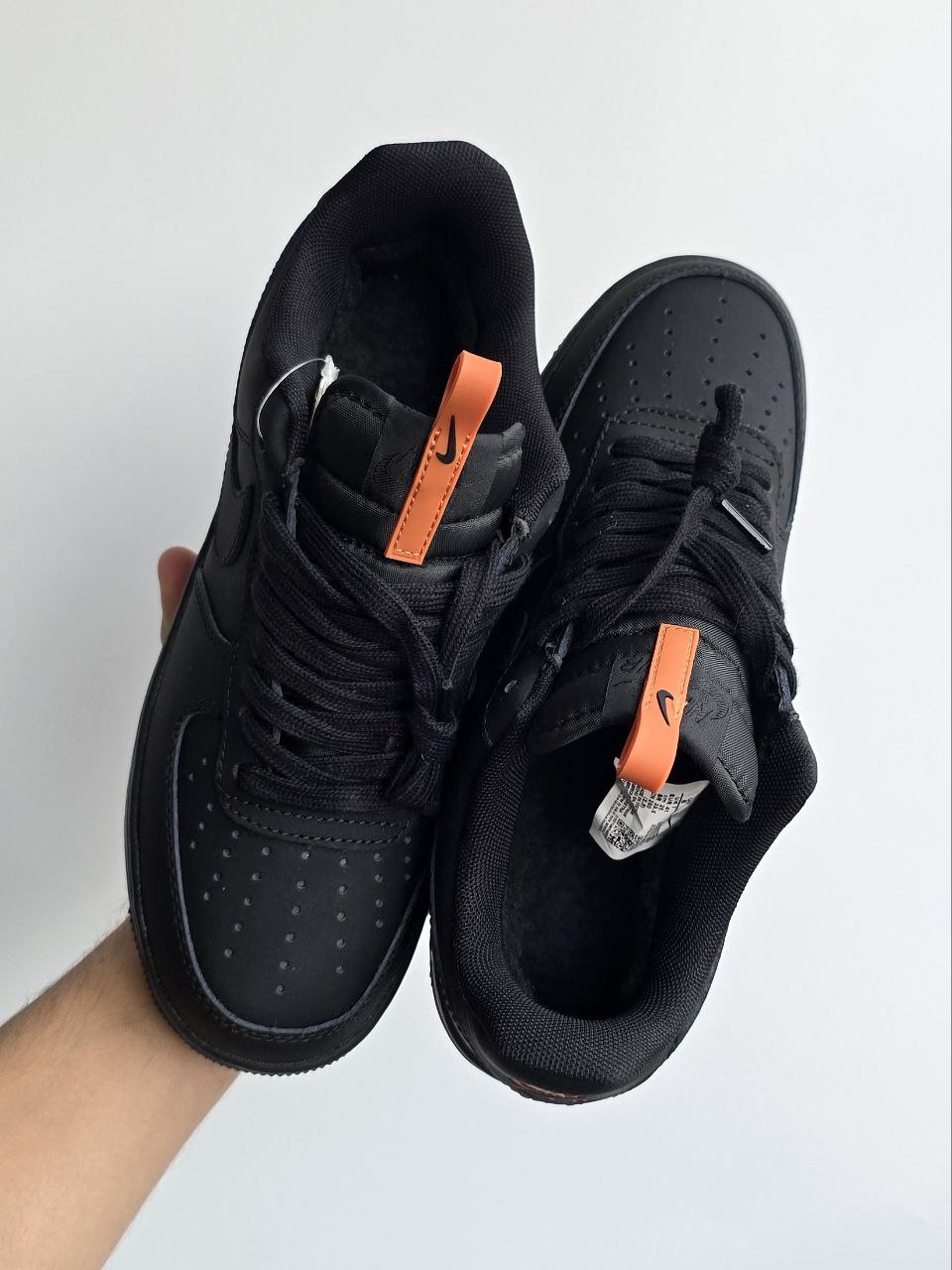 Nike Air Force Fur Black Orange — стильна та утеплена модель у класичному чорному кольорі з яскравими помаранчевими акцентами. Внутрішнє хутро забезпечує тепло та комфорт у холодну пору року, а фірмовий силует Air Force додає образу впевненості та характеру.