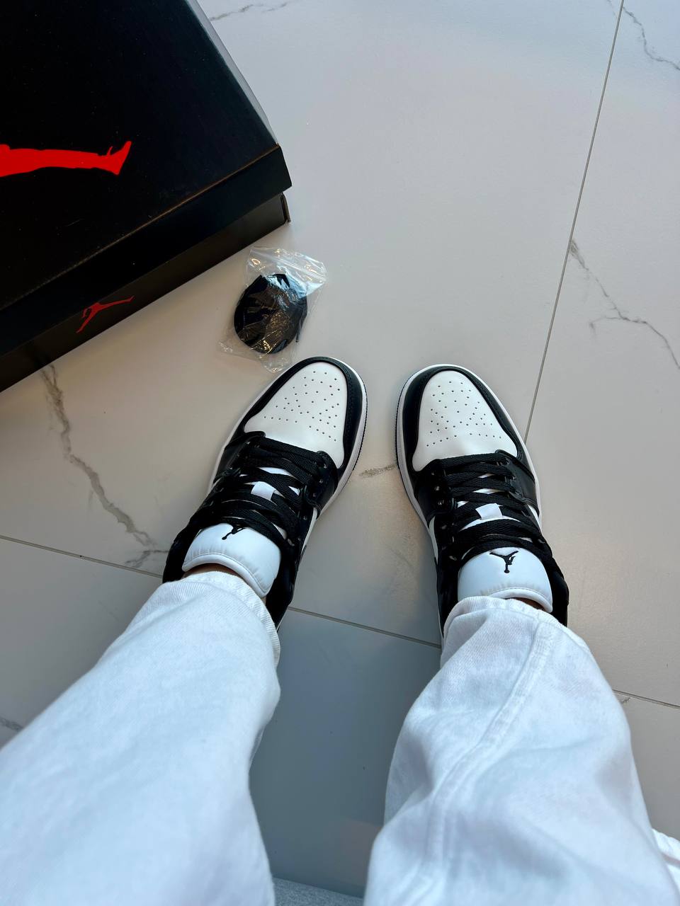Jordan 1 Low Black White — лаконічна модель у класичному поєднанні чорного та білого кольорів із впізнаваним силуетом і універсальним стилем.