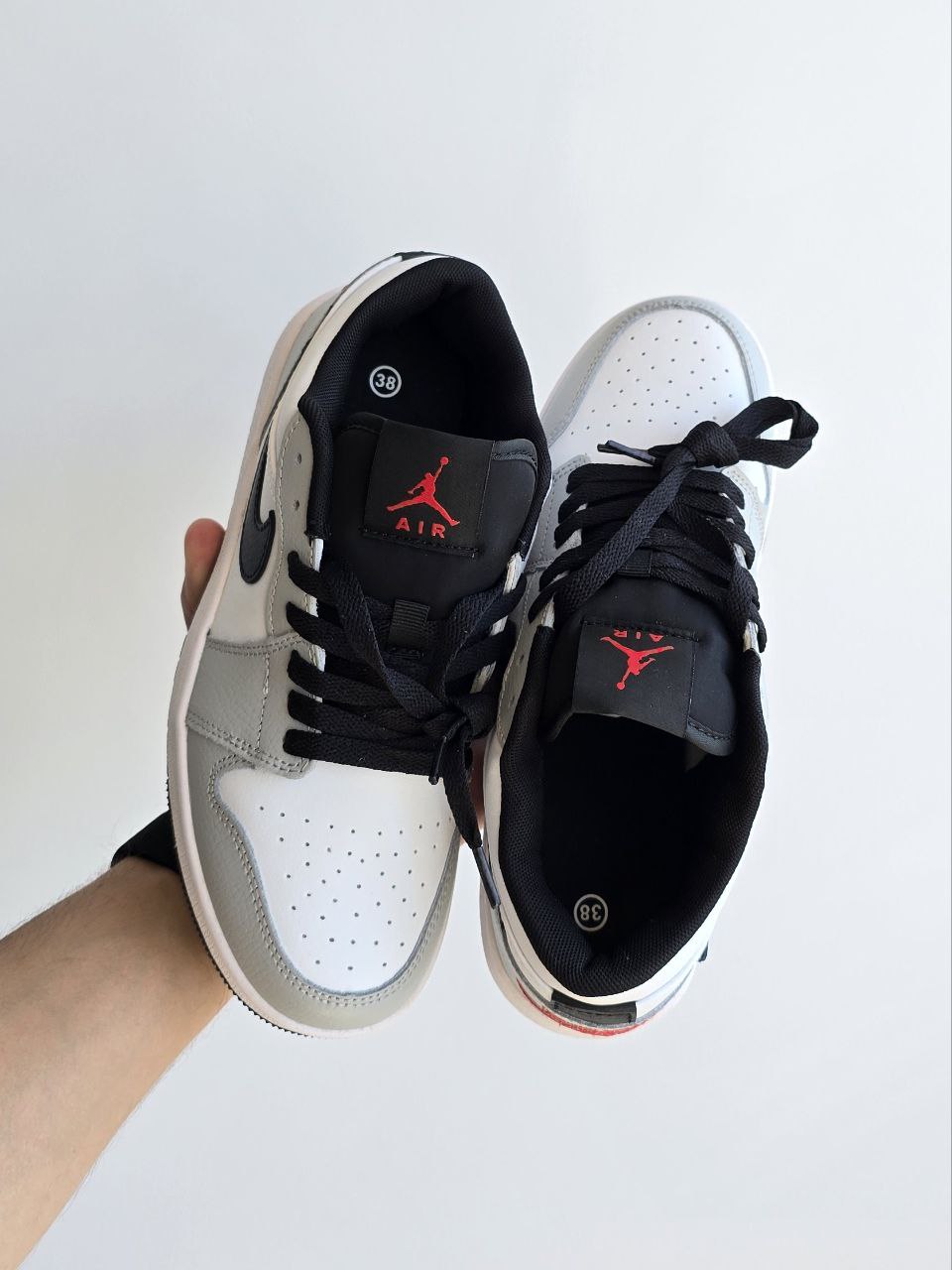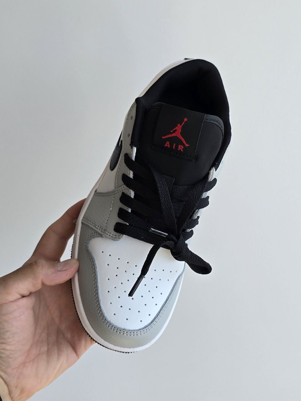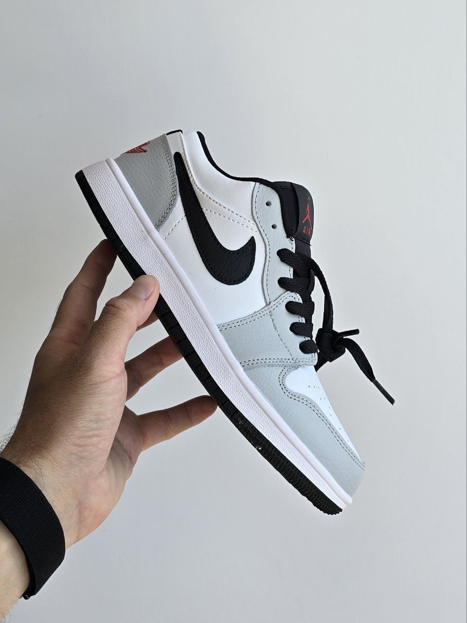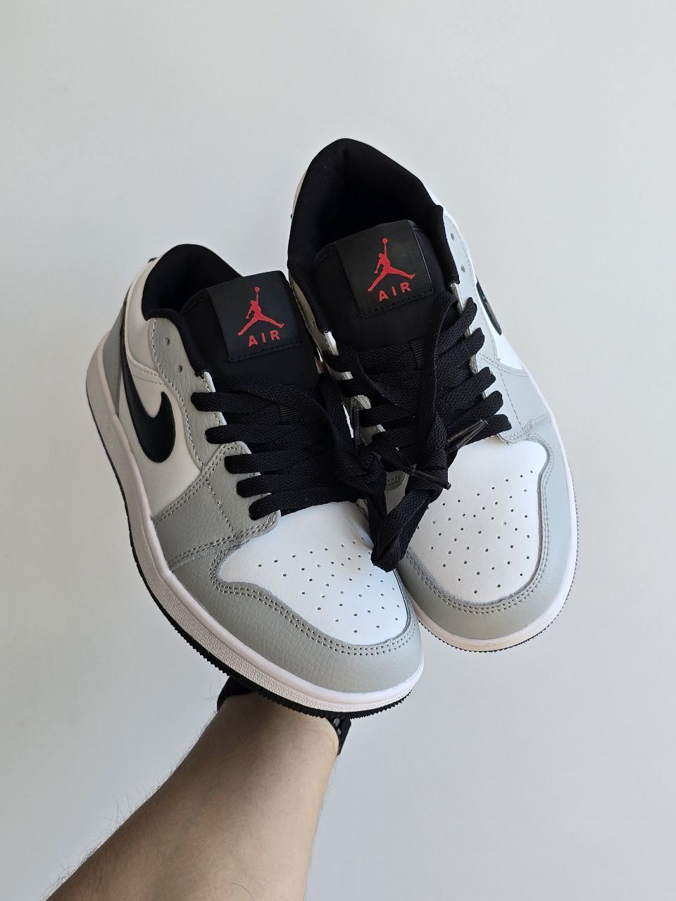 Nike Air Jordan 1 Low Grey White — класична модель виконана у сірому та білому кольорах із впізнаваним силуетом, що поєднує стриманий стиль і універсальність.