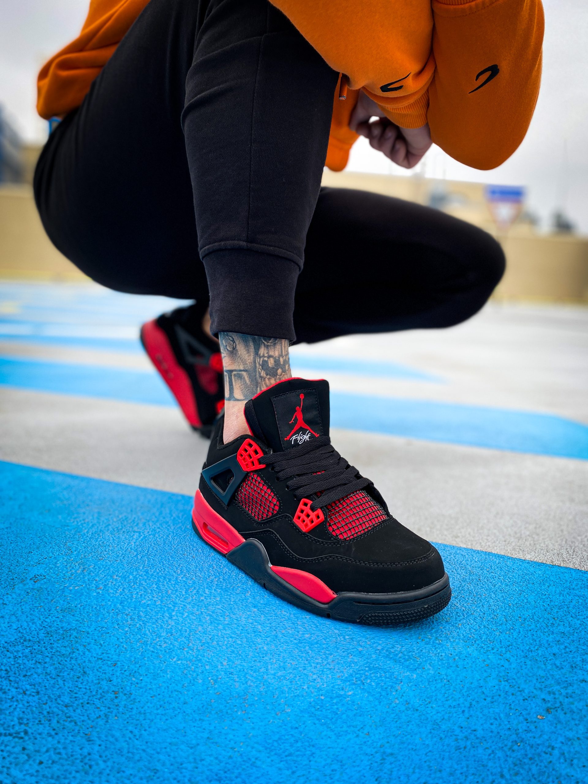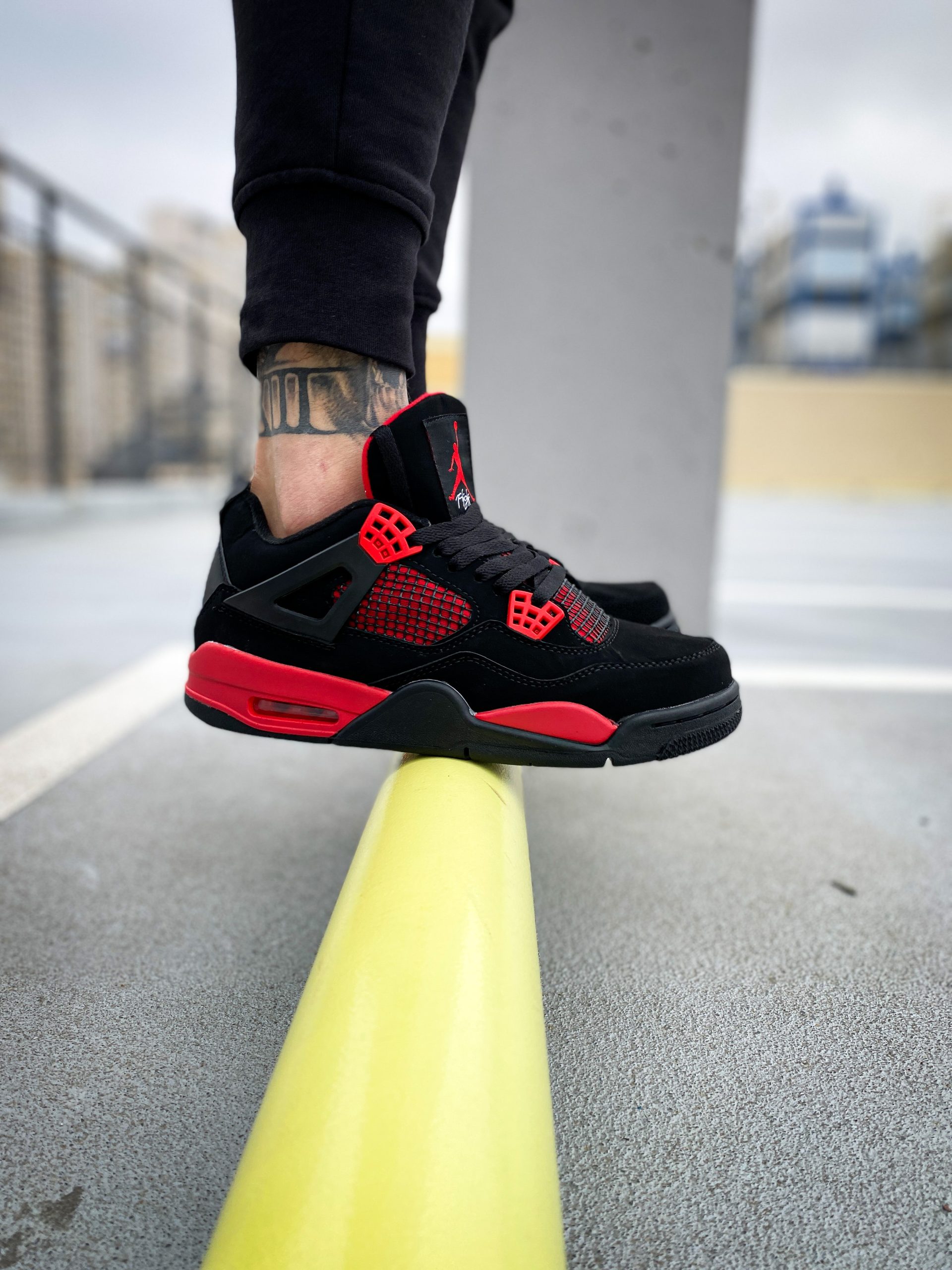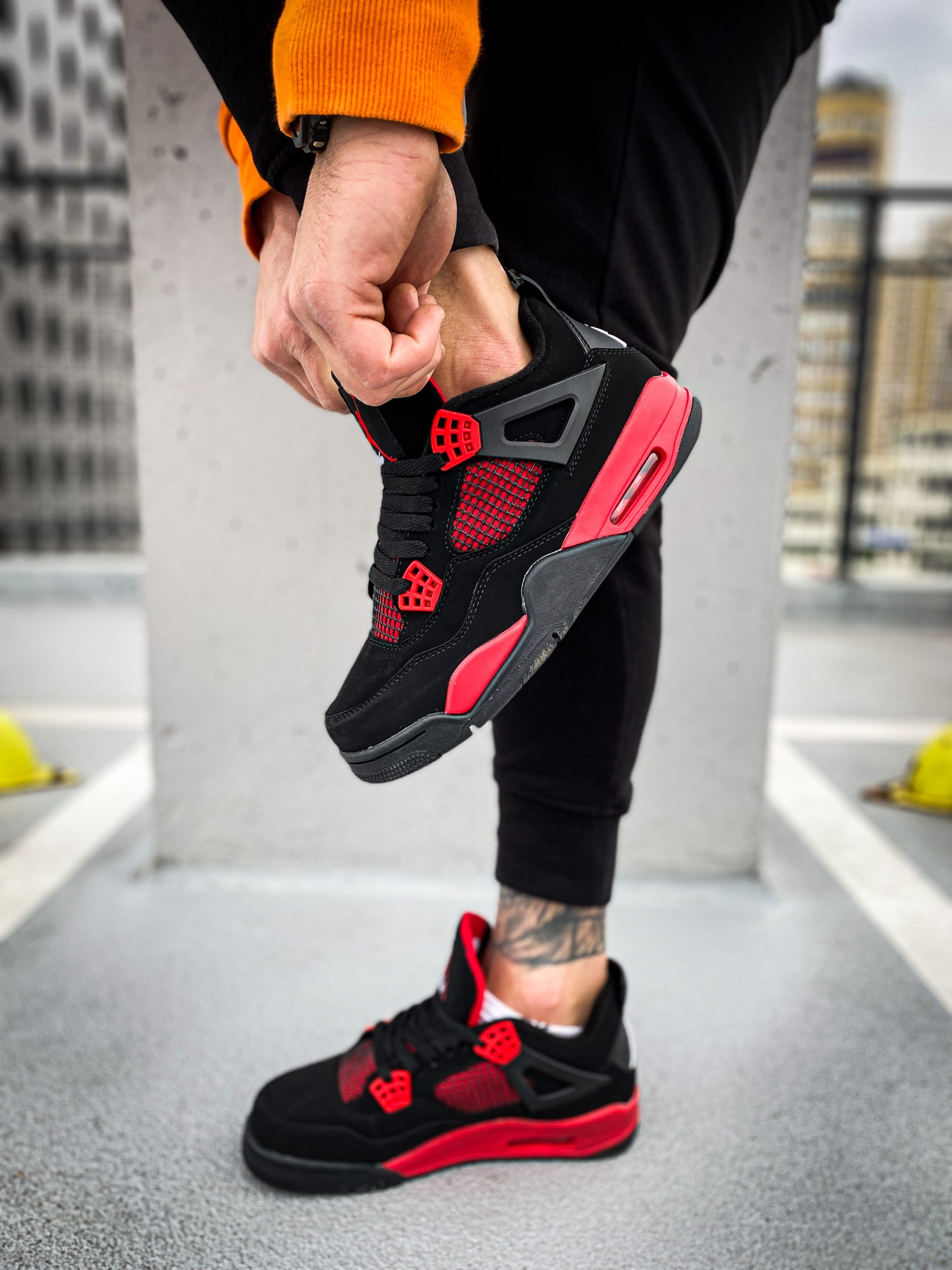 Nike Air Jordan 4 Crimson “Red Thunder” — ефектна модель з контрастним поєднанням чорного та червоного кольорів, що поєднує культовий дизайн і максимальний комфорт.