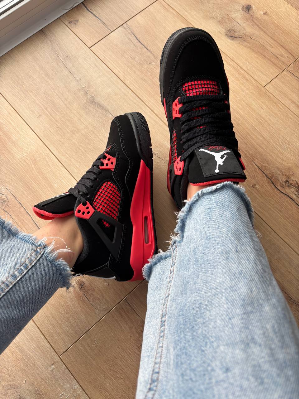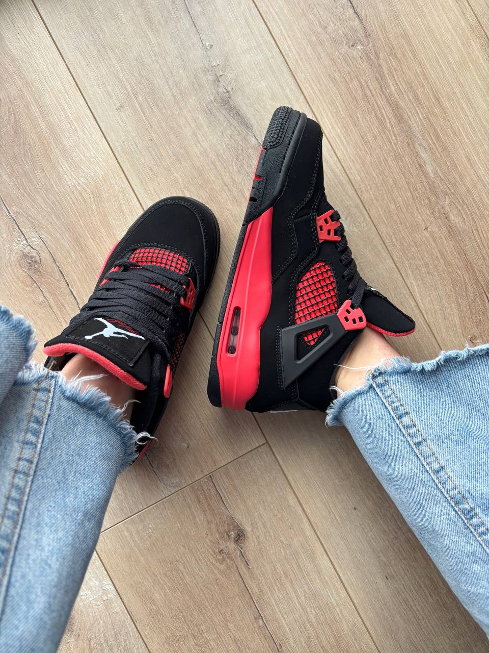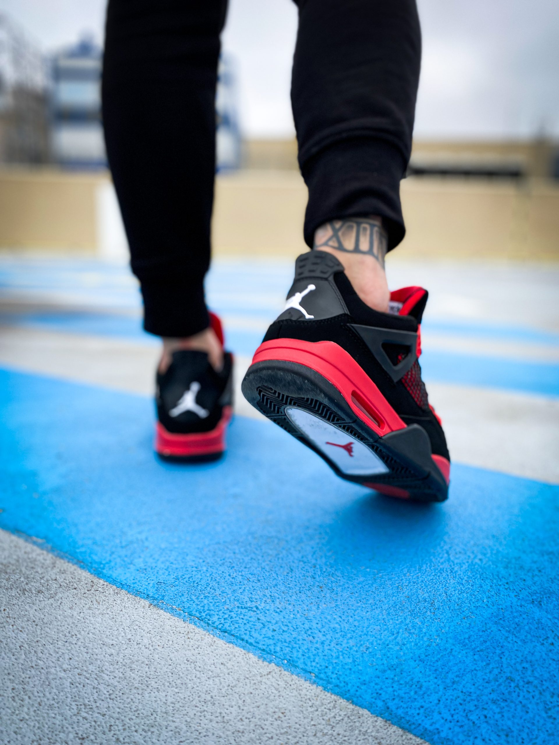 Nike Air Jordan 4 Crimson “Red Thunder” — ефектна модель з контрастним поєднанням чорного та червоного кольорів, що поєднує культовий дизайн і максимальний комфорт.
