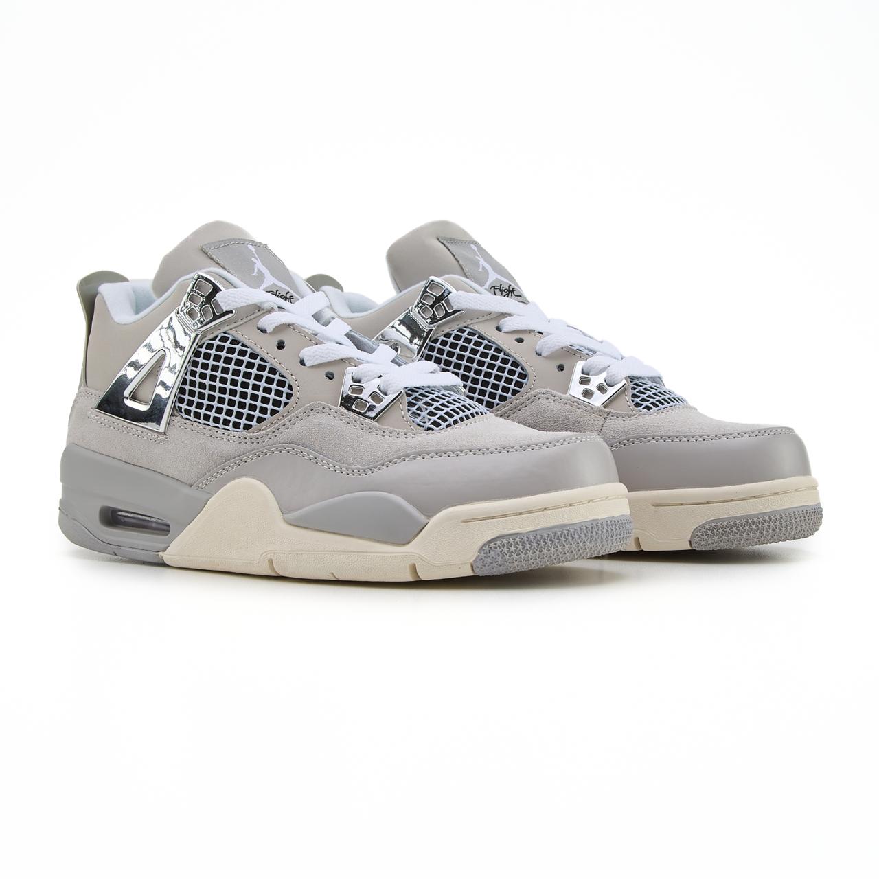 Nike Air Jordan 4 Grey Silver — стильні та зручні кросівки, які легко поєднуються з повсякденним одягом. Верх виготовлений із сірого нубуку, доповнений хромованими деталями, що додають взуттю виразного вигляду.