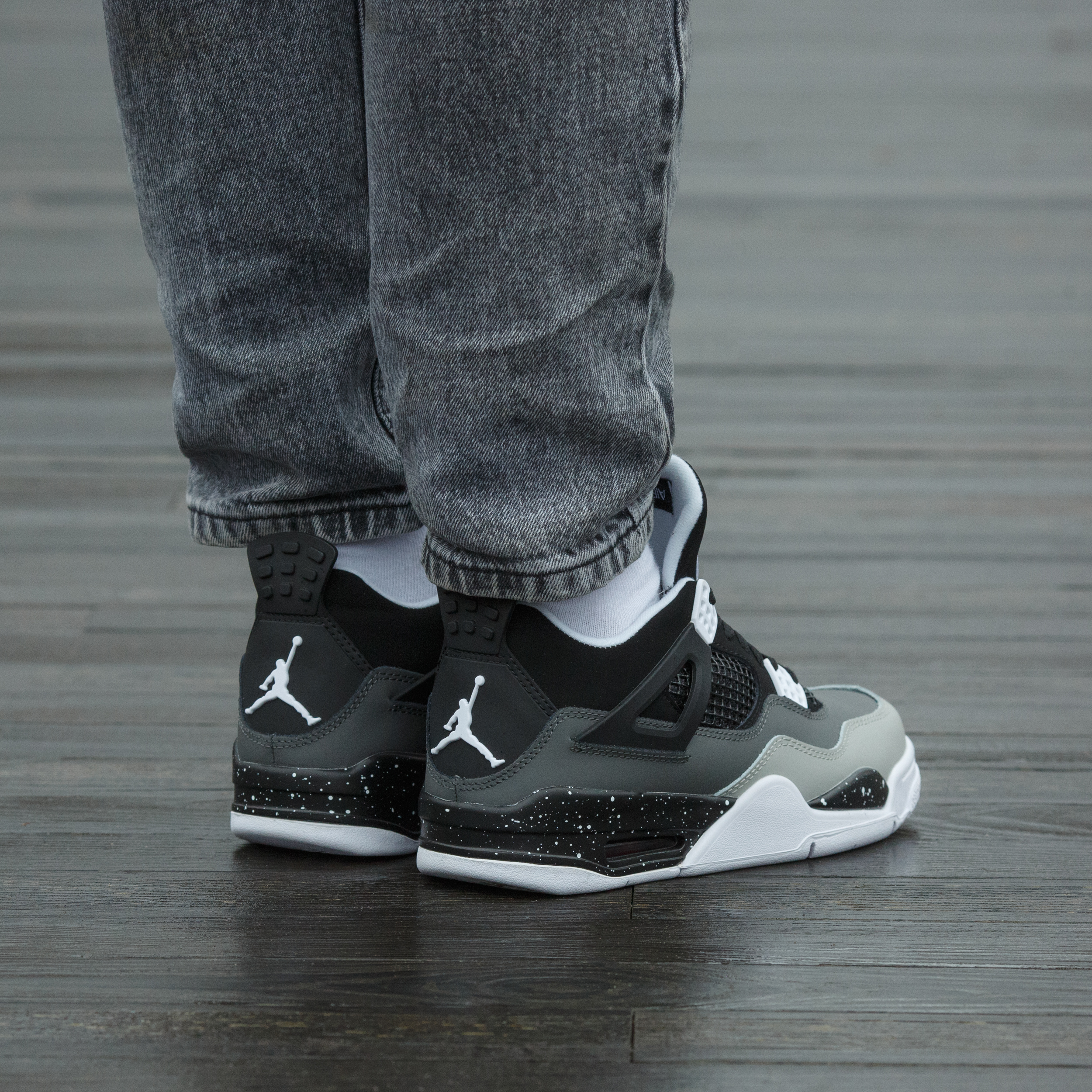 Nike Air Jordan 4 Retro SE Fear Black White — стильні та зручні кросівки в класичному поєднанні чорного, сірого та білого кольорів. Модель має впізнаваний фірмовий силует AJ4 та акуратні деталі, що додають характерного вигляду.