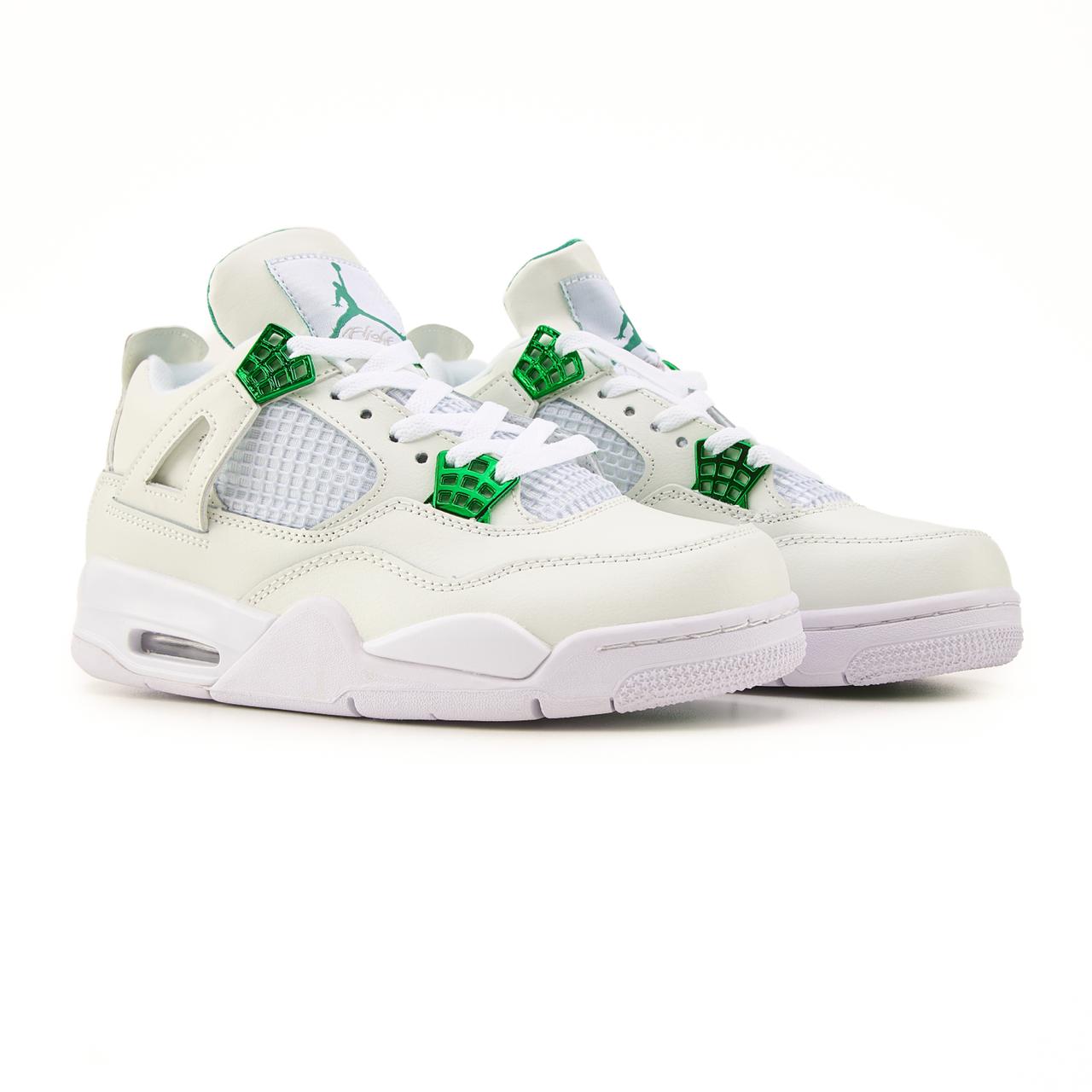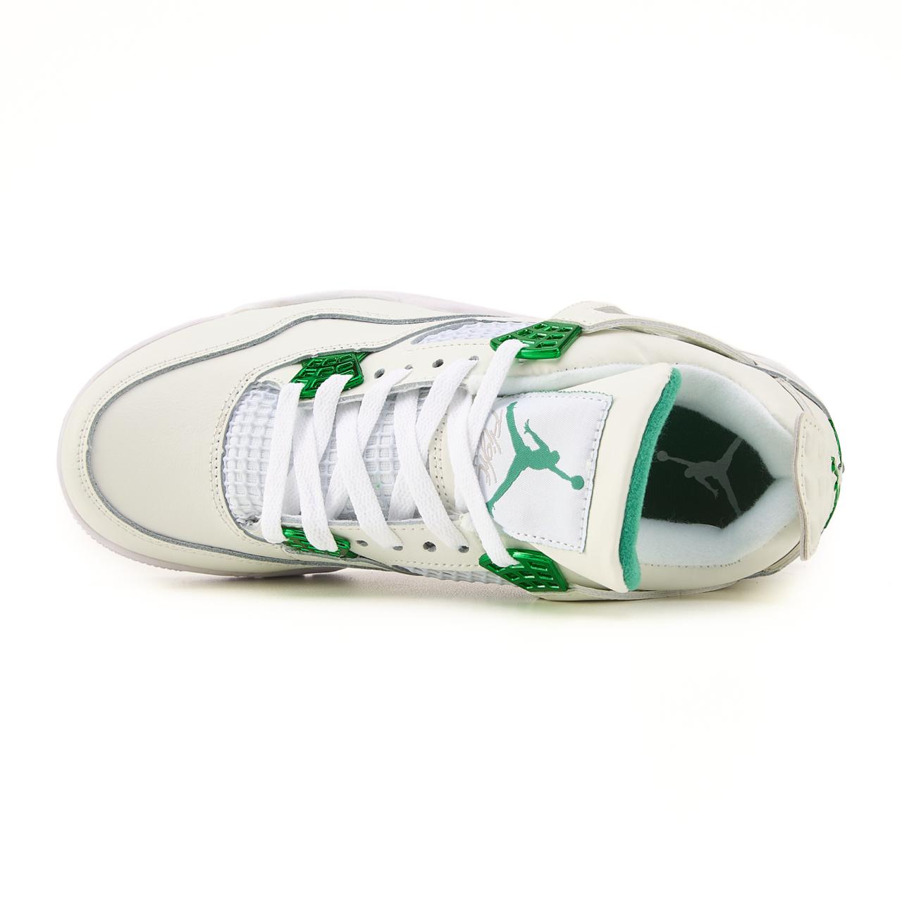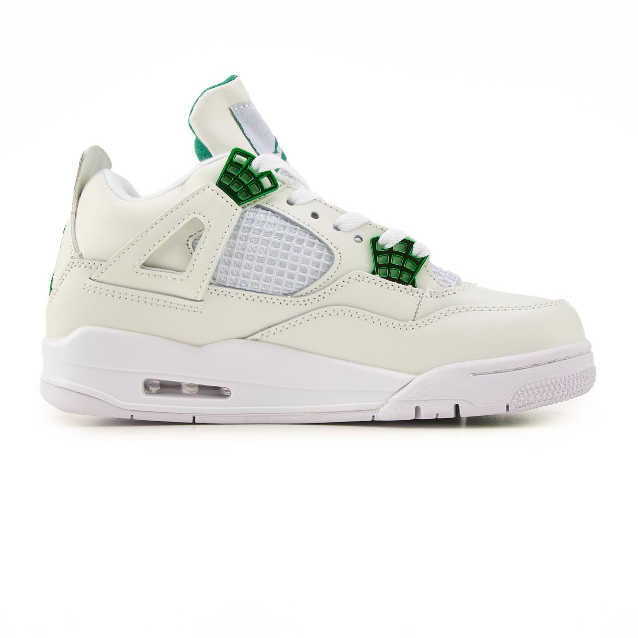 Nike Air Jordan 4 Retro White Green — виразна модель у білому кольорі з зеленими акцентами, що підкреслює культовий силует і поєднує класичний стиль із сучасною свіжістю.