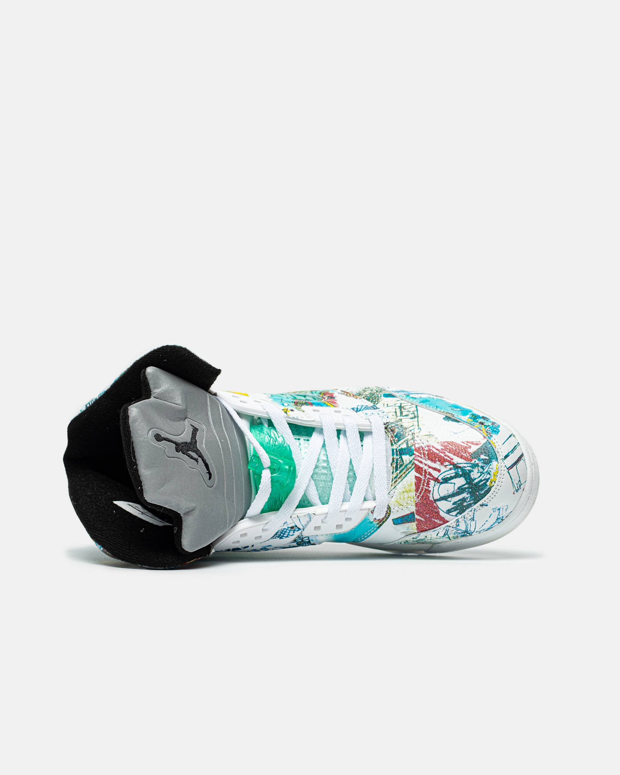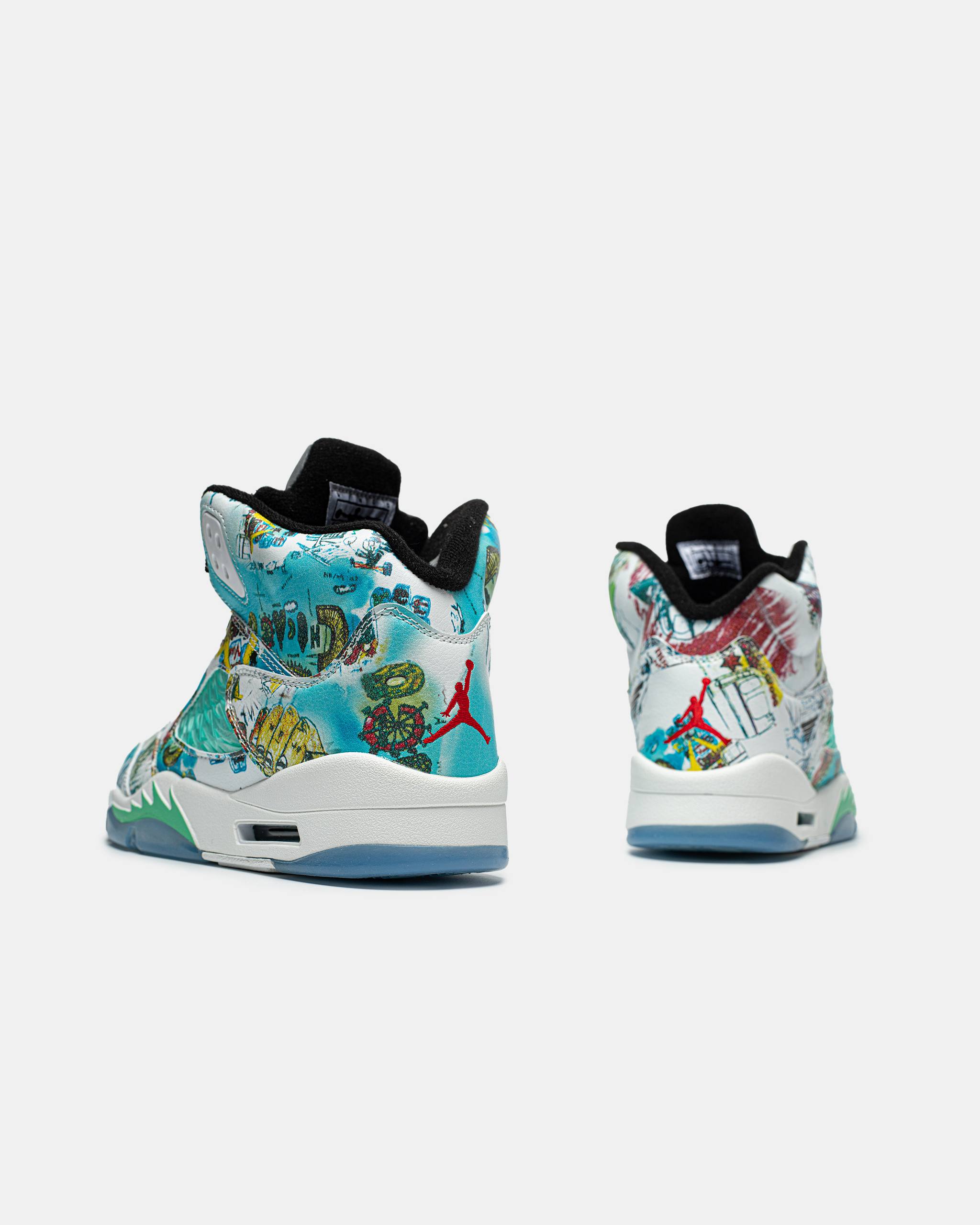 Nike Air Jordan 5 Retro Art ‘Wings’ – яскраві та стильні кросівки з унікальним дизайном, натхненним мистецтвом і культурою. Модель має кольорові малюнки по всьому верху, які створюють ефект розпису.
