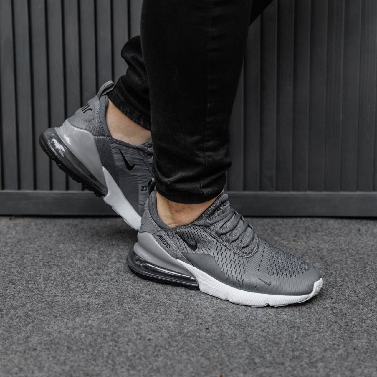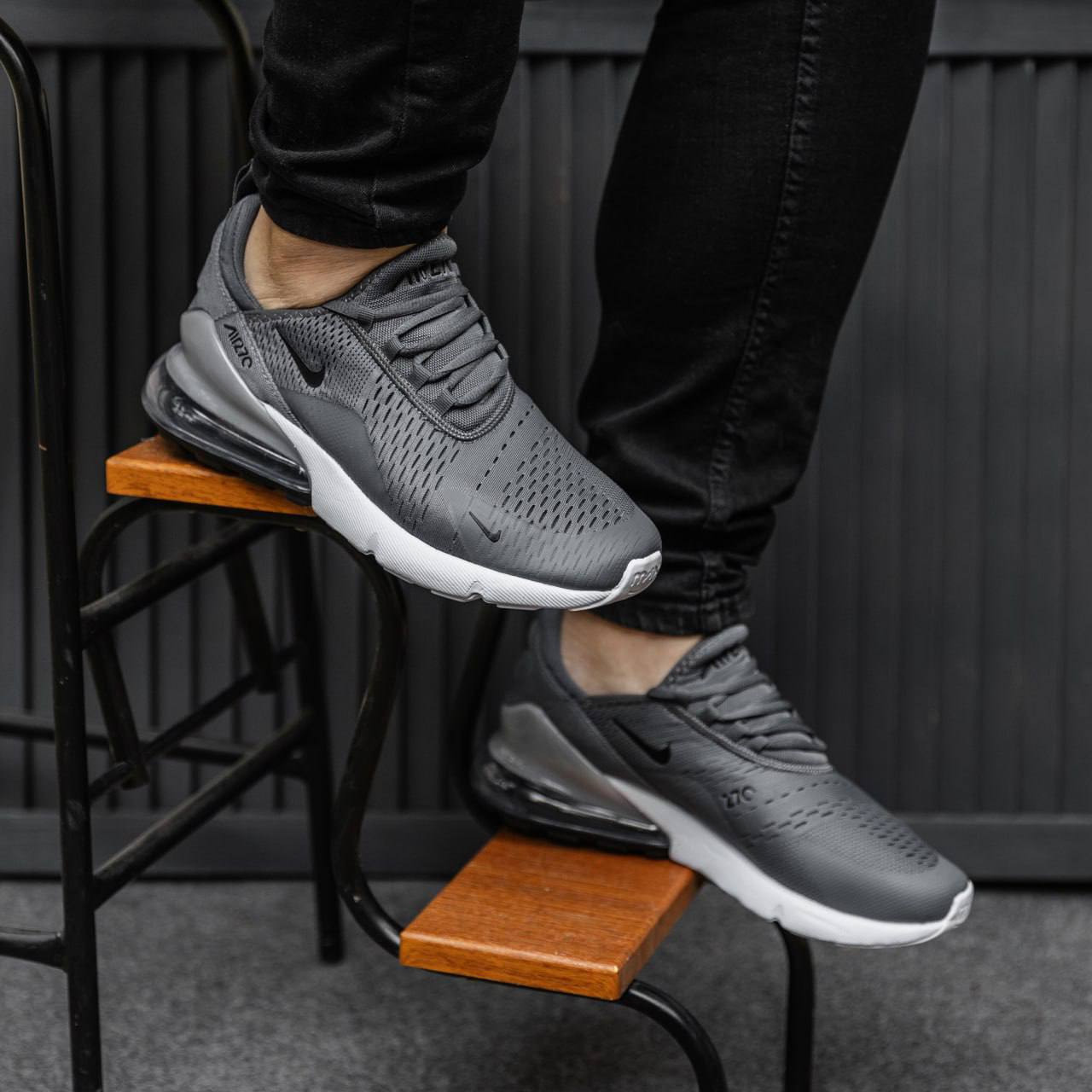 Nike Air Max 270 Grey — стильна модель у сірому відтінку з впізнаваним об’ємним амортизуючим блоком, що поєднує комфорт і сучасний динамічний дизайн.