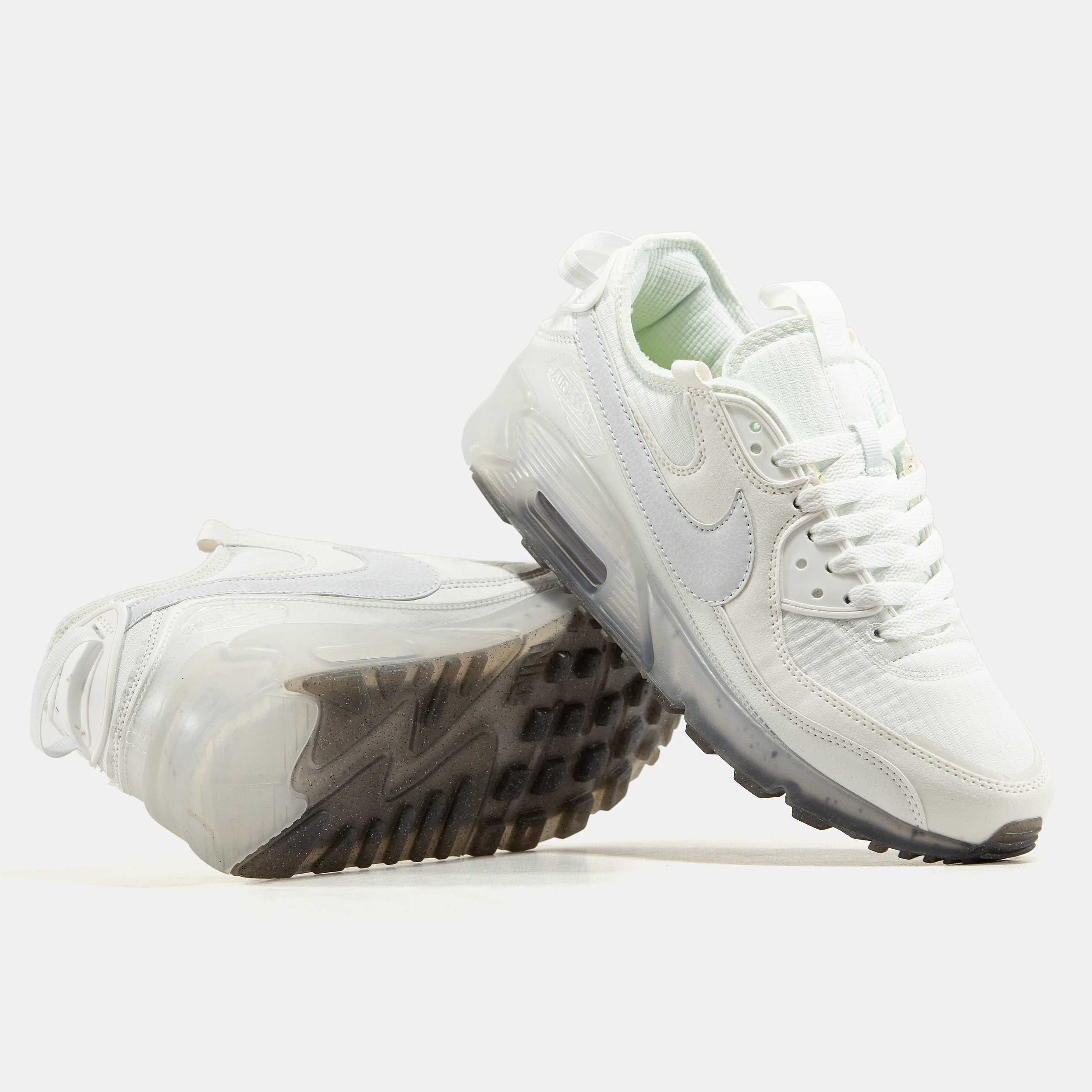 Nike Air Max 90 Terrascape White — це сучасна варіація класичних Air Max 90 у світлій білій кольоровій гамі з екологічними елементами дизайну. Модель вирізняється помітною амортизацією Air, оновленими матеріалами та універсальністю, що робить її стильним і комфортним вибором для повсякденного носіння.