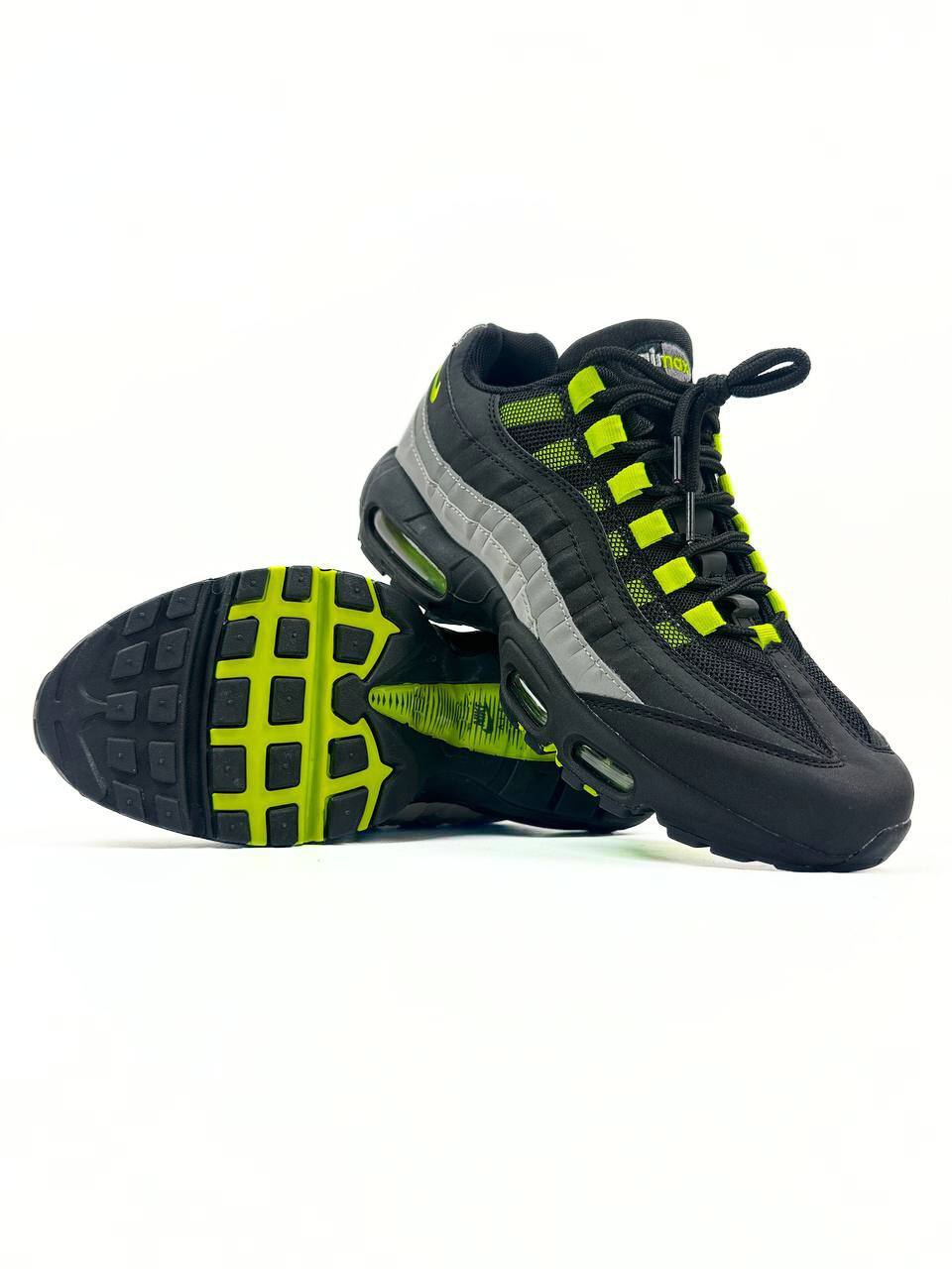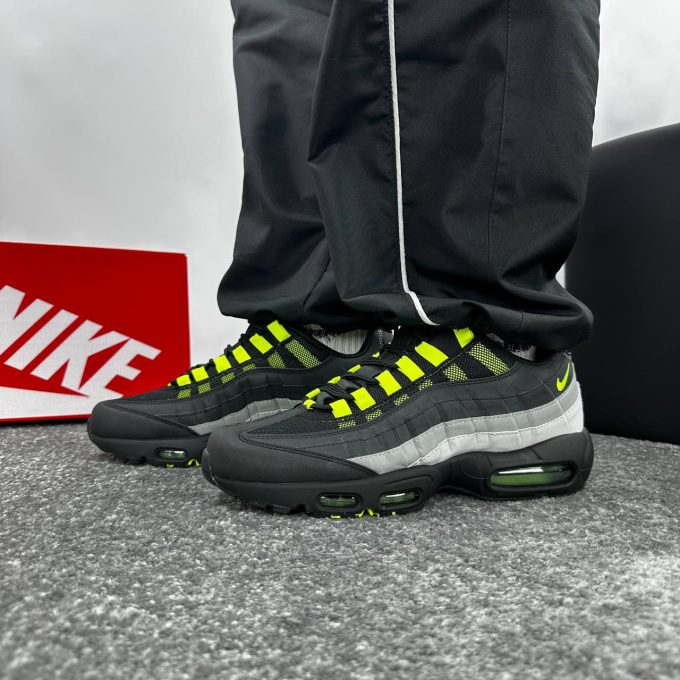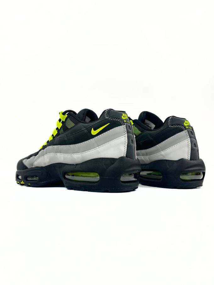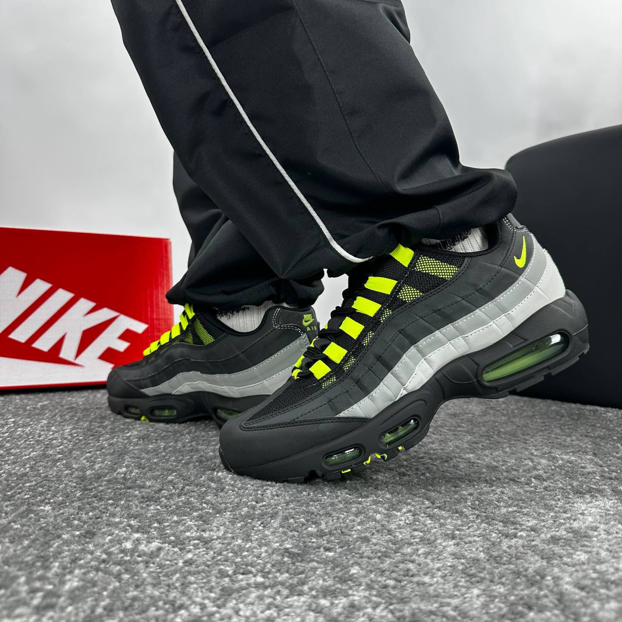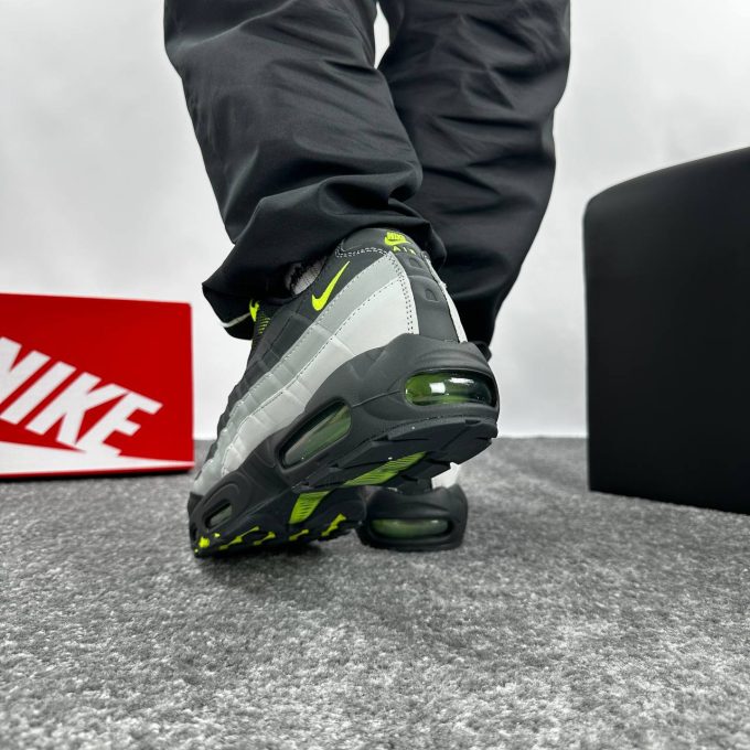 Nike Air Max 95 Black Grey Neon — культові кросівки з фірмовим градієнтним дизайном у чорних і сірих тонах з неоновими акцентами, що поєднують ретро-естетику, комфорт і яскравий стиль.