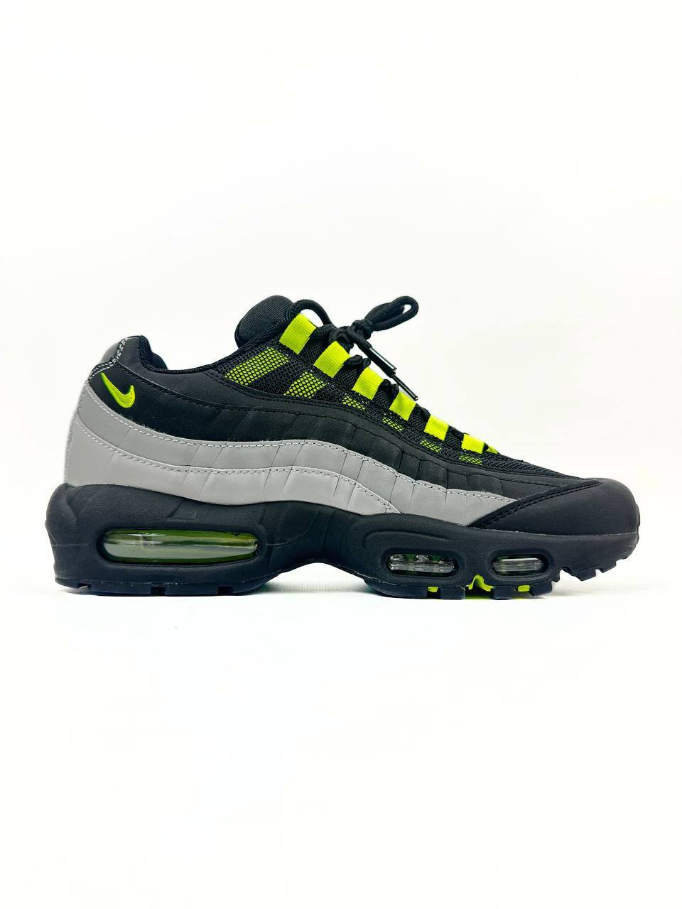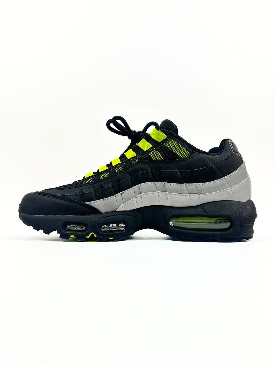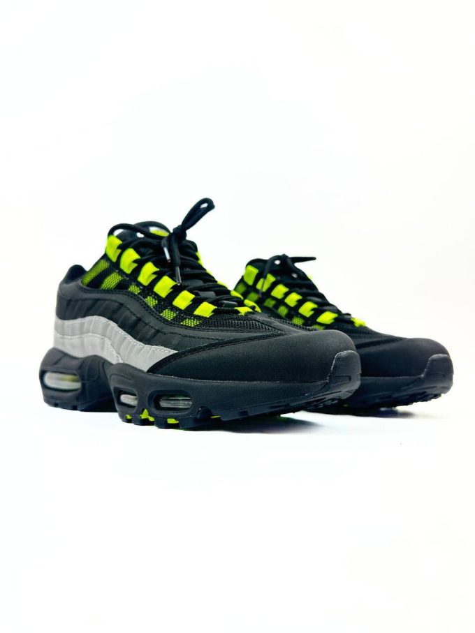 Nike Air Max 95 Black Grey Neon — культові кросівки з фірмовим градієнтним дизайном у чорних і сірих тонах з неоновими акцентами, що поєднують ретро-естетику, комфорт і яскравий стиль.
