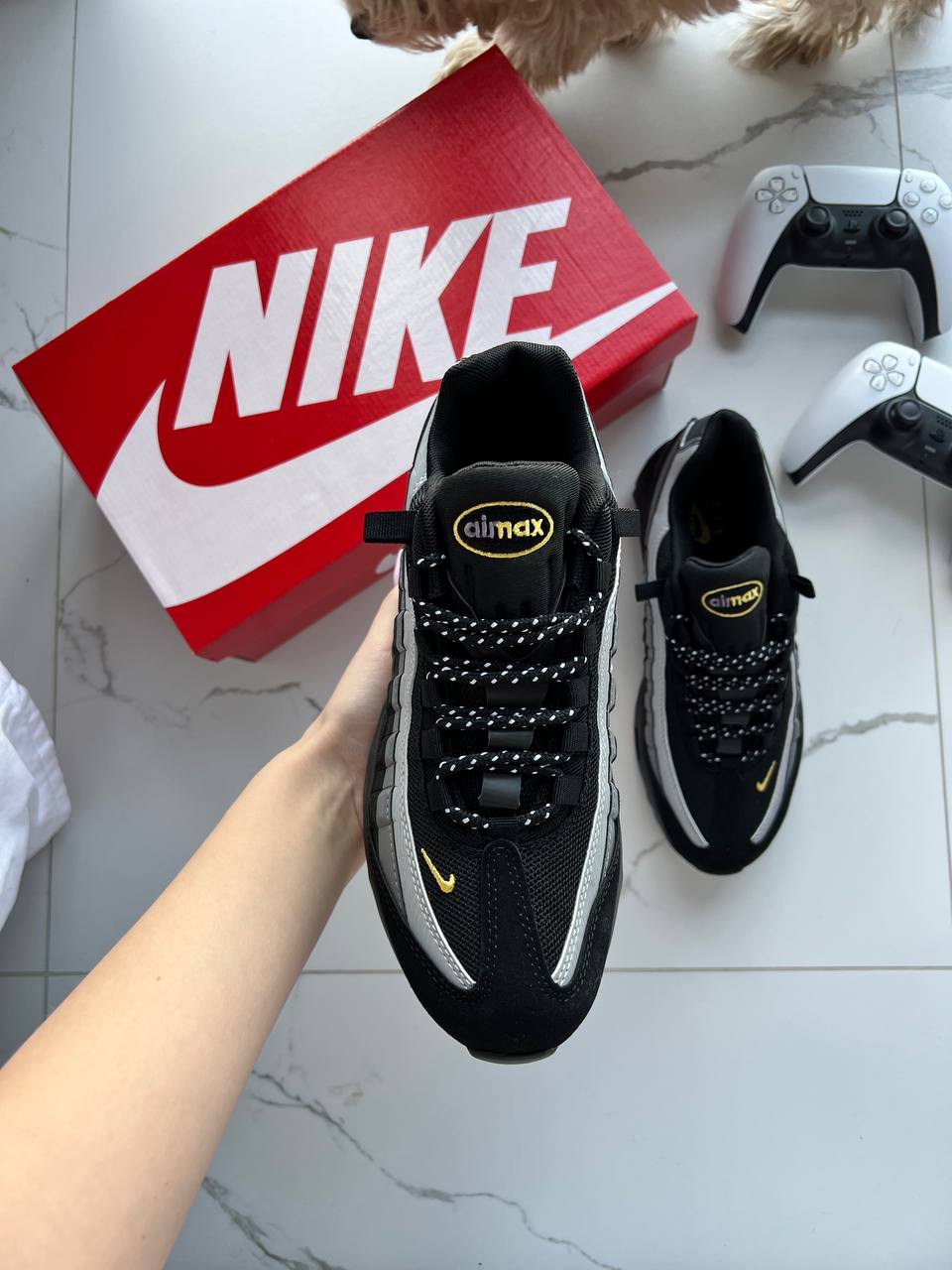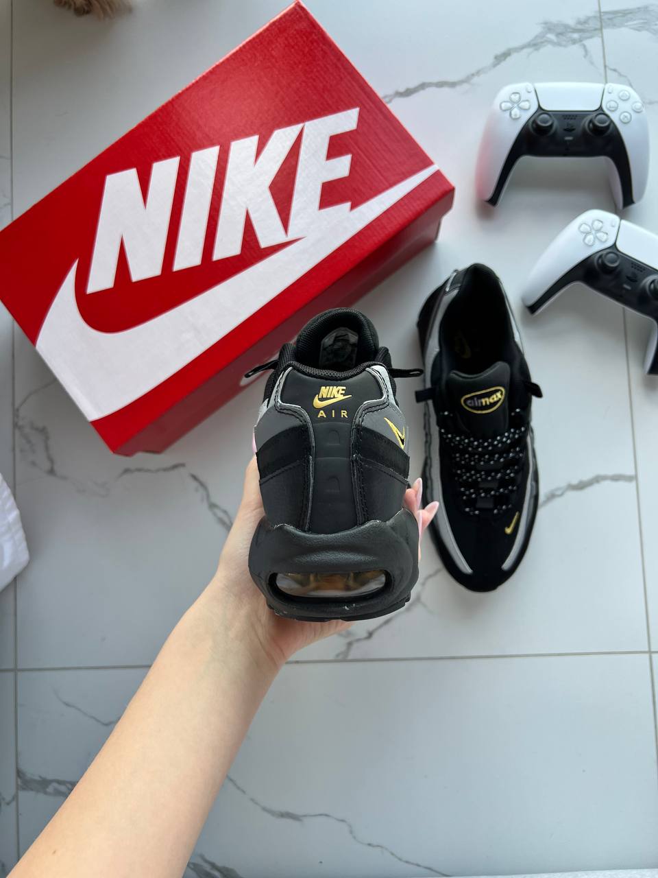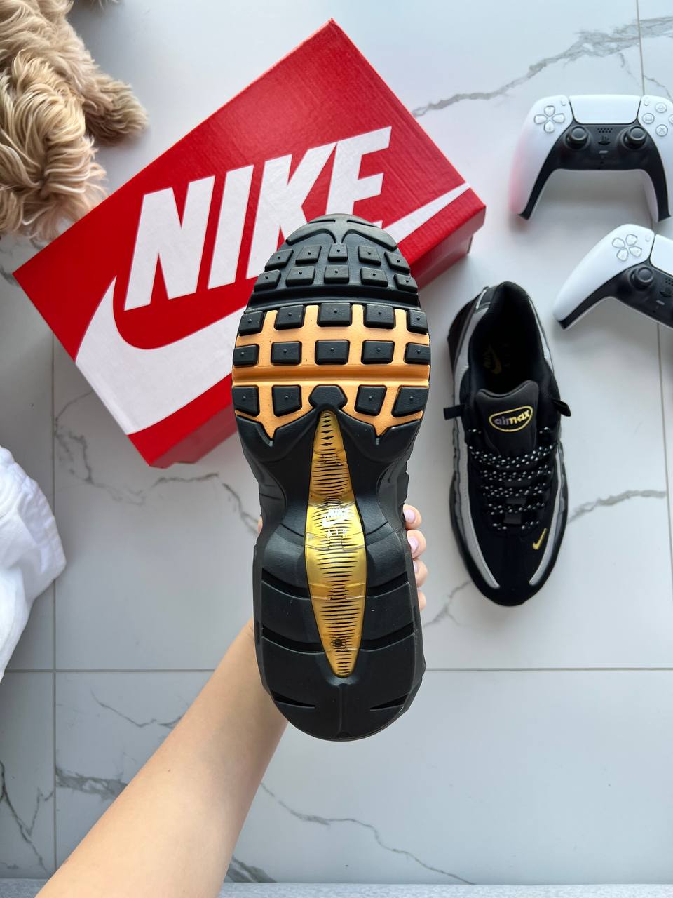 Nike Air Max 95 Black Grey Yellow — виразні кросівки з багатошаровим дизайном у поєднанні чорного, сірого та жовтого кольорів. Модель оснащена фірмовою амортизацією Air Max, що забезпечує комфорт і підтримку протягом усього дня.