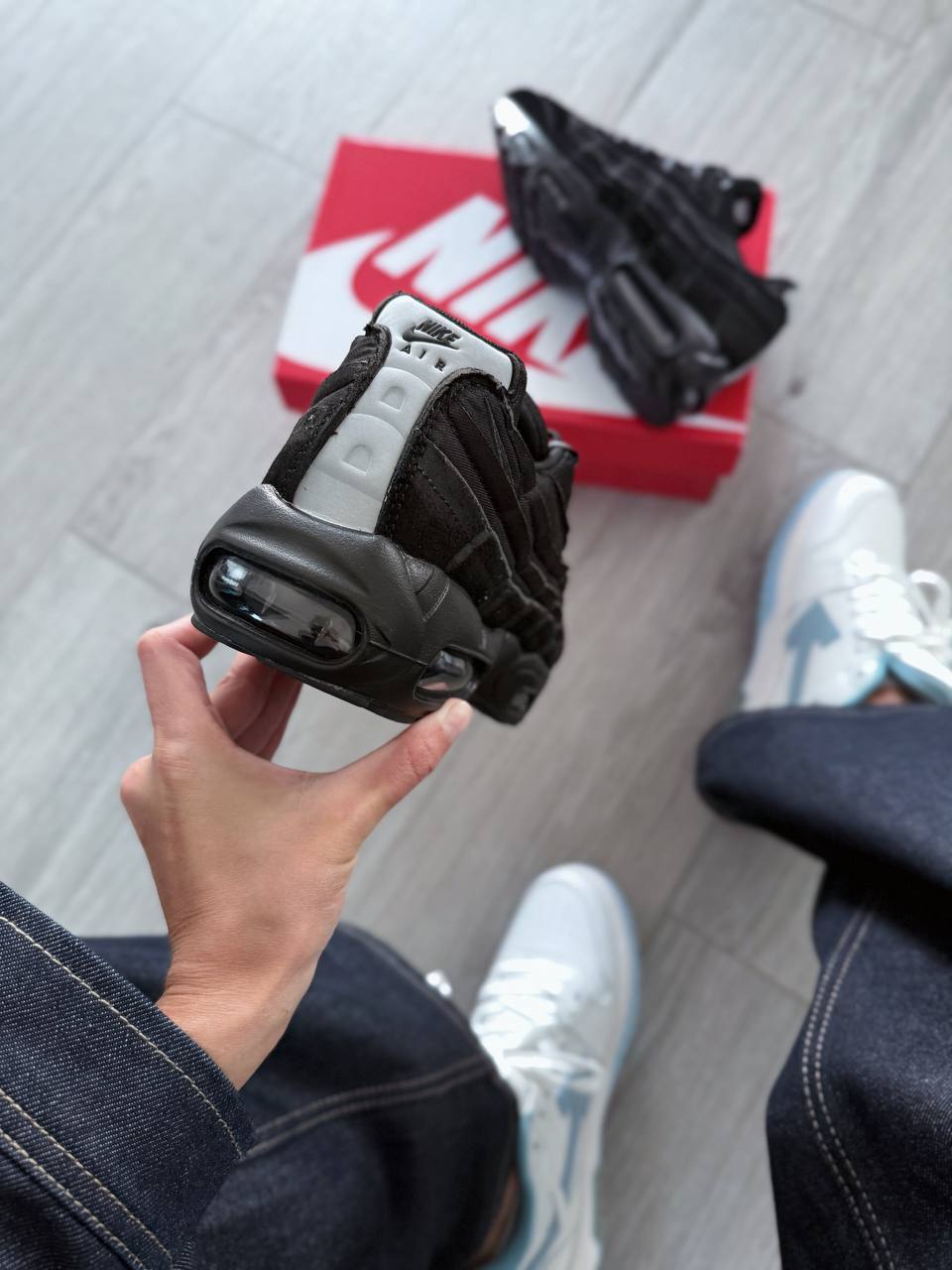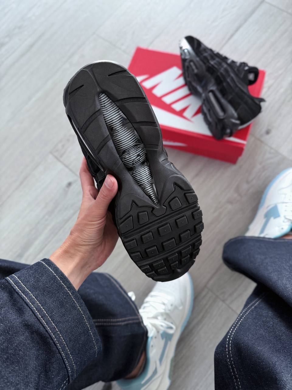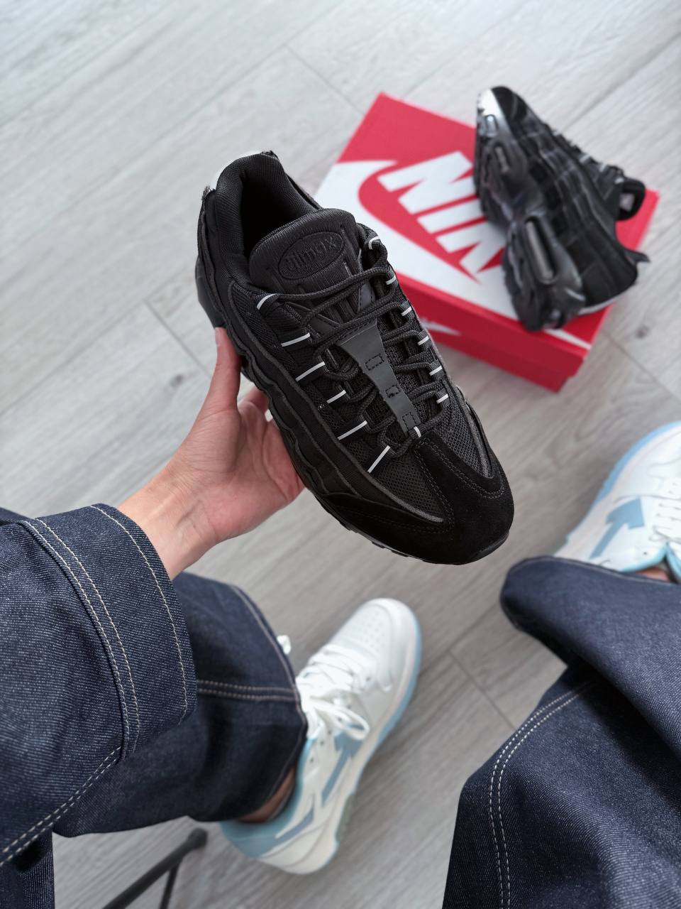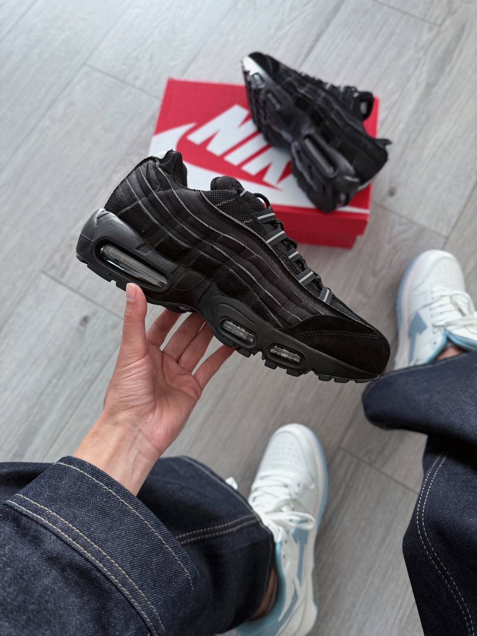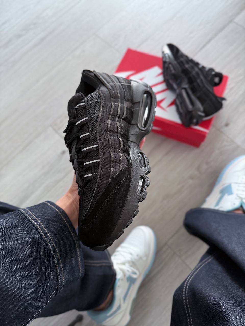 Nike Air Max 95 Comme des Garçons Black — культова модель, виконана в глибокому чорному кольорі з характерними деталями, що підкреслюють поєднання авангардного стилю і спортивної класики.