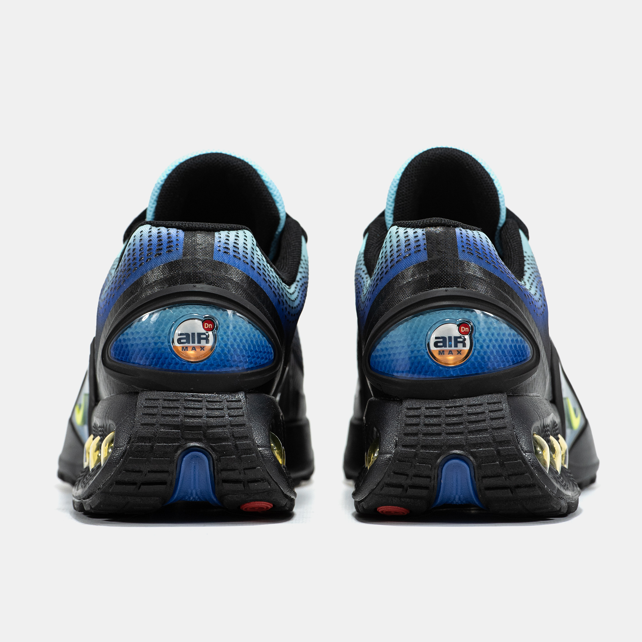 Nike Air Max DN Black Blue Yellow — яскрава чорна модель із синіми та жовтими акцентами, динамічним силуетом і сучасним дизайном, що підкреслює спортивний стиль.