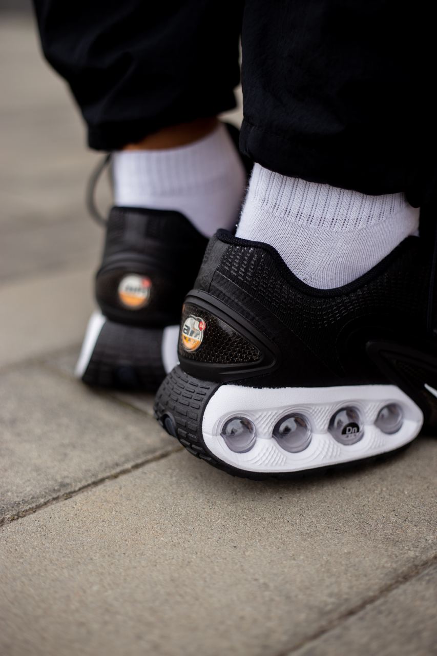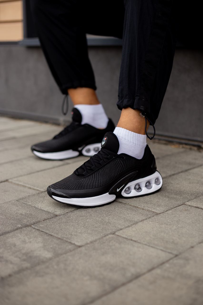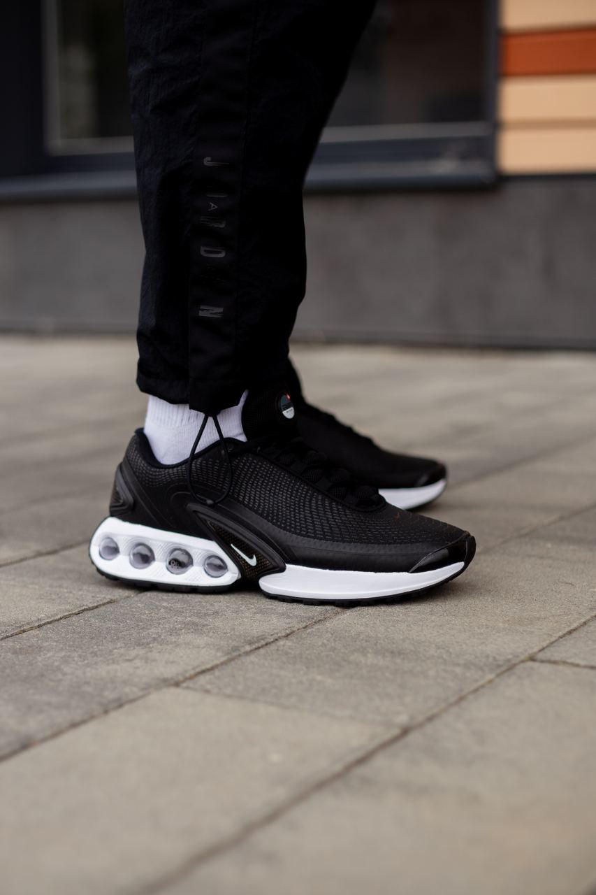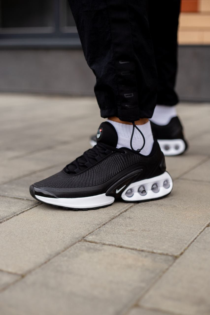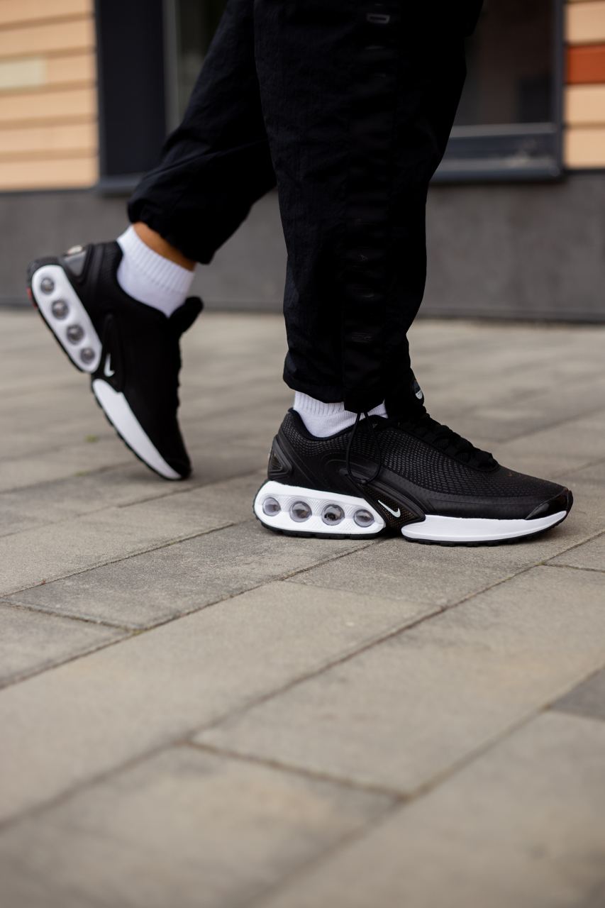 Nike Air Max DN Black/White — це сучасна версія культової лінійки Air Max, яка поєднує технологію Dynamic Air із мінімалістичним чорно‑білим дизайном, створюючи зручний і стрітстайл образ.