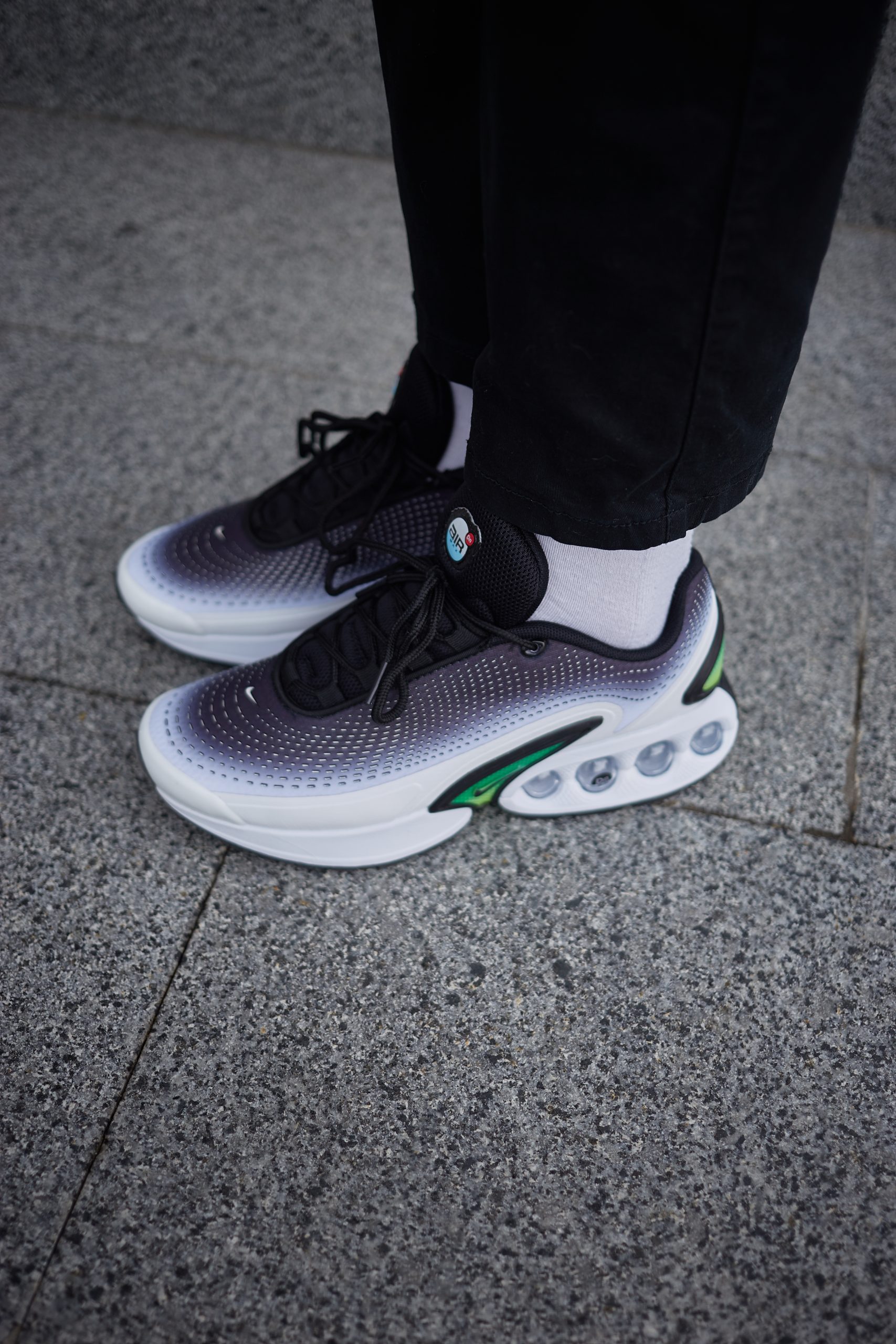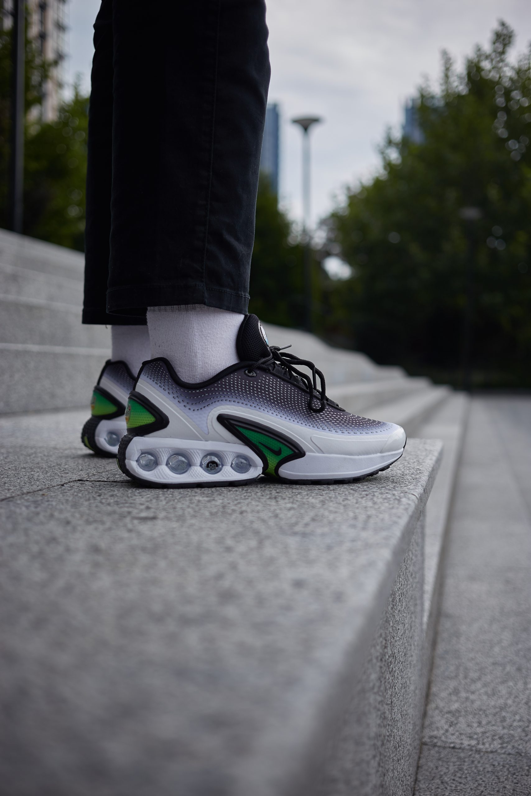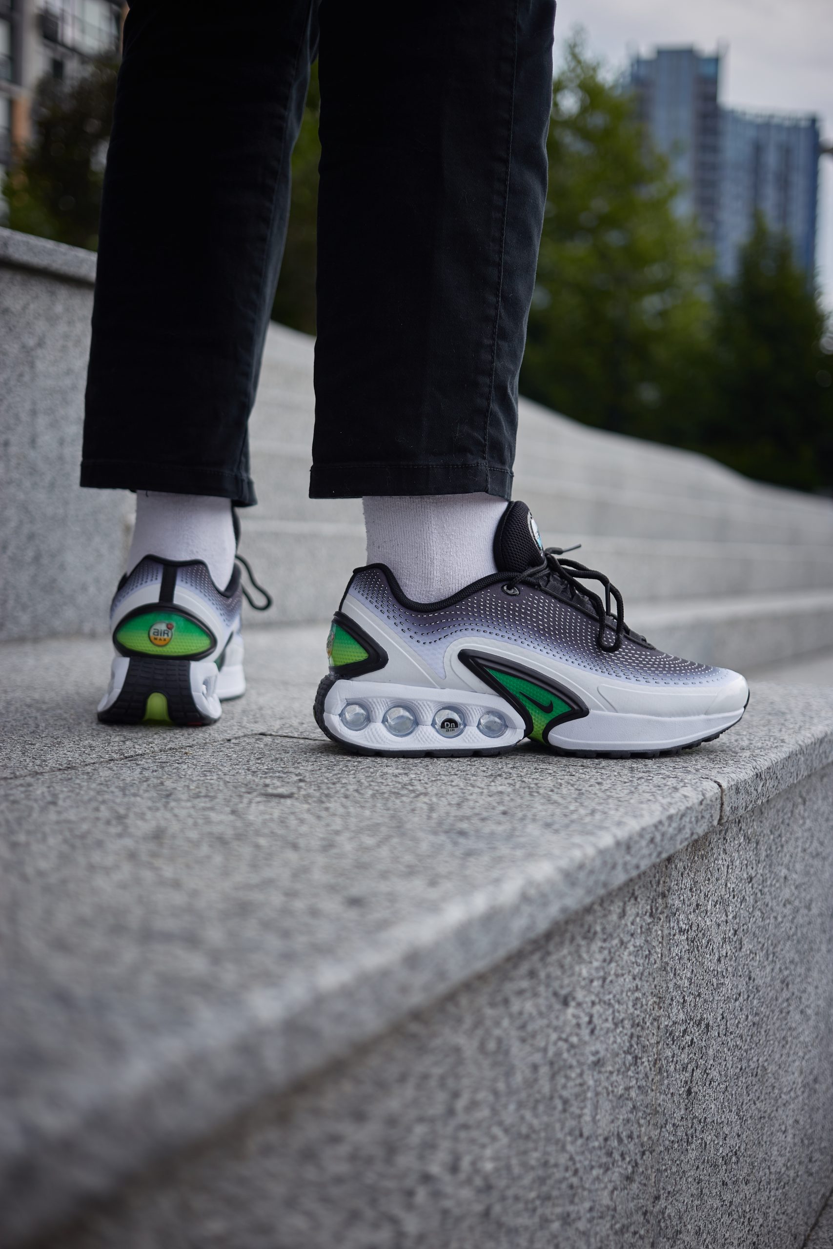 Nike Air Max DN Brown White Green — стильна коричнево-біла модель із зеленими акцентами, що поєднує класичний дизайн із сучасними деталями для виразного образу.