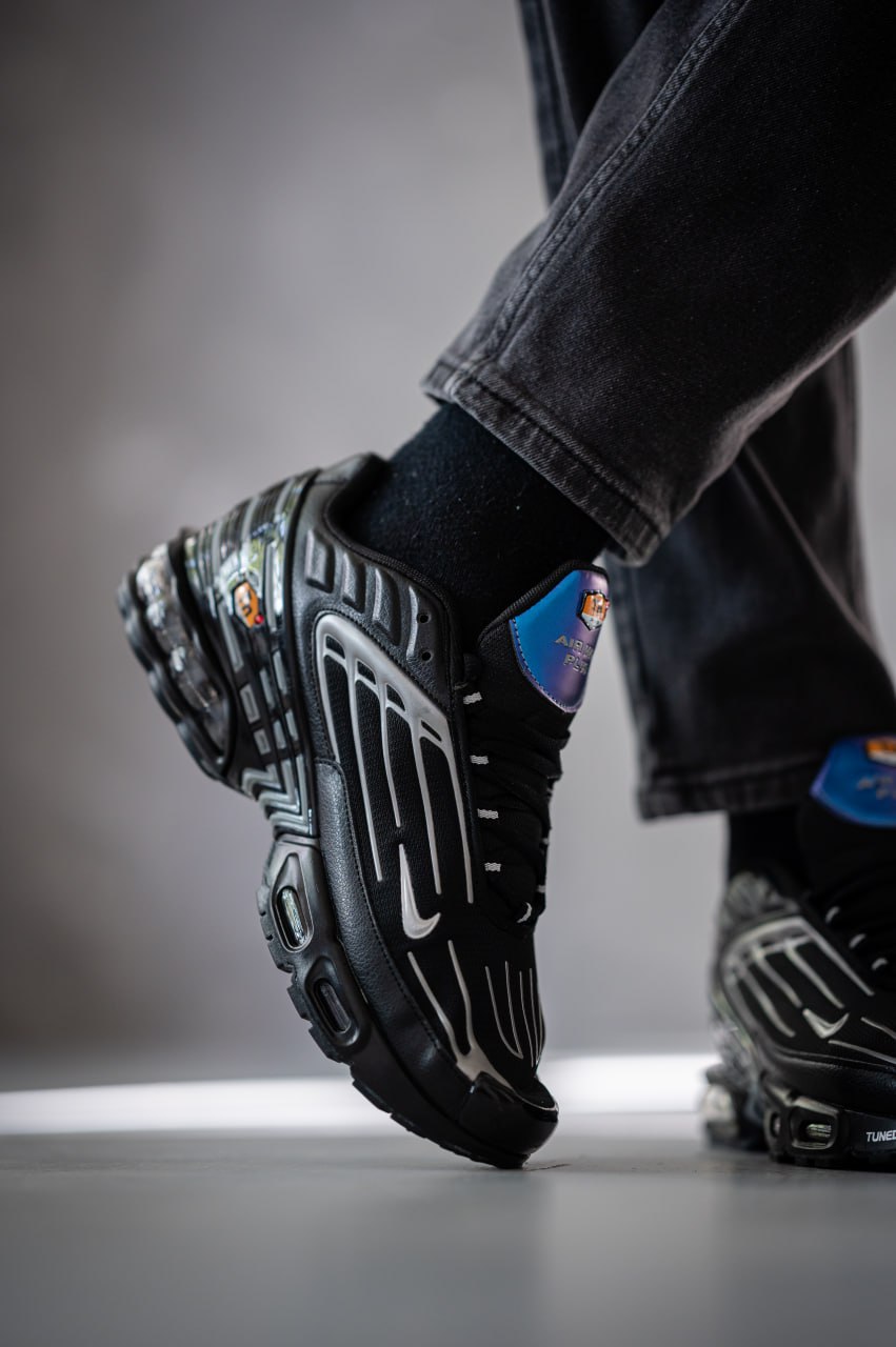 Nike Air Max Plus 3 Black Grey Blue — виразна модель із динамічним дизайном та характерним силуетом, що поєднує комфорт, надійність і сучасний стиль для активного міського життя.