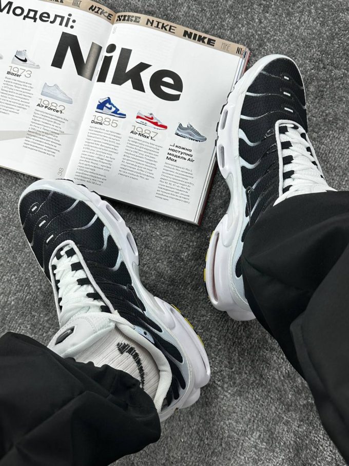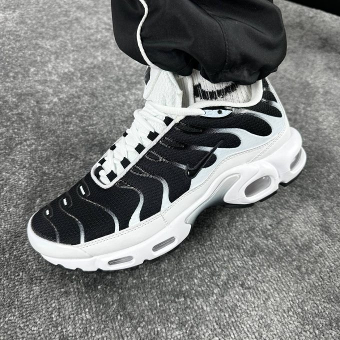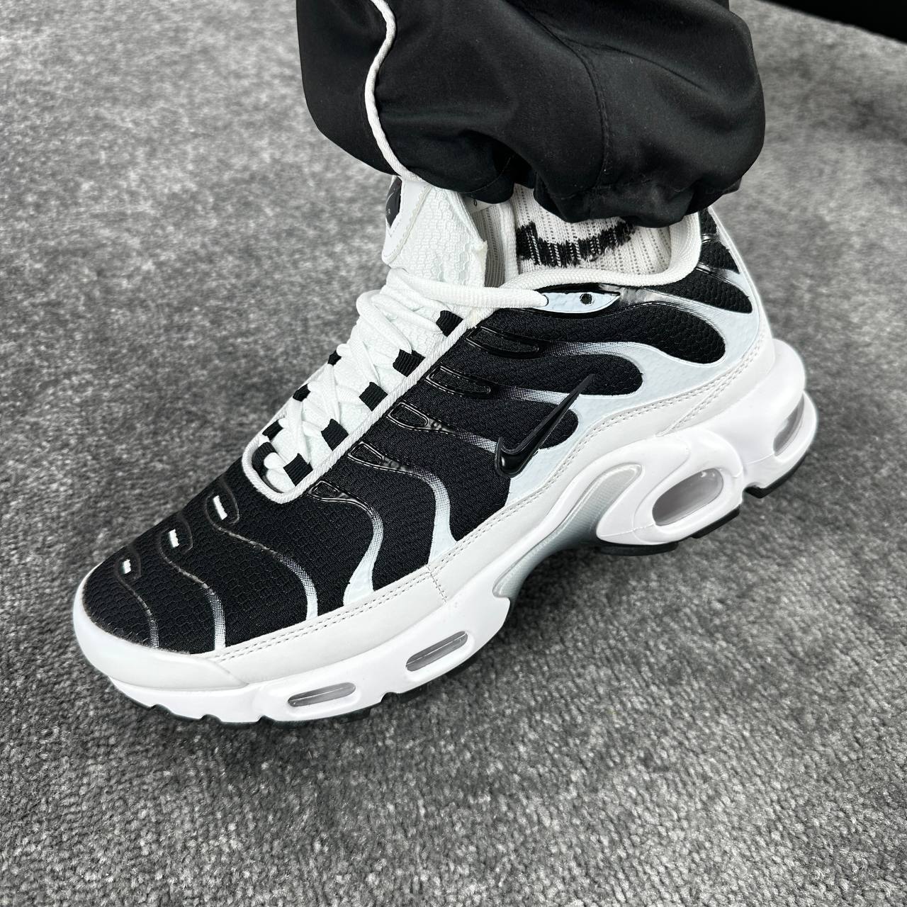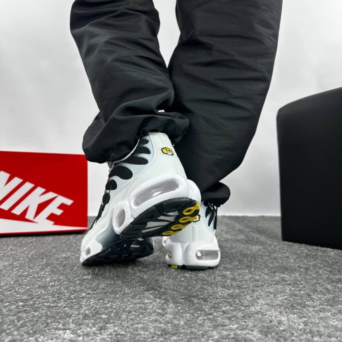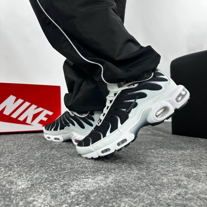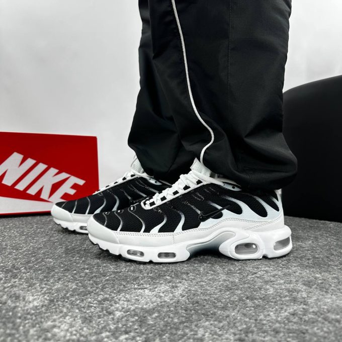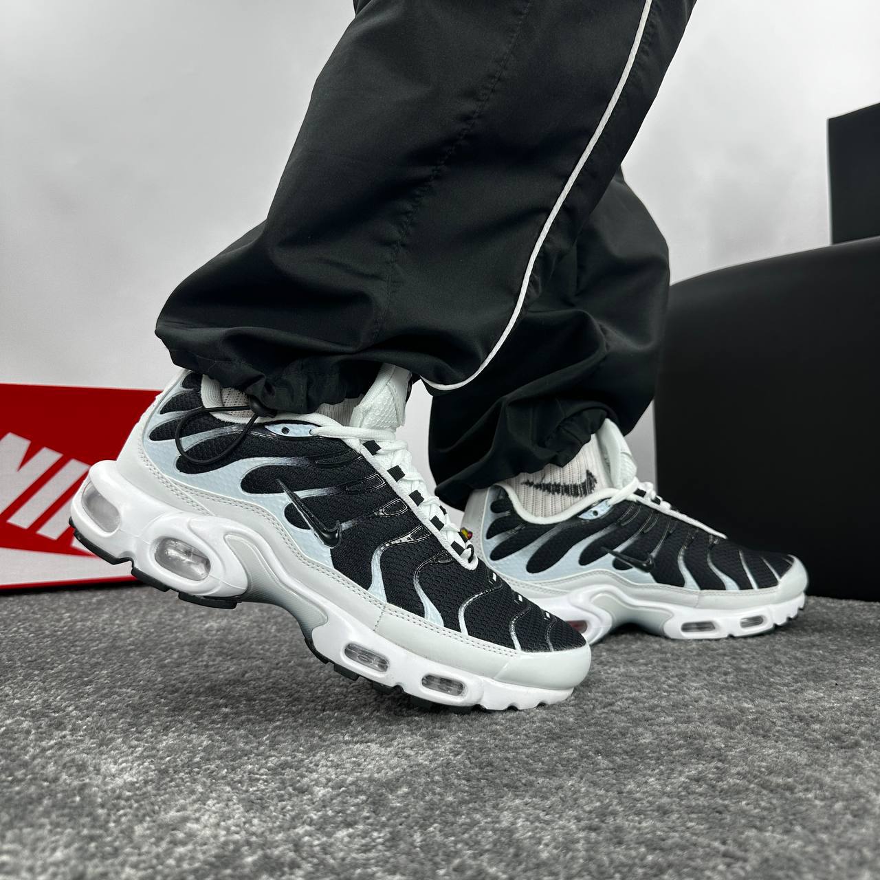 Nike Air Max Plus White Black Metallic Pewter — кросівки з динамічним дизайном у поєднанні білого, чорного та металевого відтінку, що поєднують ефектний стиль, комфорт і легендарну амортизацію.