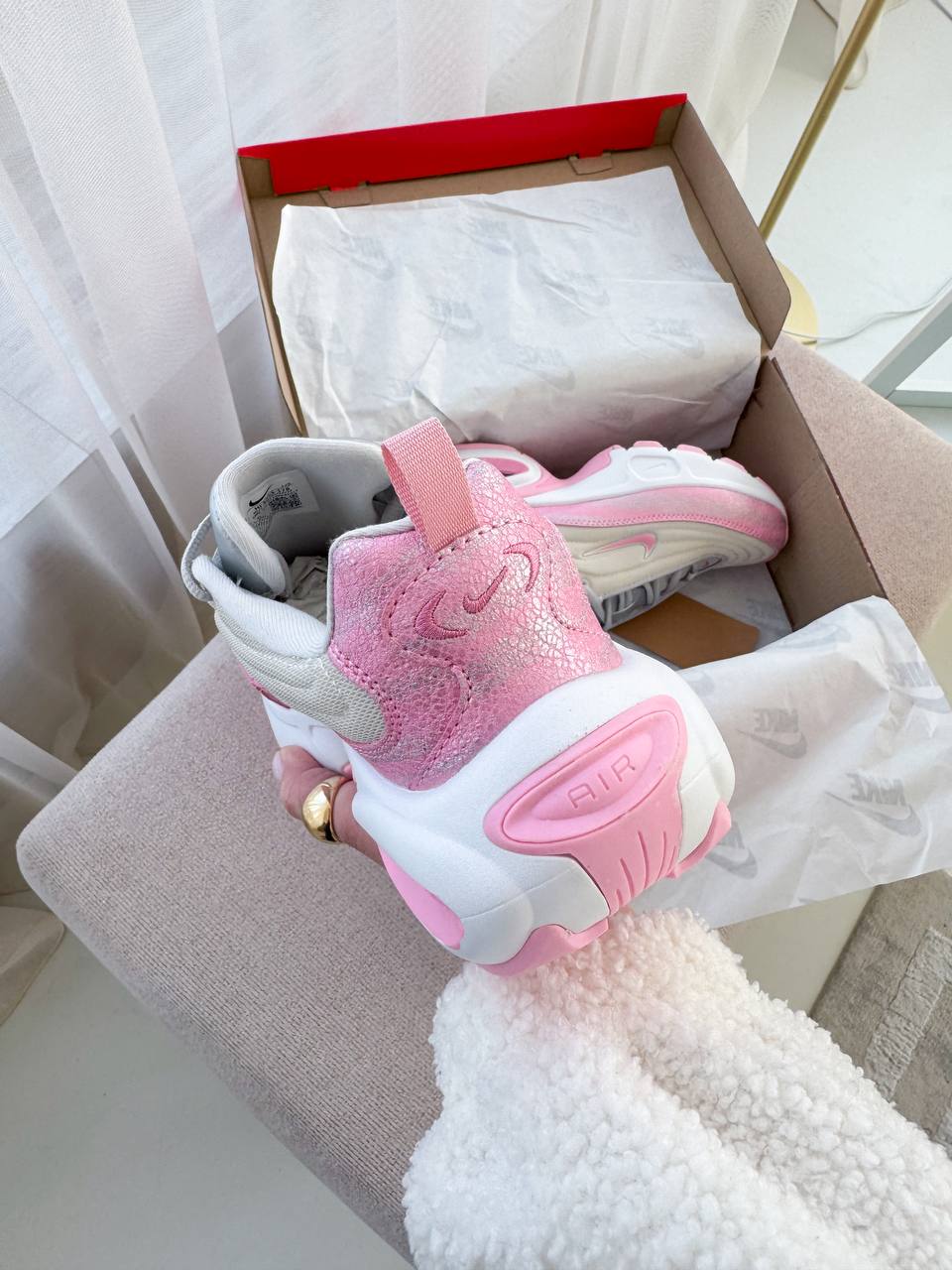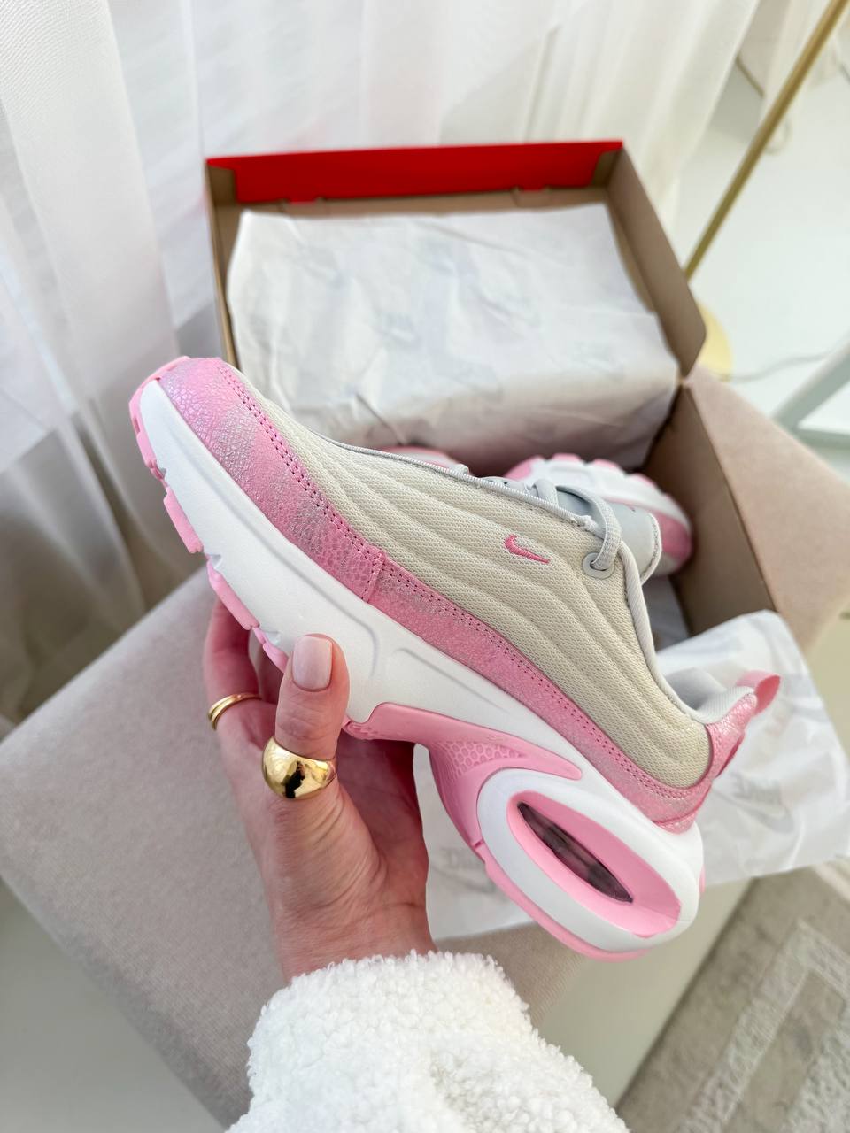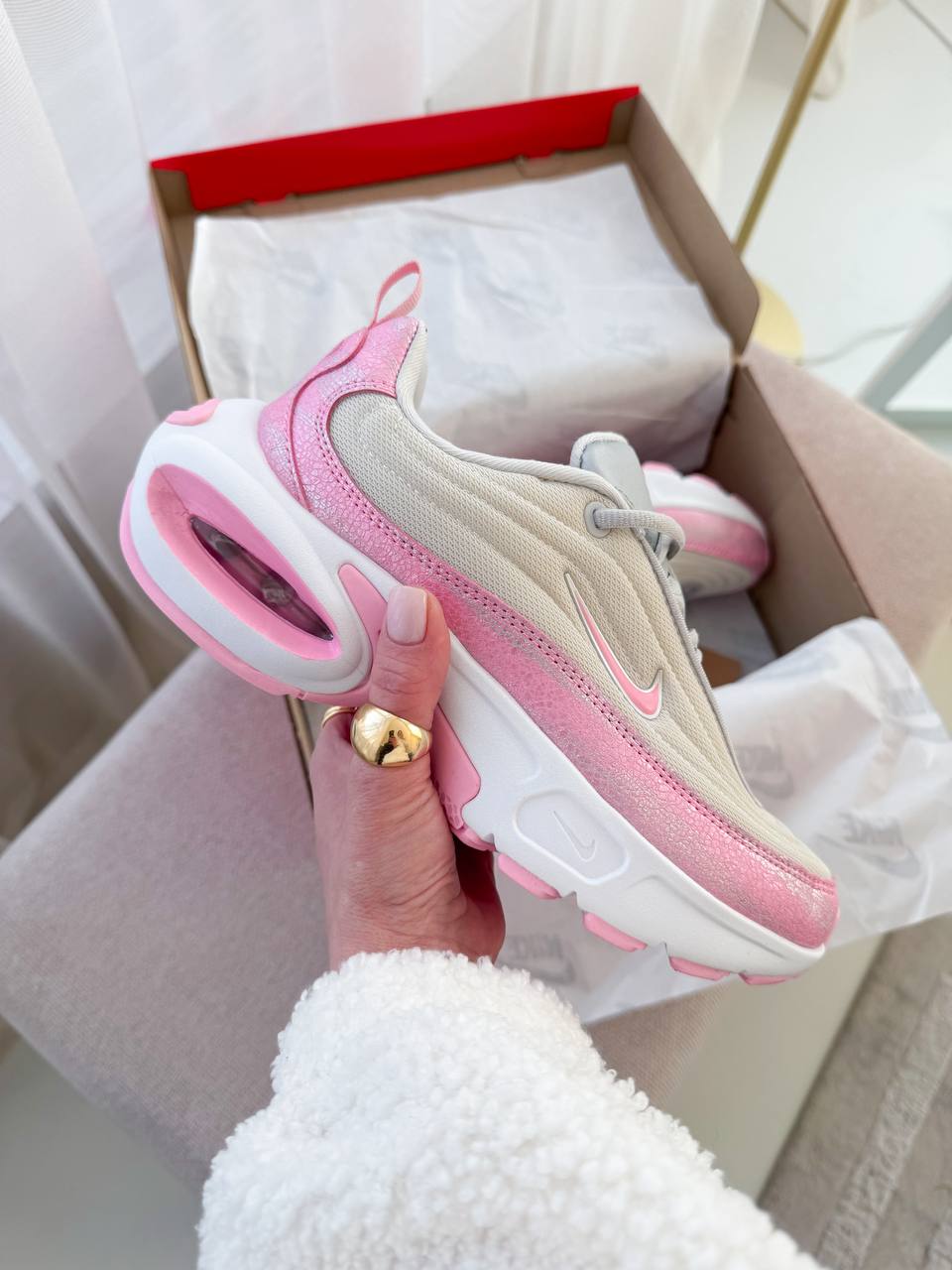 Nike Air Max Portal Pink — сучасна модель у рожевому відтінку з округлим силуетом та виразною формою, що поєднує м’який візуальний акцент, комфортну посадку та повсякденний стиль.