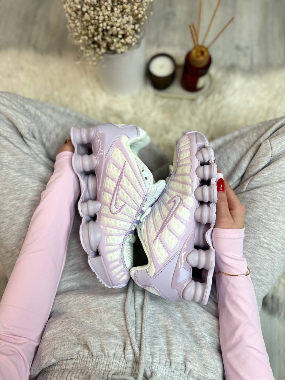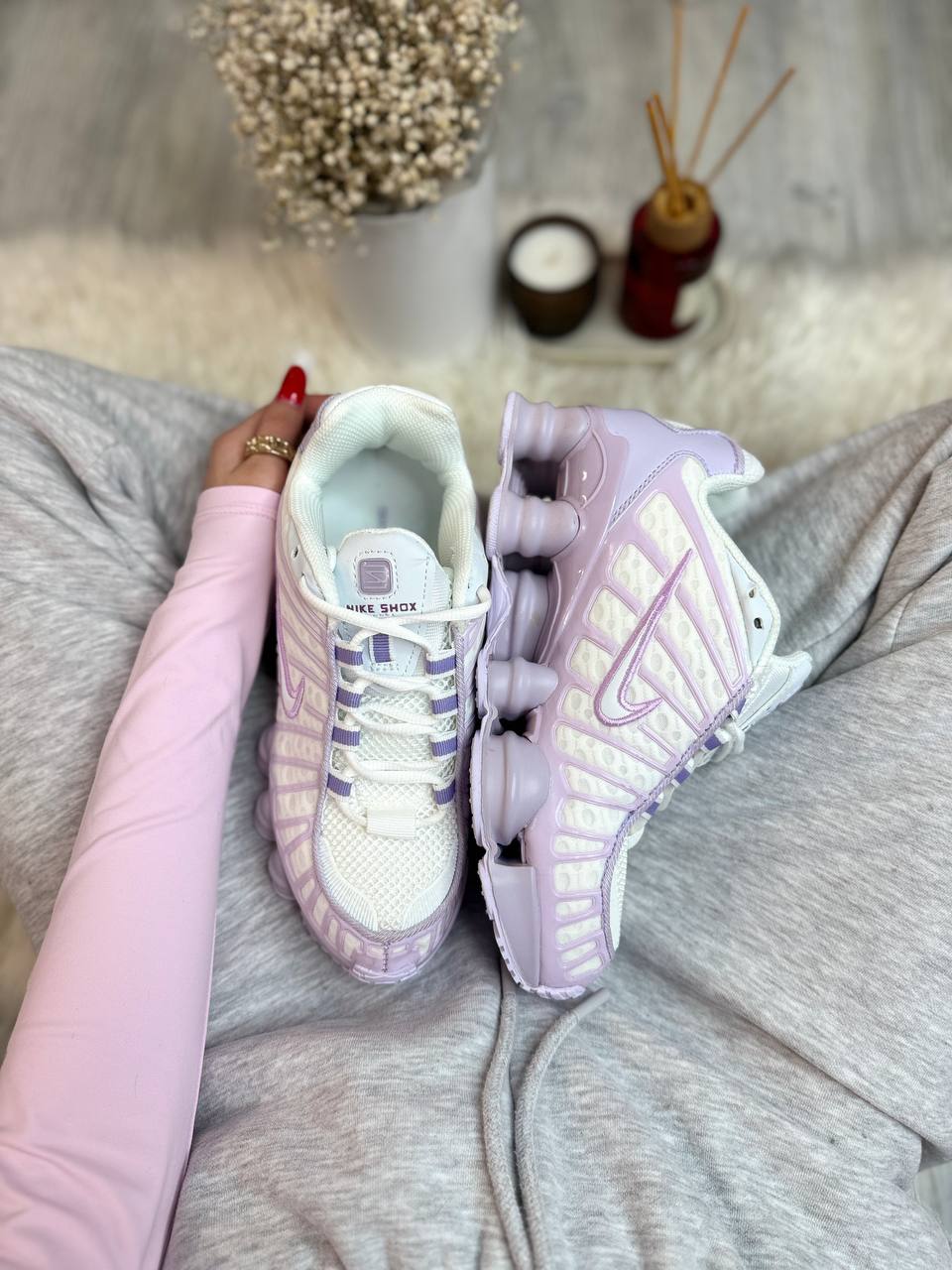 Nike Air Max Shox TL White Purple — виразна модель у білому кольорі з фіолетовими акцентами та футуристичним силуетом, що поєднує динамічний вигляд, комфортну посадку та сучасний повсякденний стиль.