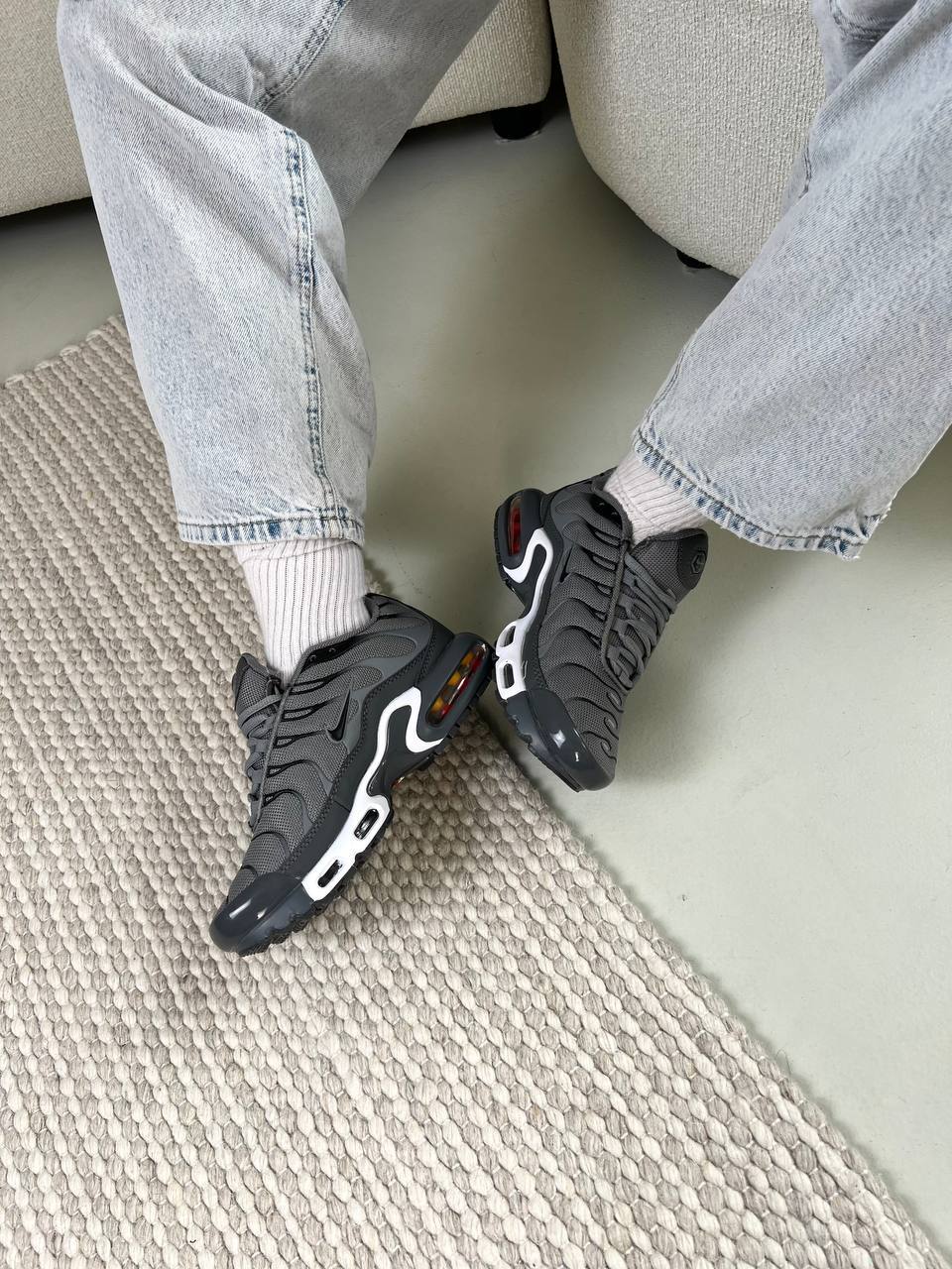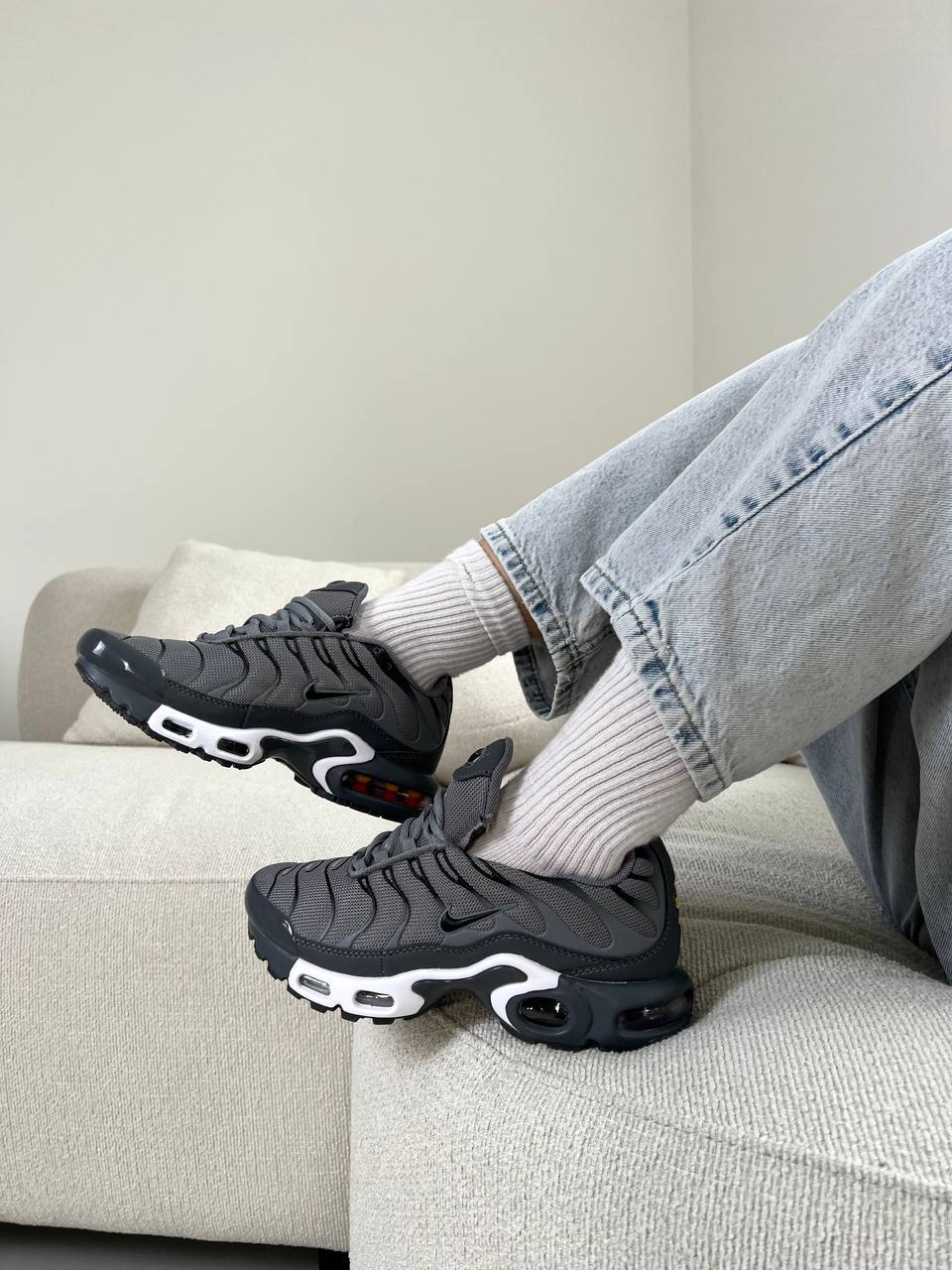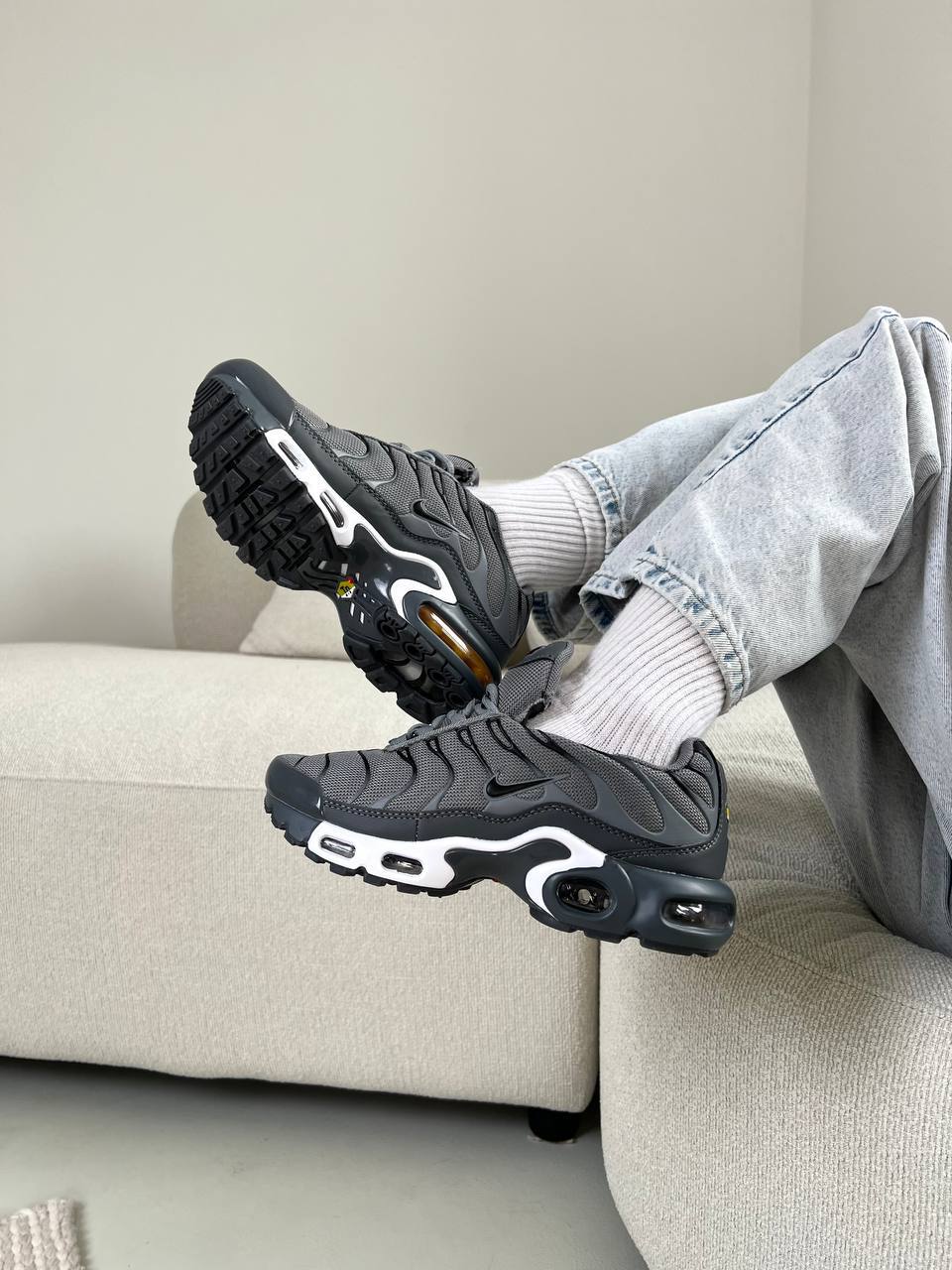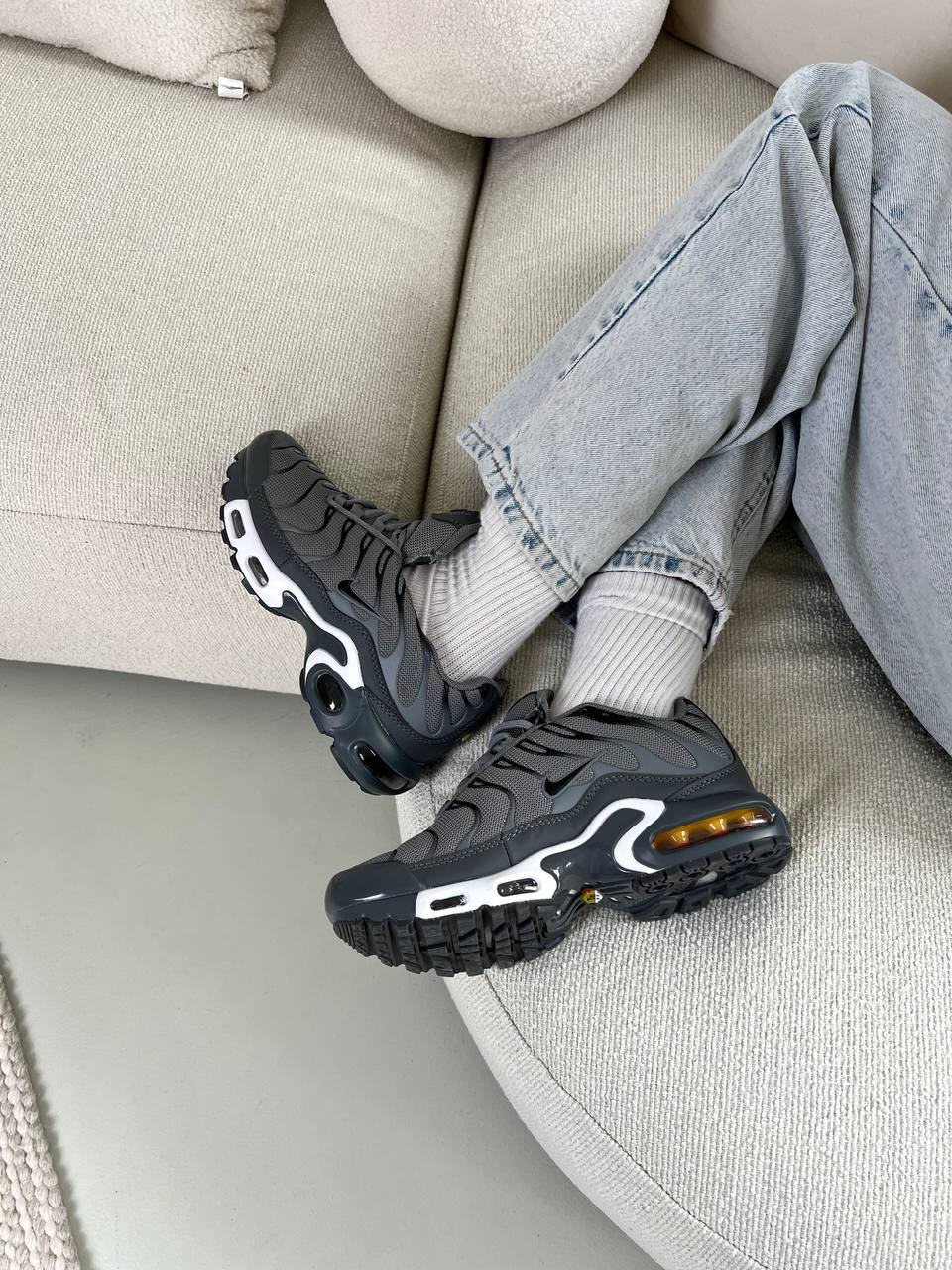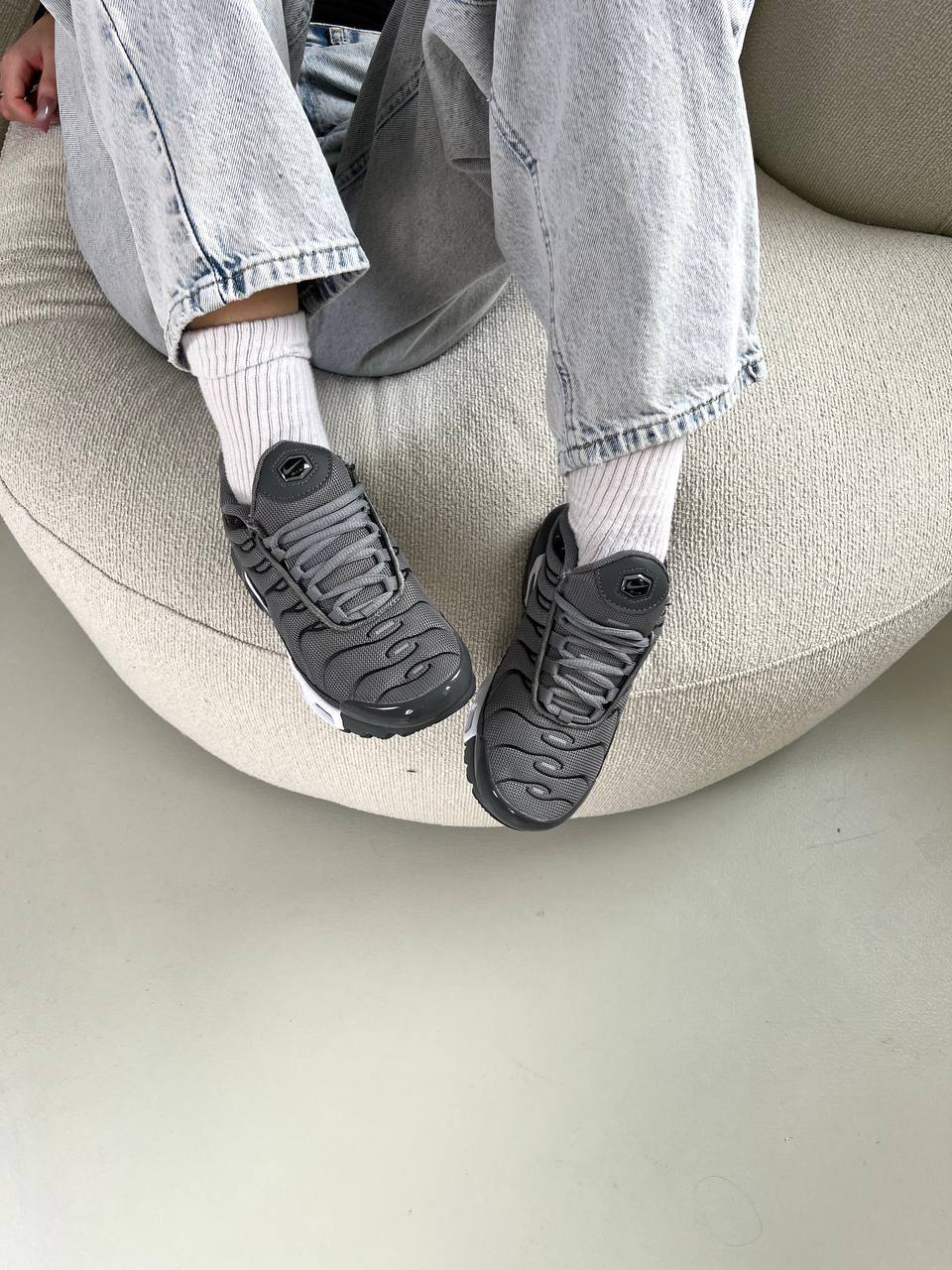 Nike Air Max TN Dark Grey — стильна модель у темно-сірому кольорі з характерним динамічним силуетом, що поєднує комфорт, виразний дизайн і спортивний характер.