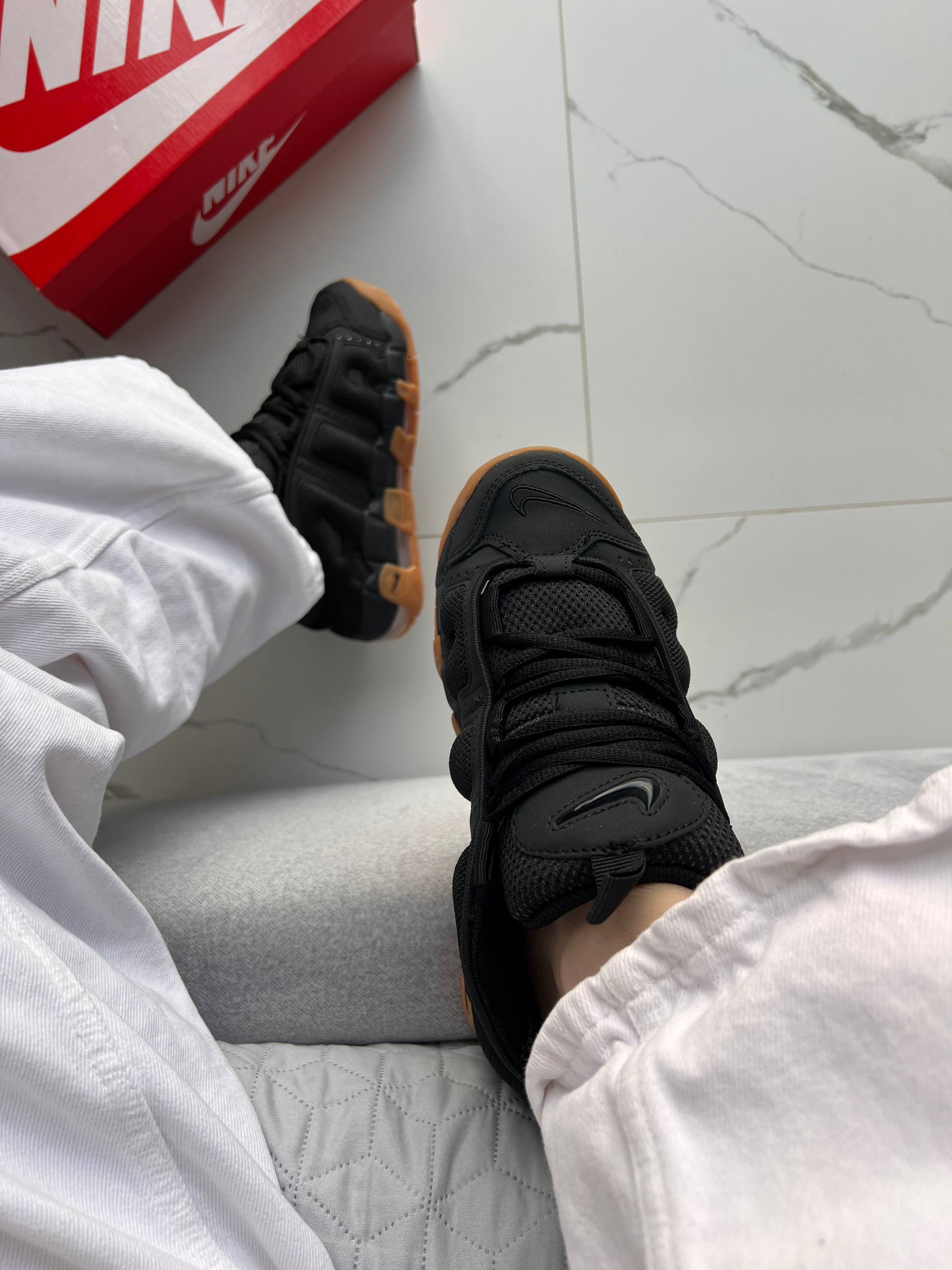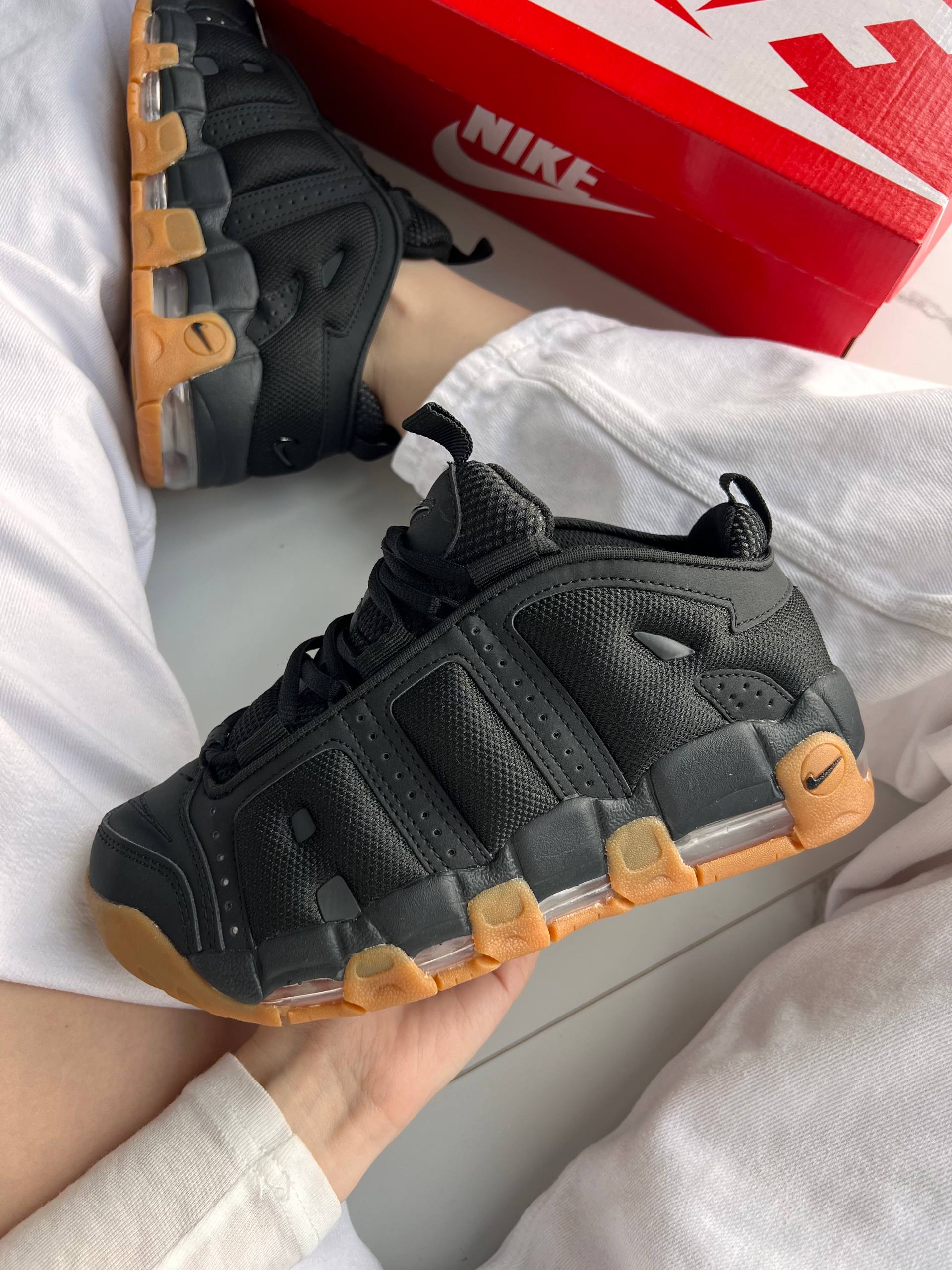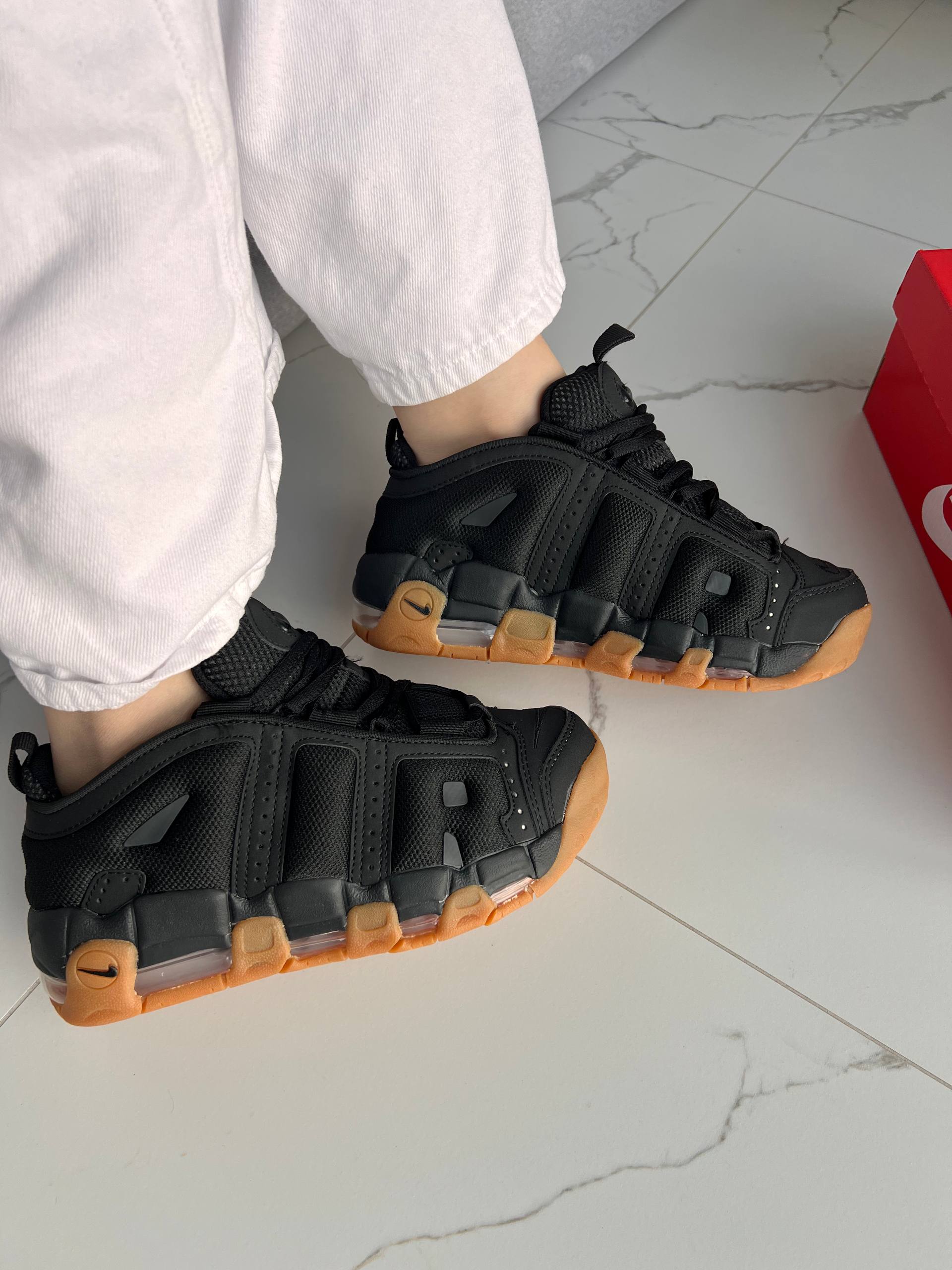 Nike Air More Uptempo Low Black Gum — сучасна модель у поєднанні чорного верху та коричневої підошви, що вирізняється впізнаваним дизайном і комфортом під час щоденного носіння.
