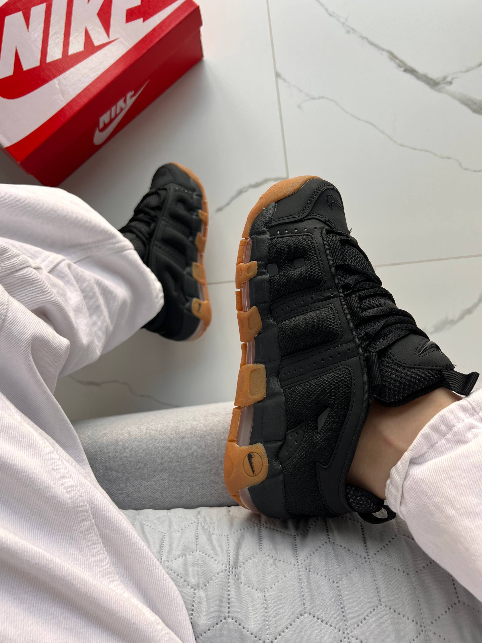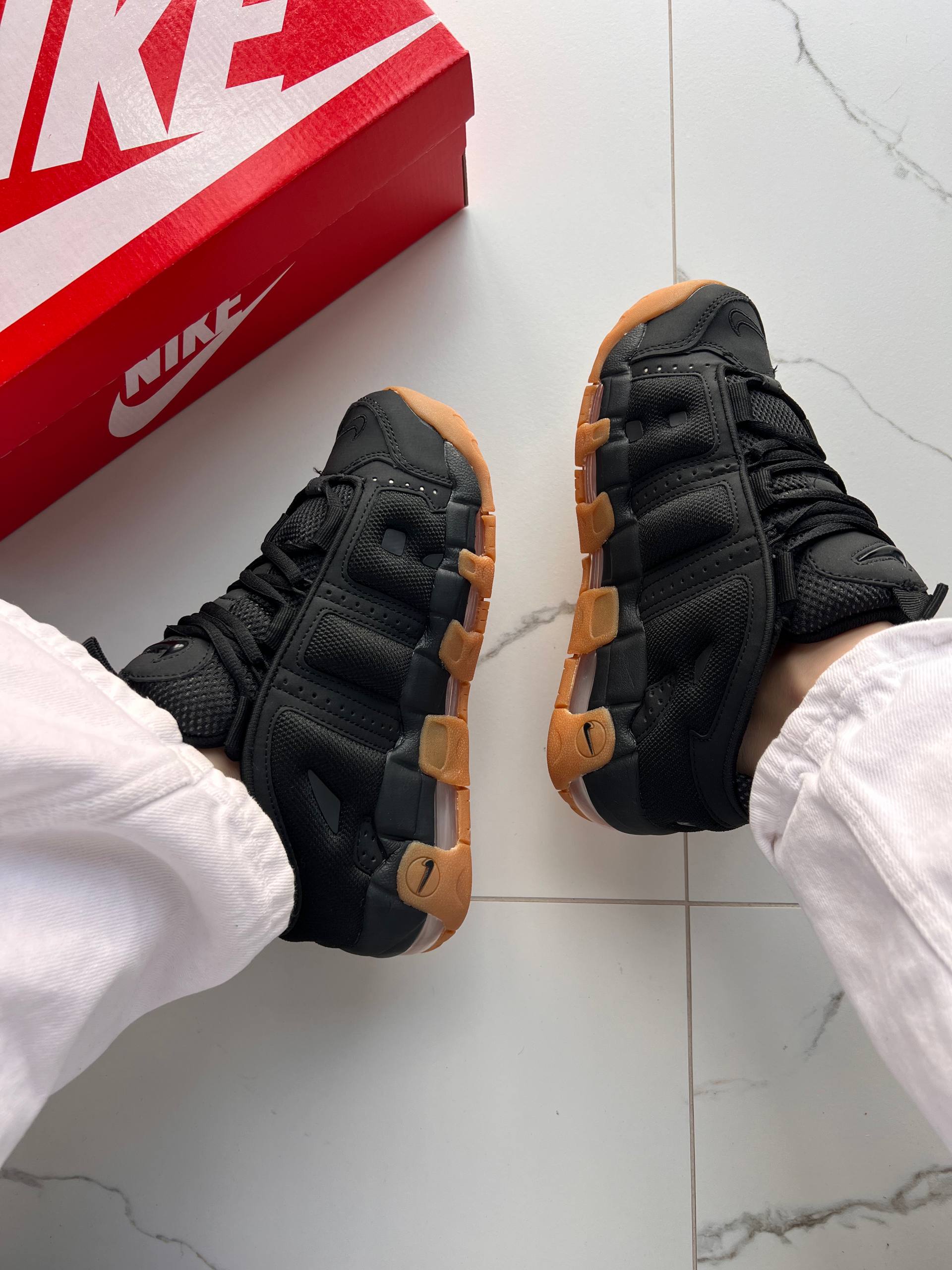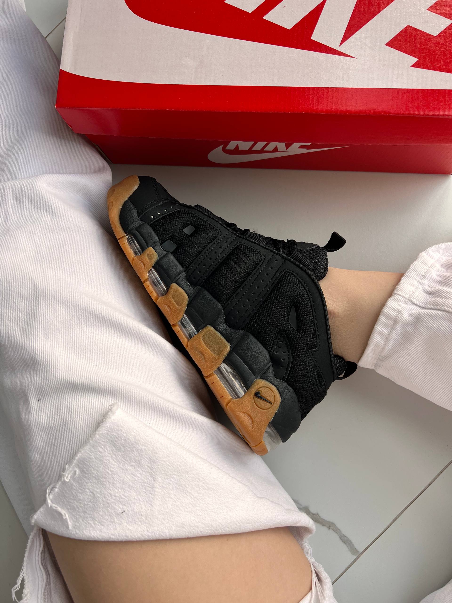 Nike Air More Uptempo Low Black Gum — сучасна модель у поєднанні чорного верху та коричневої підошви, що вирізняється впізнаваним дизайном і комфортом під час щоденного носіння.