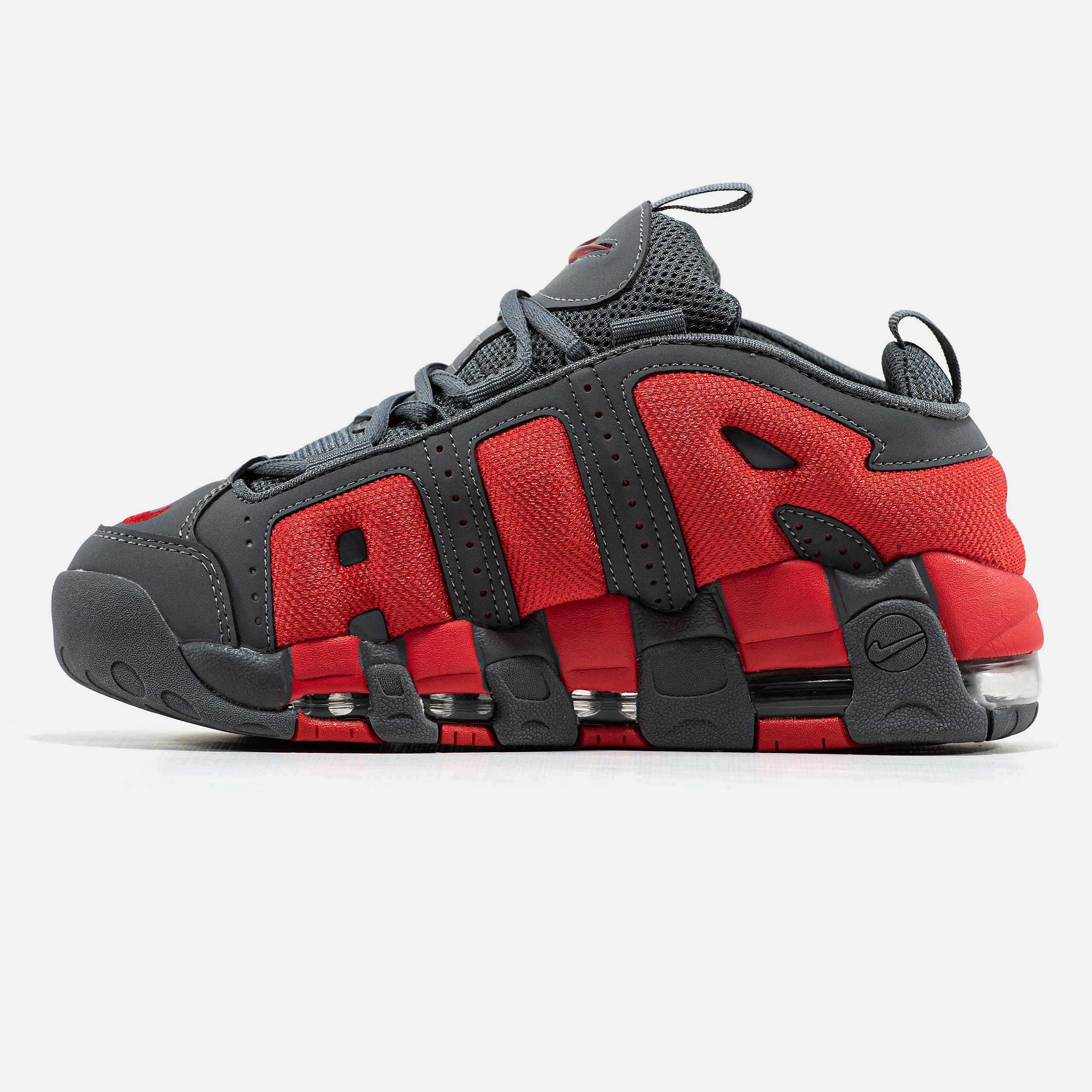 Nike Air More Uptempo Low Dark Grey Light Crimson — виразна та динамічна модель із впізнаваним дизайном, що поєднує комфорт, стиль і спортивний характер.