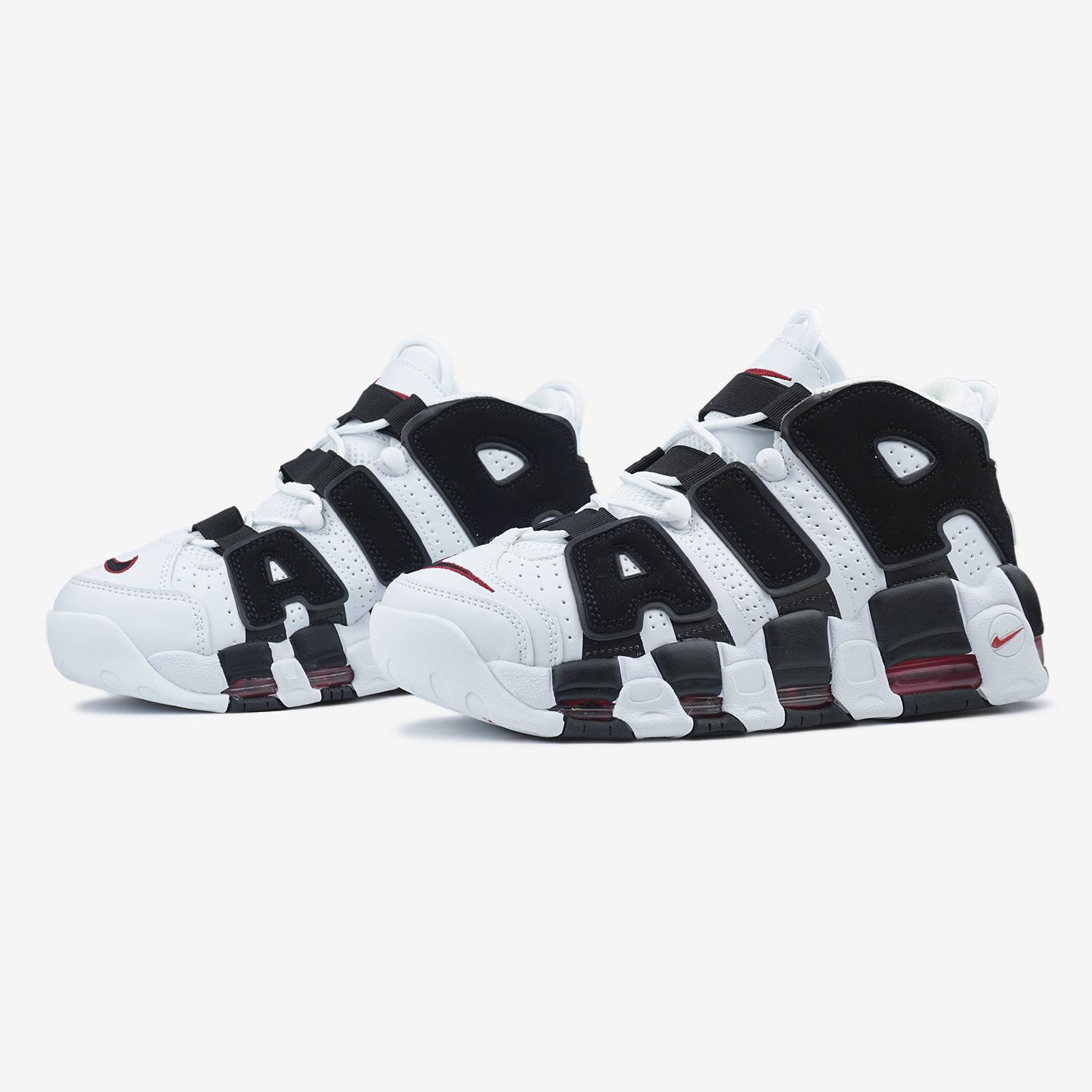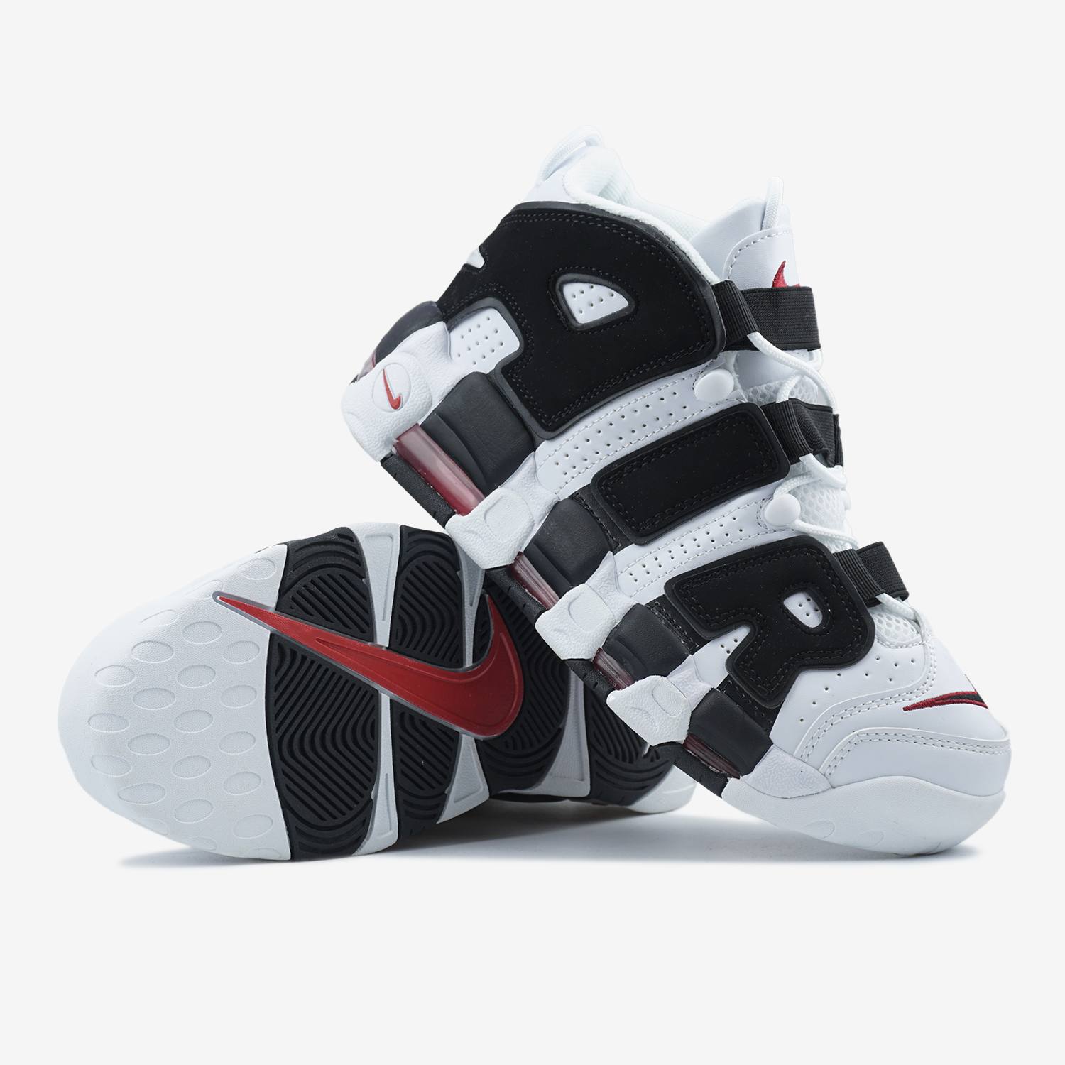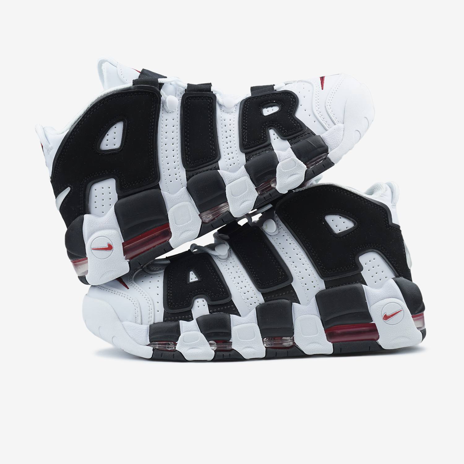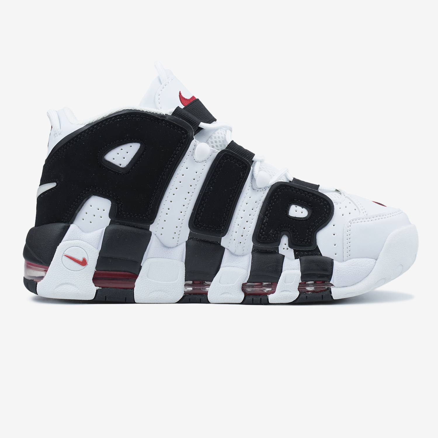Nike Air More Uptempo White Black — культова біла модель із масивними чорними літерами AIR, що створюють виразний контраст і підкреслюють характерний дизайн силуету.