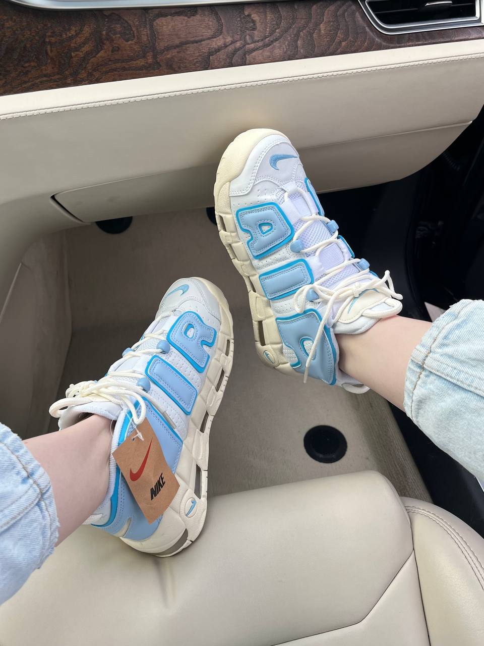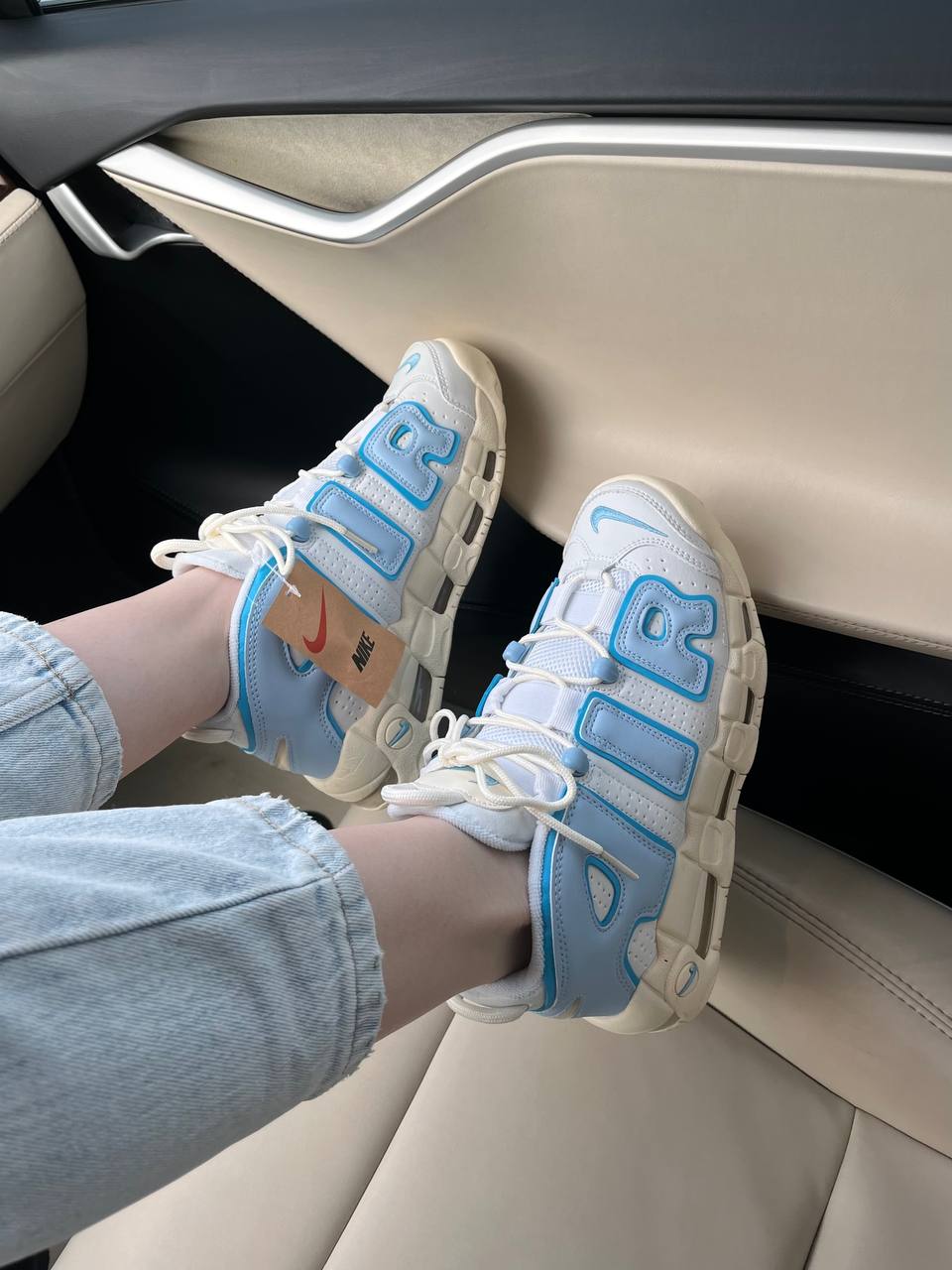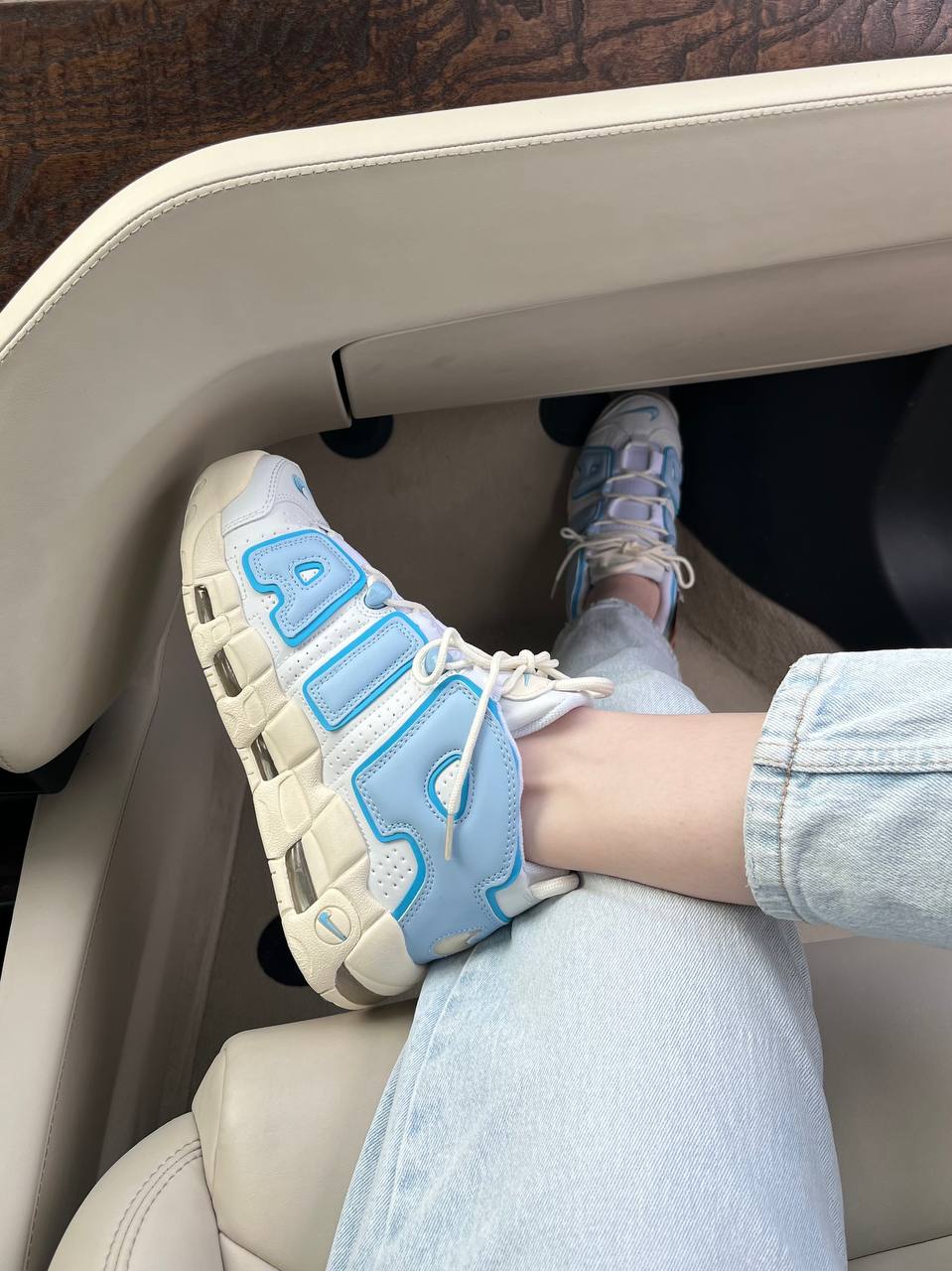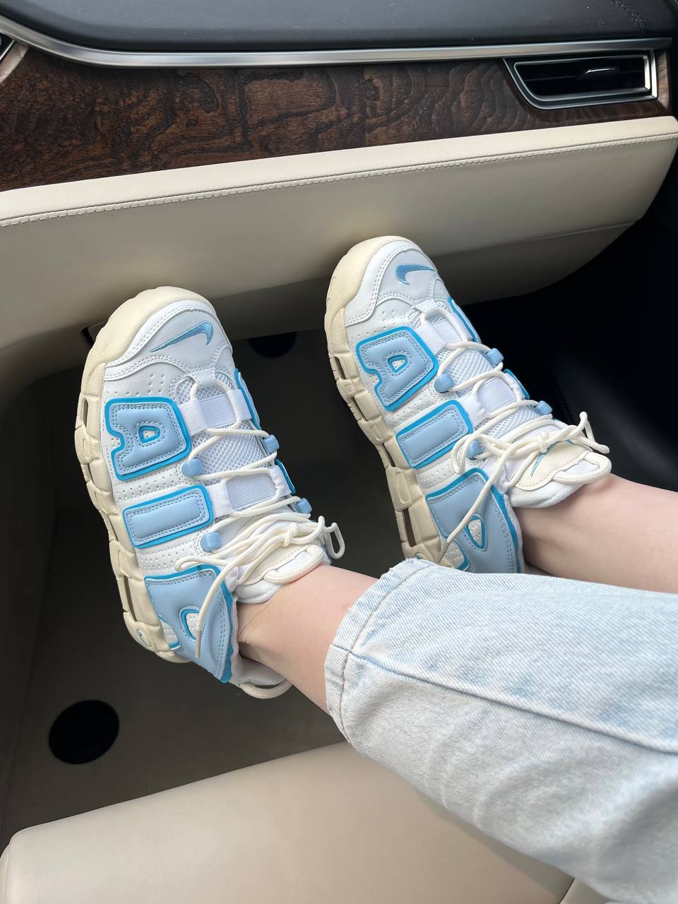 Nike Air More Uptempo White Blue Sail – виразна модель у поєднанні білого та синього відтінків, що зберігає культовий силует і забезпечує комфорт під час щоденного носіння.