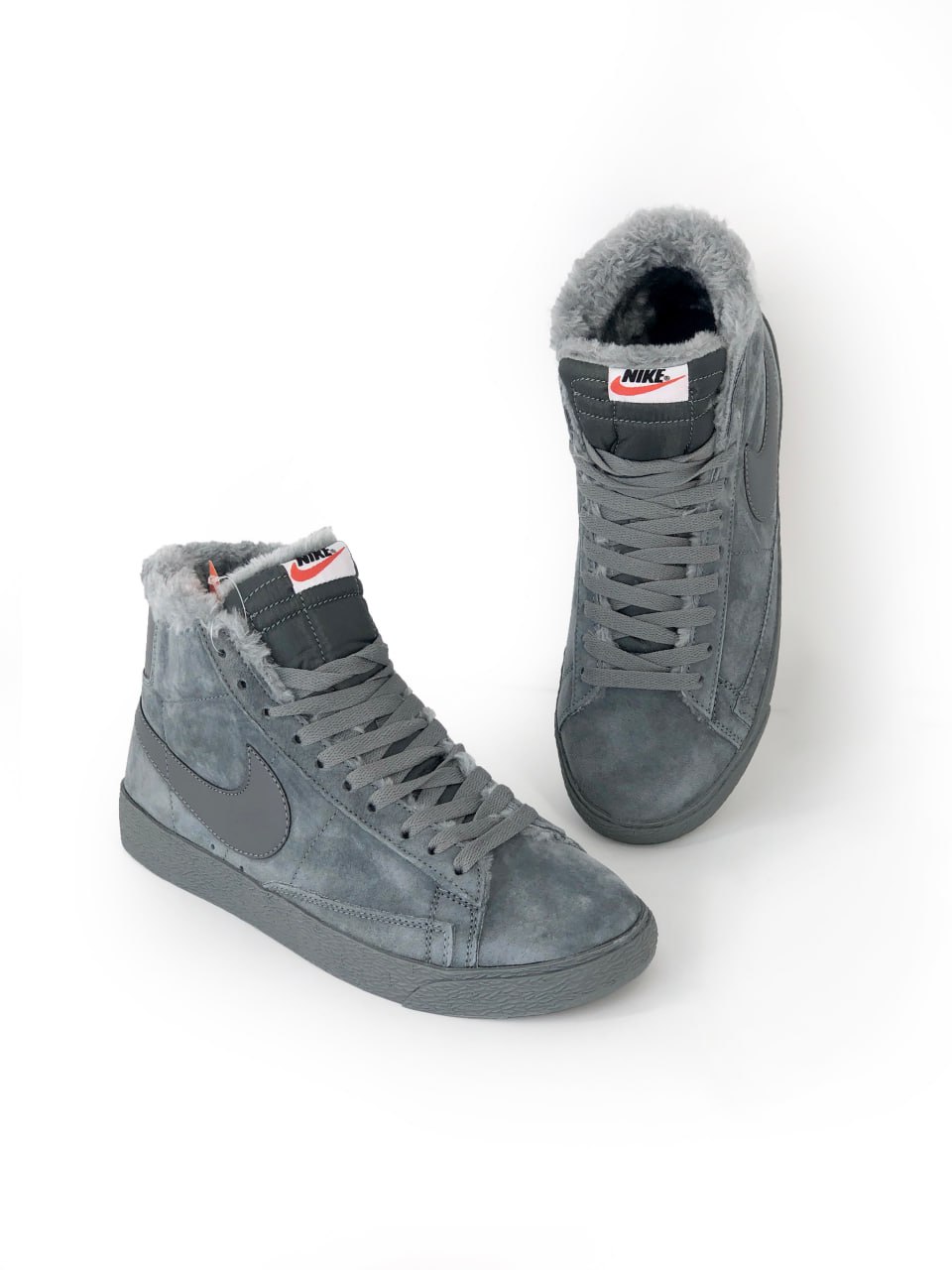 Nike Blazer Mid Grey Fur — середня модель у сірому відтінку з утепленням та класичним силуетом, що поєднує стриманий вигляд, комфортну посадку та повсякденний стиль.
