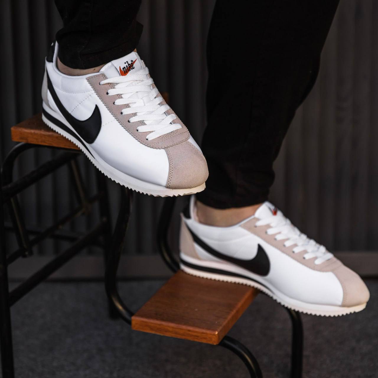 Nike Cortez White Black — класична модель у білому кольорі з чорними акцентами та легендарним силуетом, що поєднує мінімалістичний вигляд, комфортну посадку та універсальний повсякденний стиль.