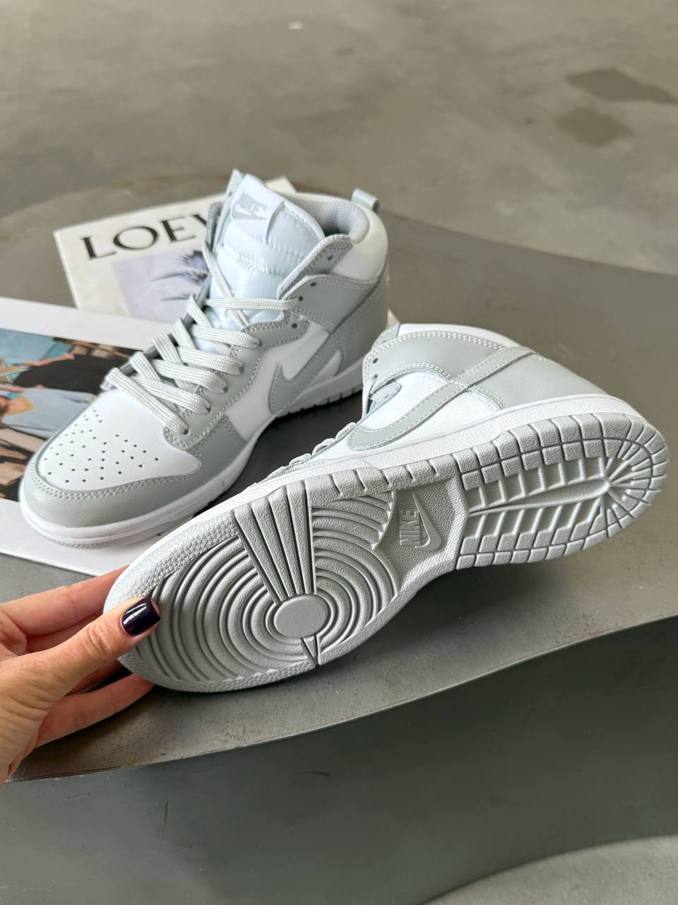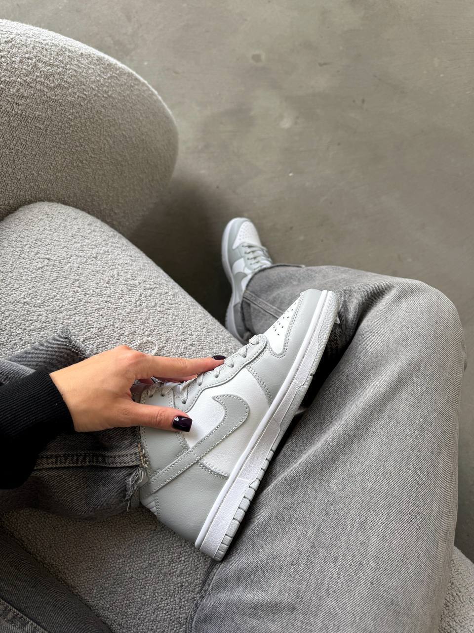 Nike Dunk High Grey — це високі кросівки в стриманій сірій палітрі, які поєднують міський стиль і ретро-настрій.