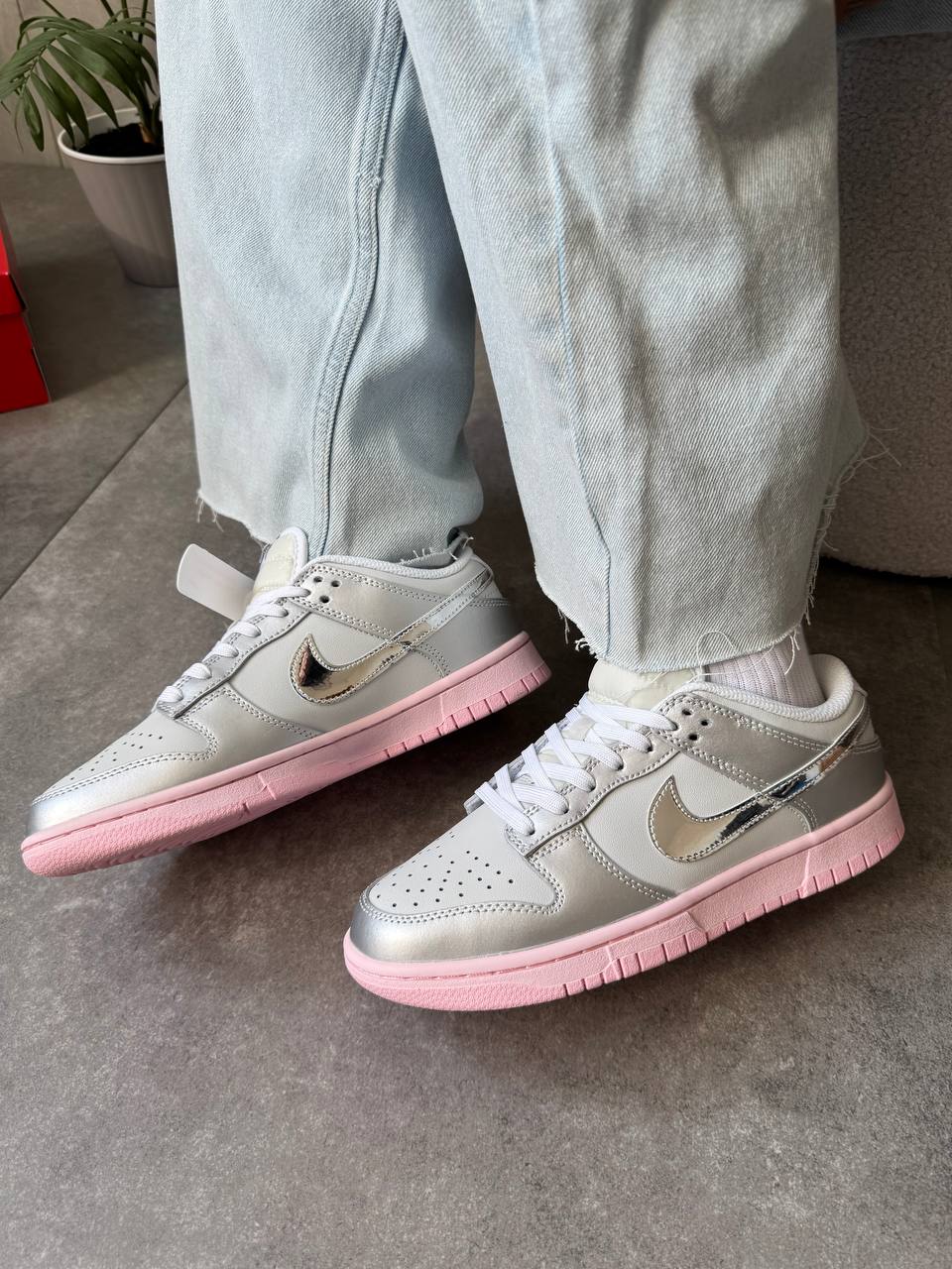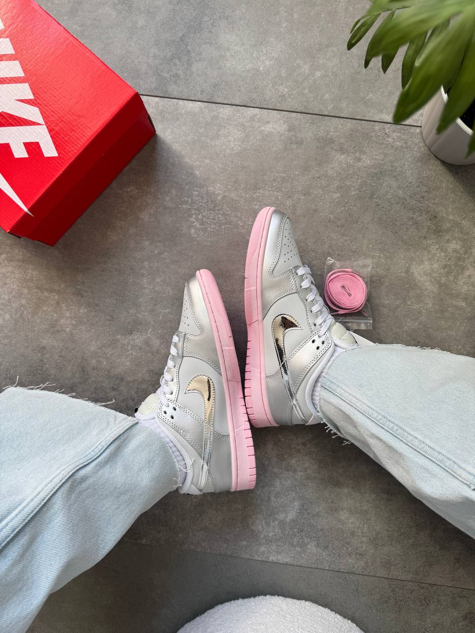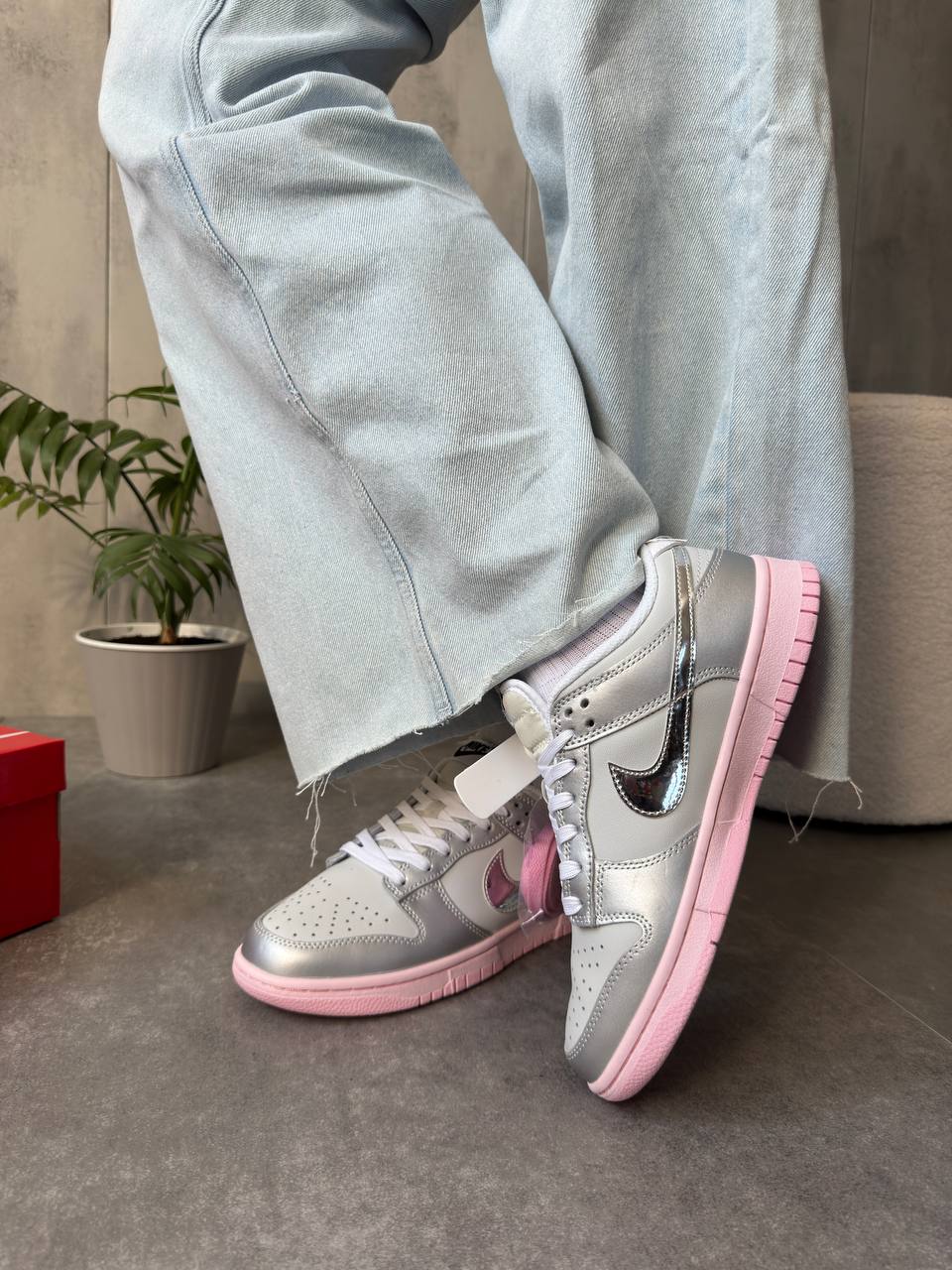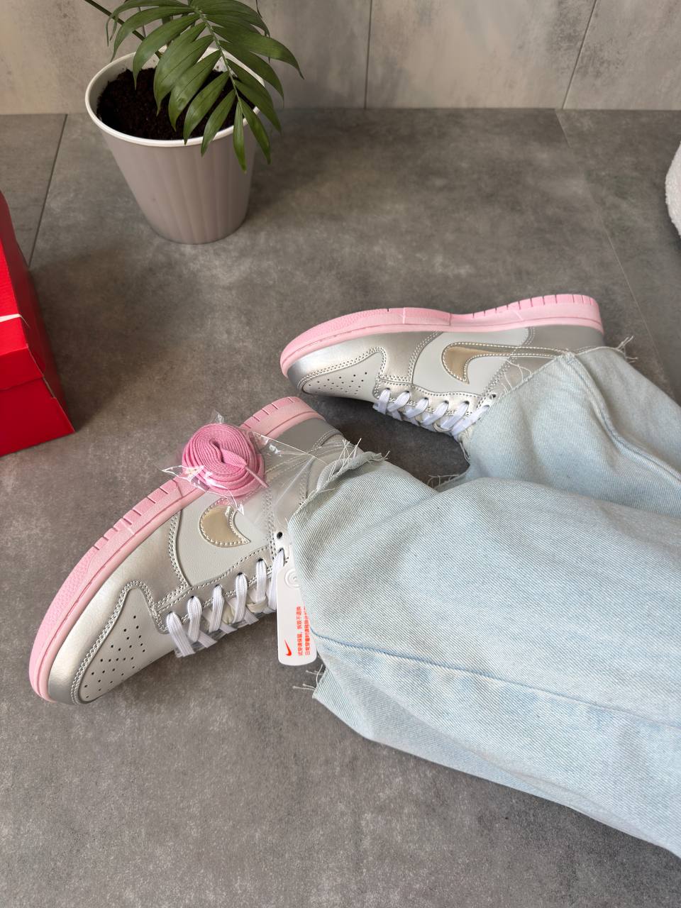 Nike Dunk Low LX Metallic Silver Pink Foam — стильні низькі кросівки з поєднанням металевого срібла та ніжного рожевого відтінку Pink Foam.