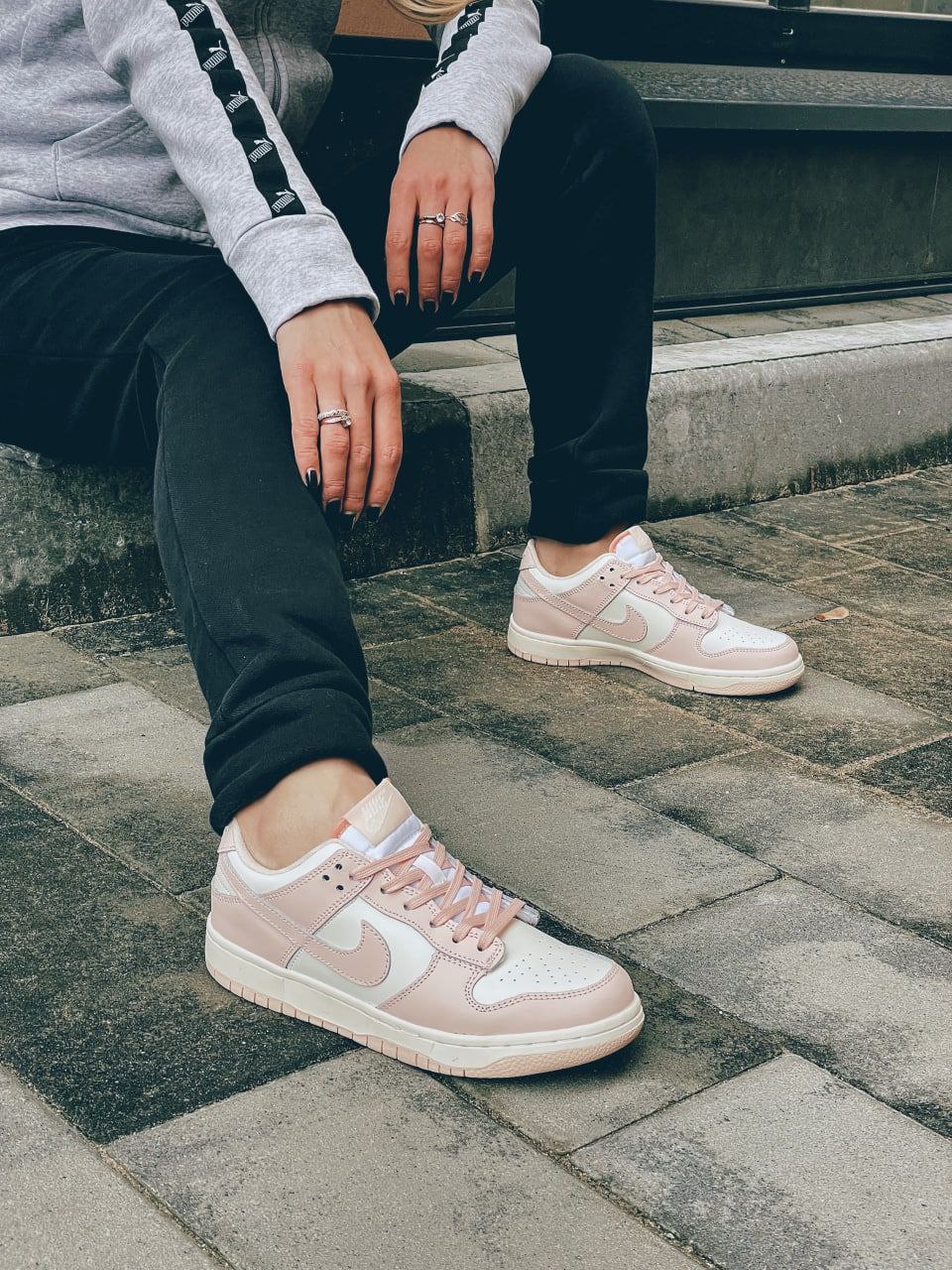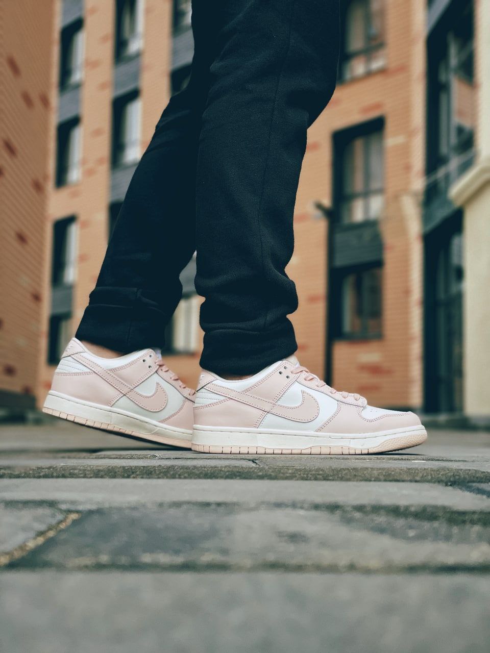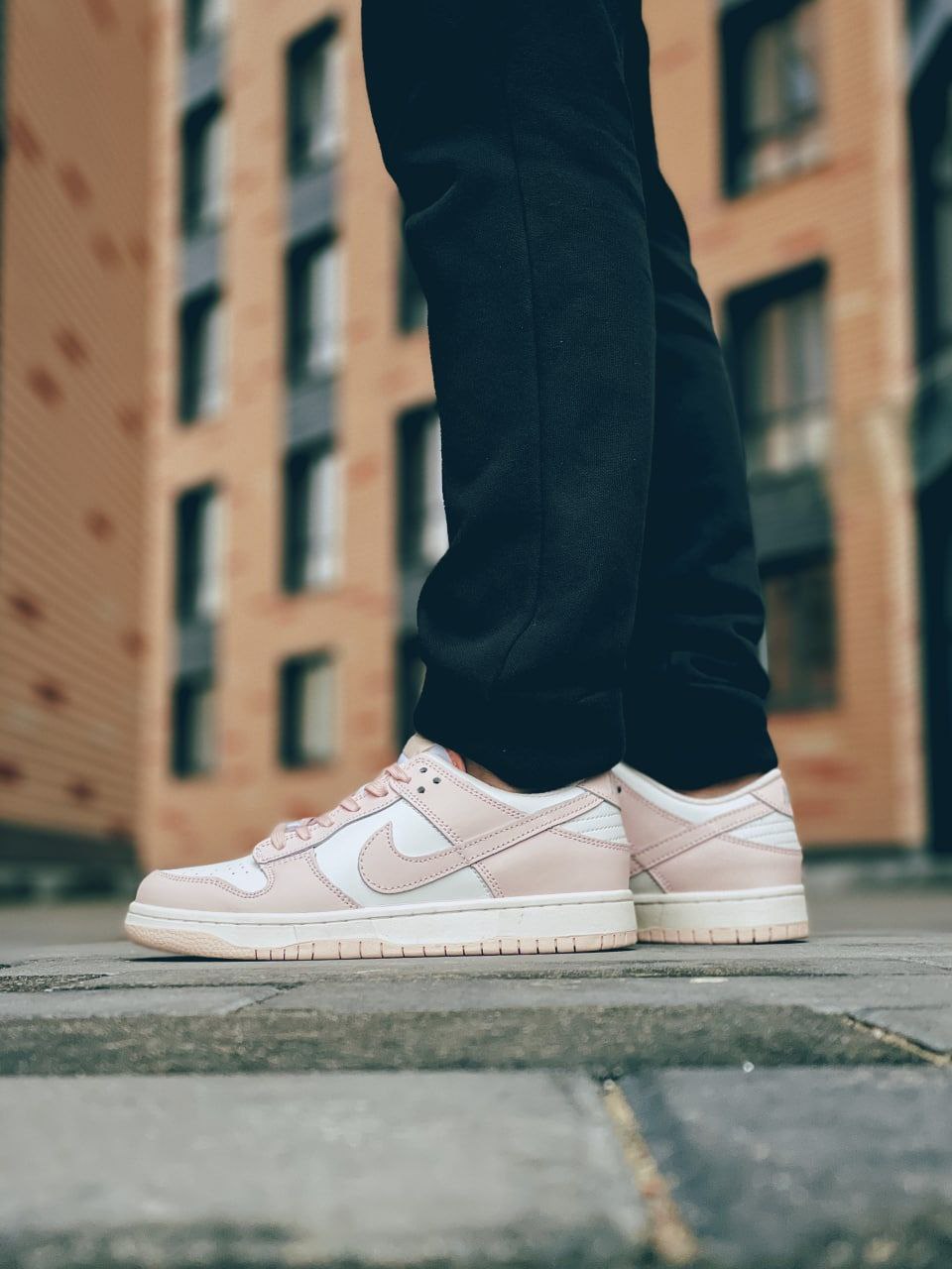 Nike Dunk Low Orange Pearl — ніжна модель у світло-рожевих відтінках із класичним силуетом, що поєднує стиль, комфорт і універсальність для повсякденних образів.