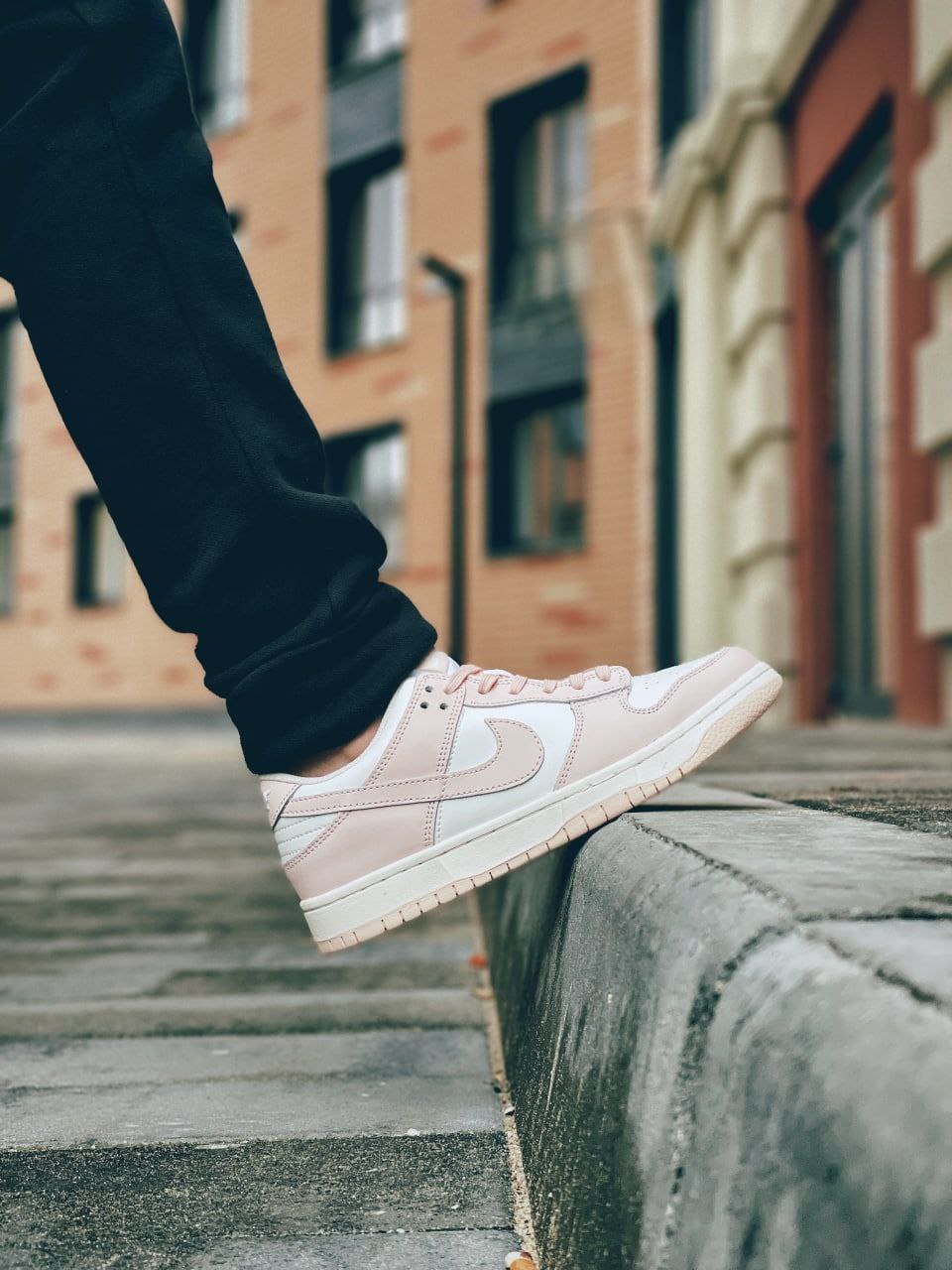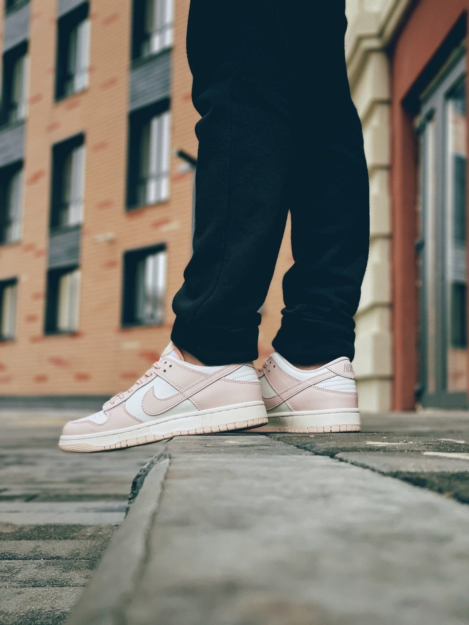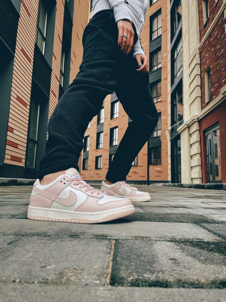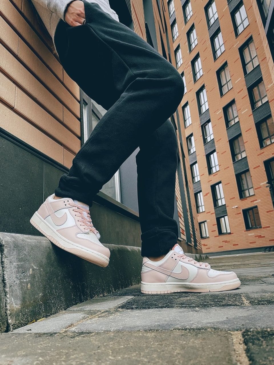 Nike Dunk Low Orange Pearl — ніжна модель у світло-рожевих відтінках із класичним силуетом, що поєднує стиль, комфорт і універсальність для повсякденних образів.