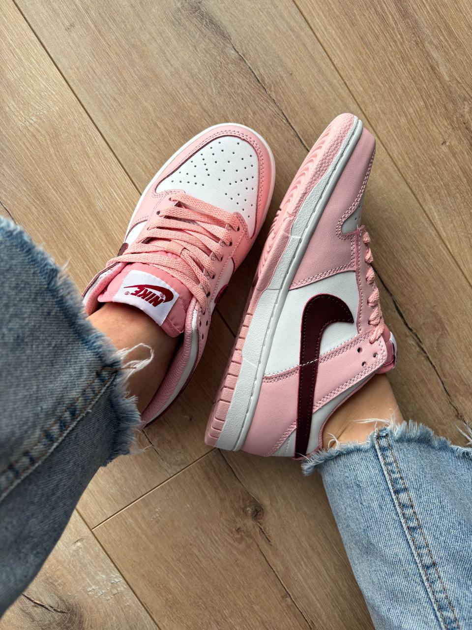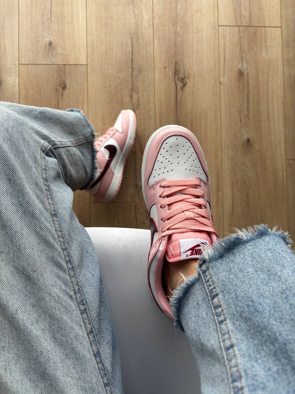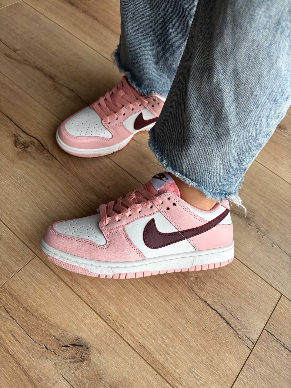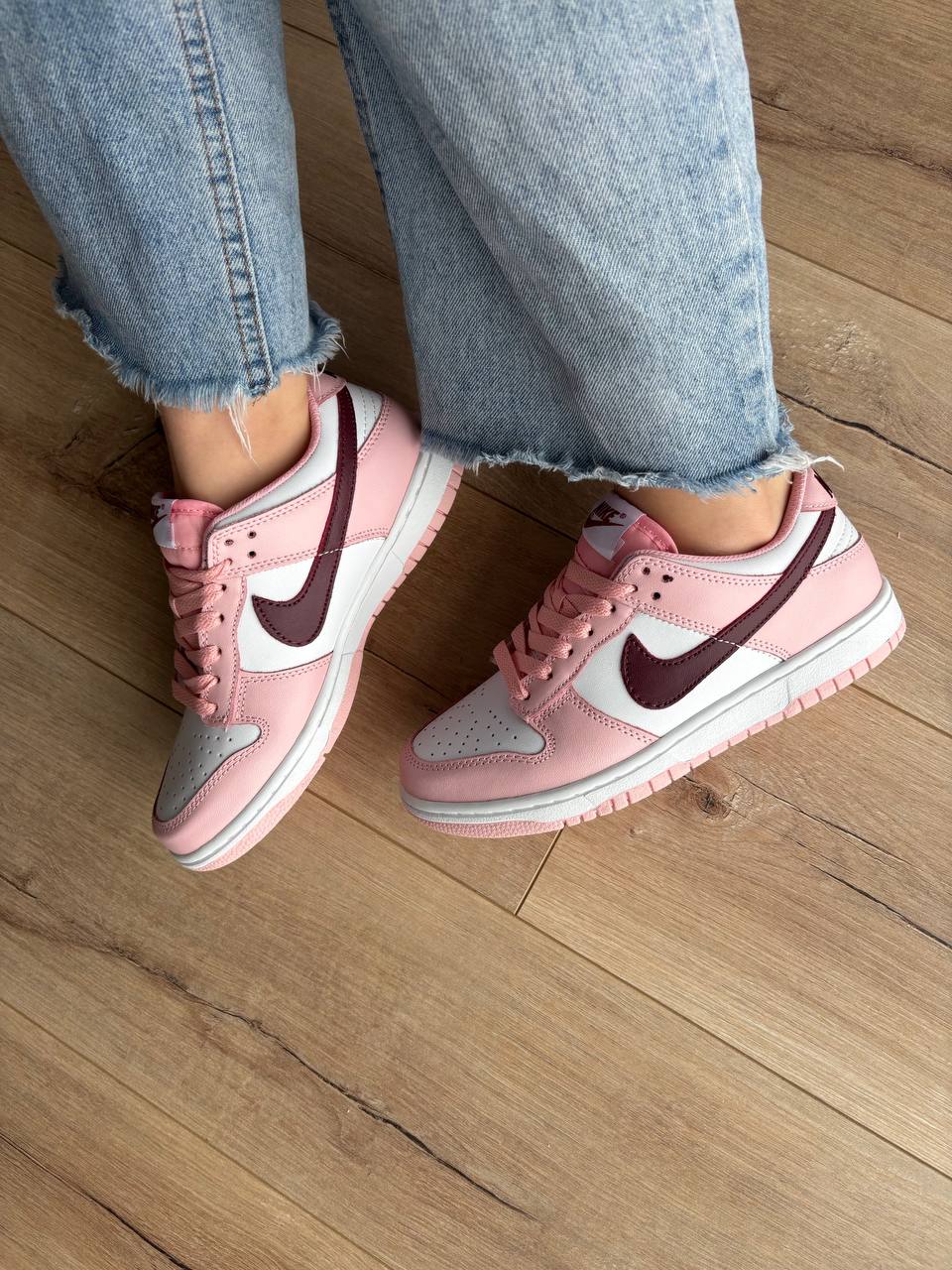 Nike Dunk Low Pink Foam Red White — модель у рожевому, червоному та білому кольорах з класичним силуетом, що поєднує яскравий вигляд, комфортну посадку та повсякденний стиль.