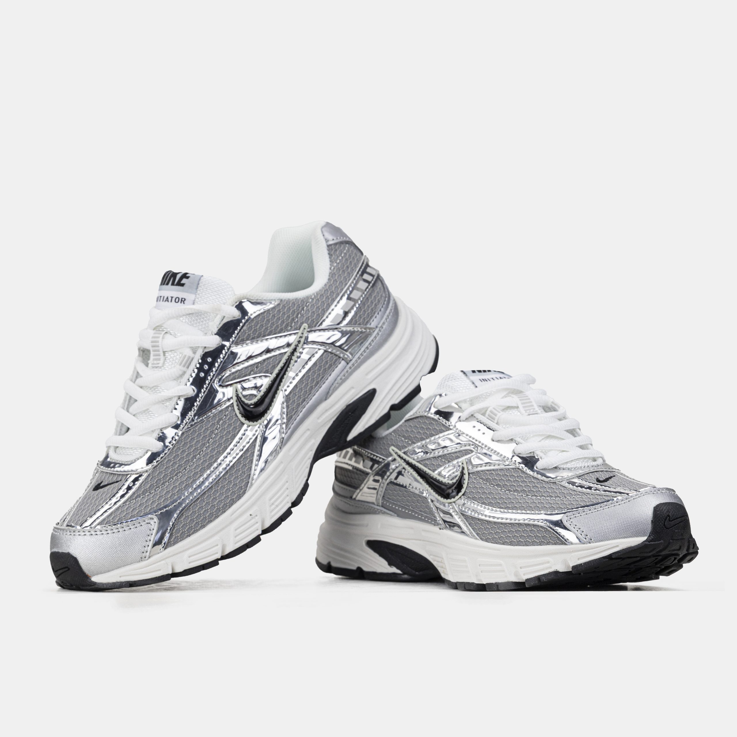Nike Initiator Grey Custom — стильна модель в сірій гамі зі сріблястими акцентами, що поєднує зручну посадку і сучасний повсякденний стиль.