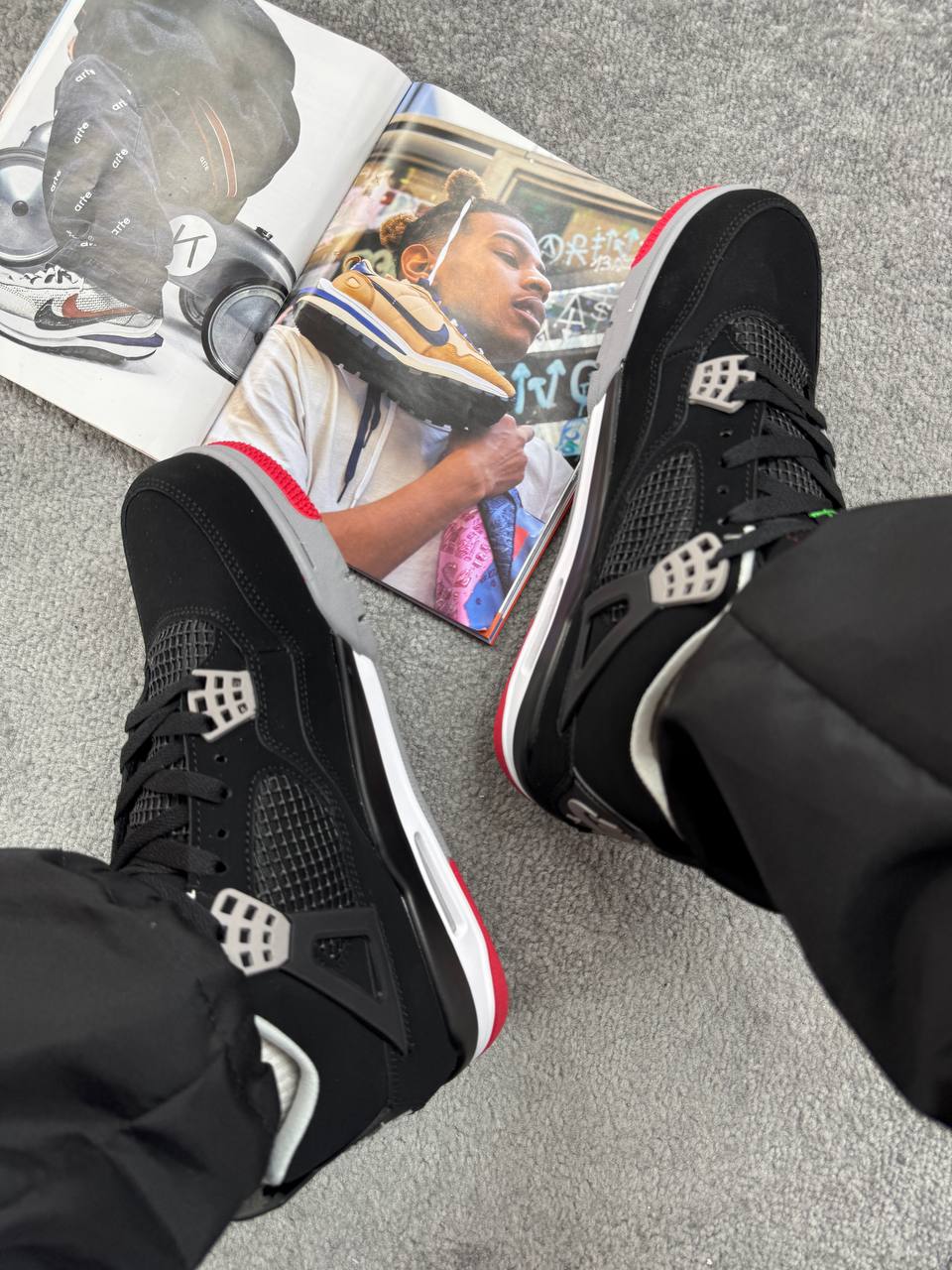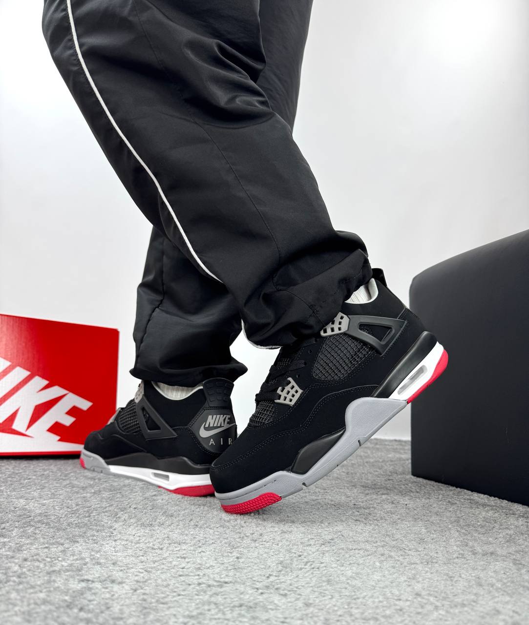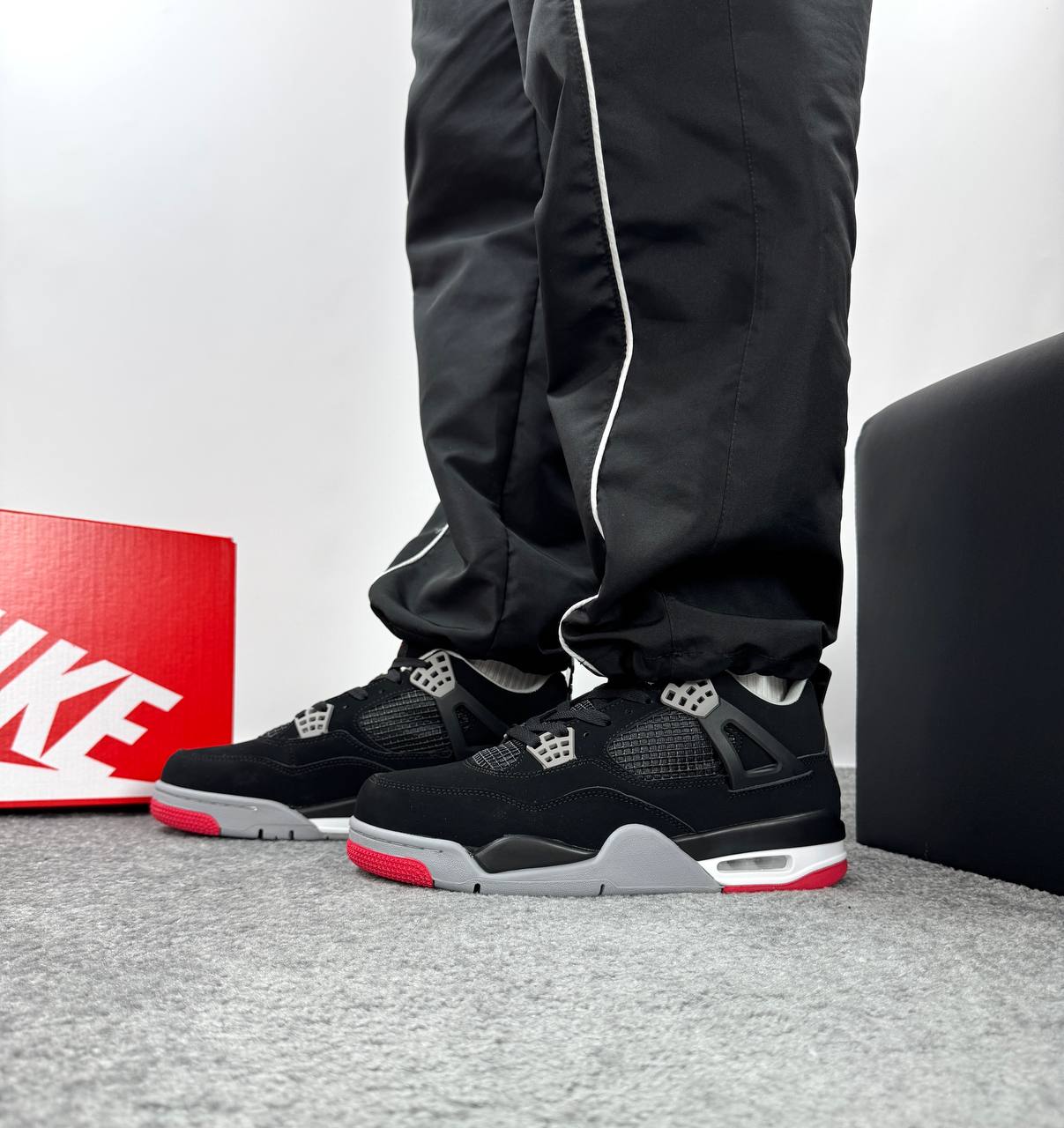 Nike Jordan 4 Black Red White — культова баскетбольна модель, яка поєднує виразний дизайн із впізнаваними кольоровими акцентами та високим рівнем комфорту.