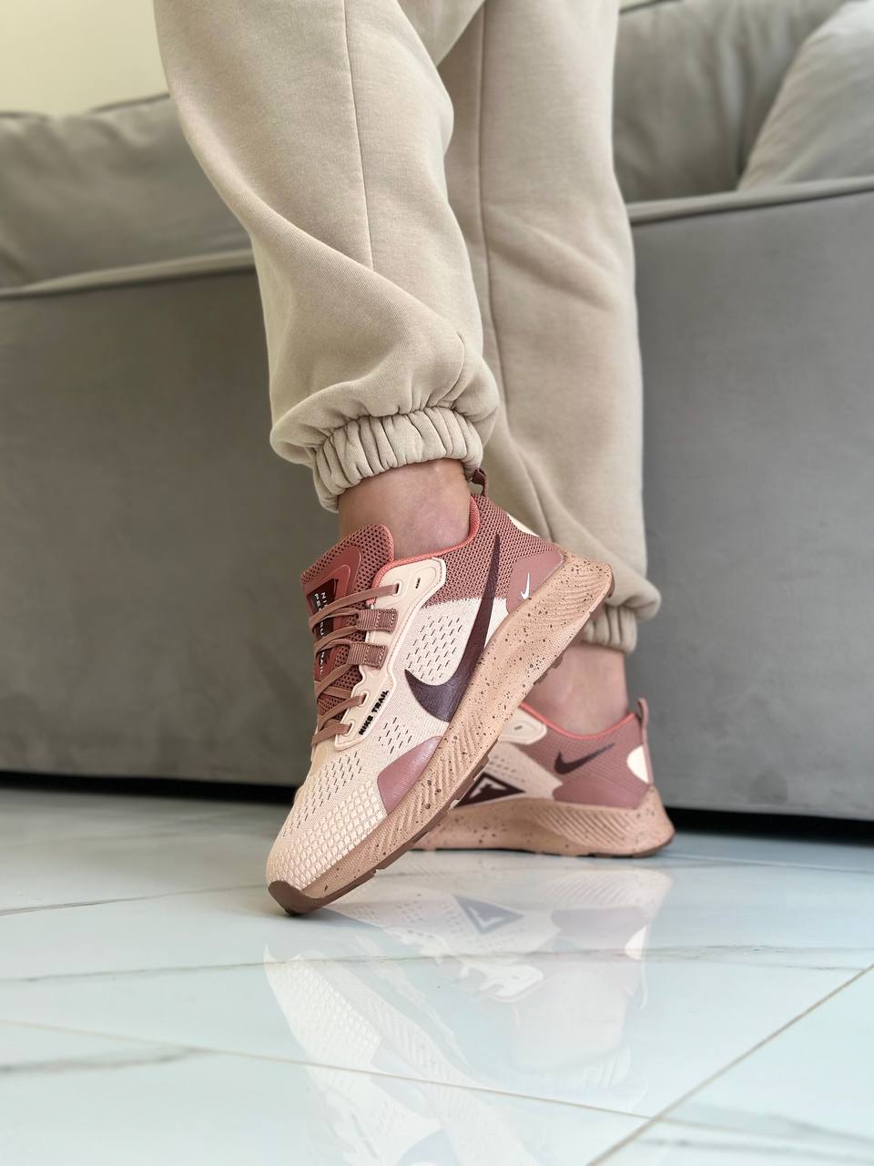 Nike Pegasus Trail 2 Desert Dust — універсальні кросівки для міста та природи у теплих пісочних відтінках. Модель забезпечує комфорт завдяки м’якій амортизації, дихаючим матеріалам і надійній підошві з гарним зчепленням.