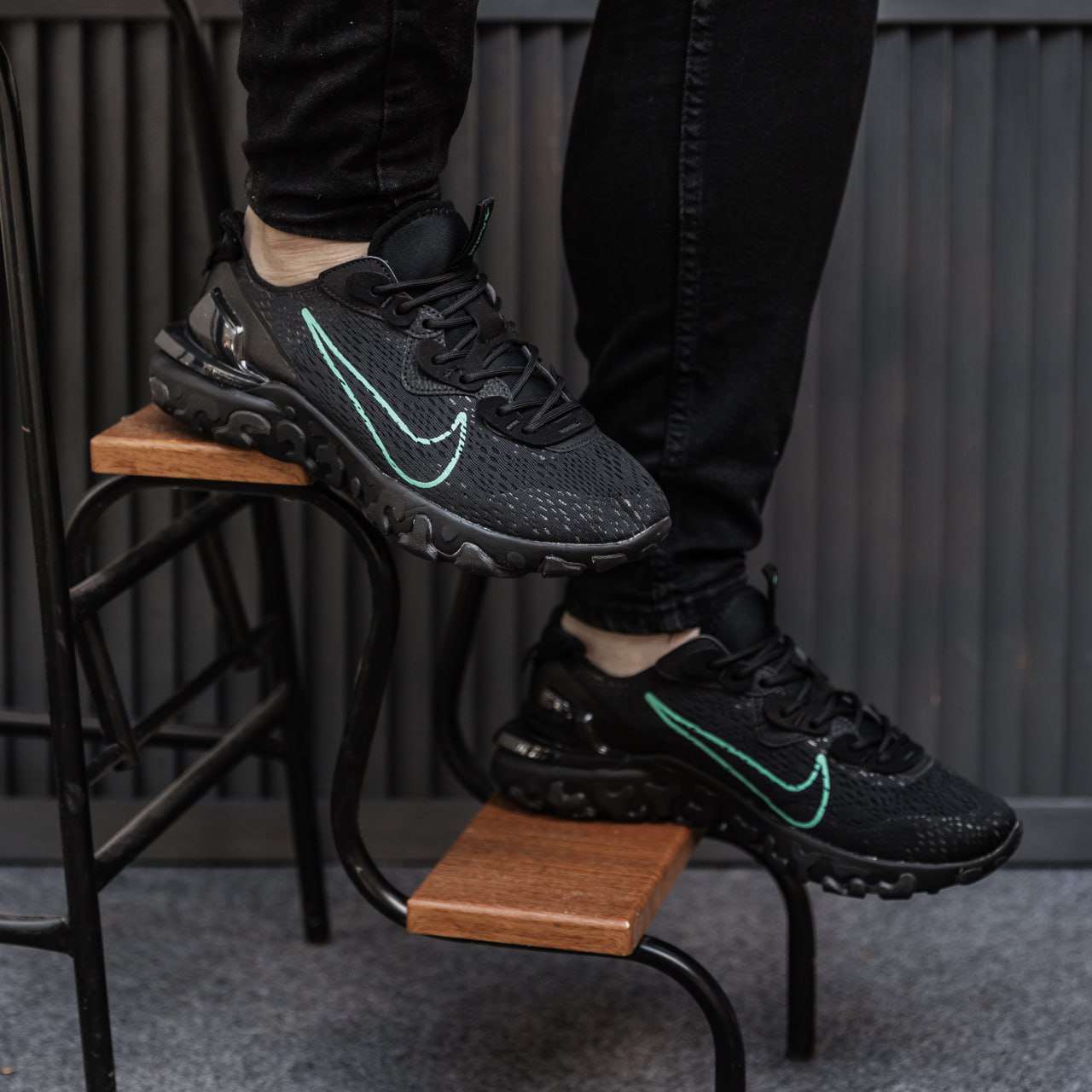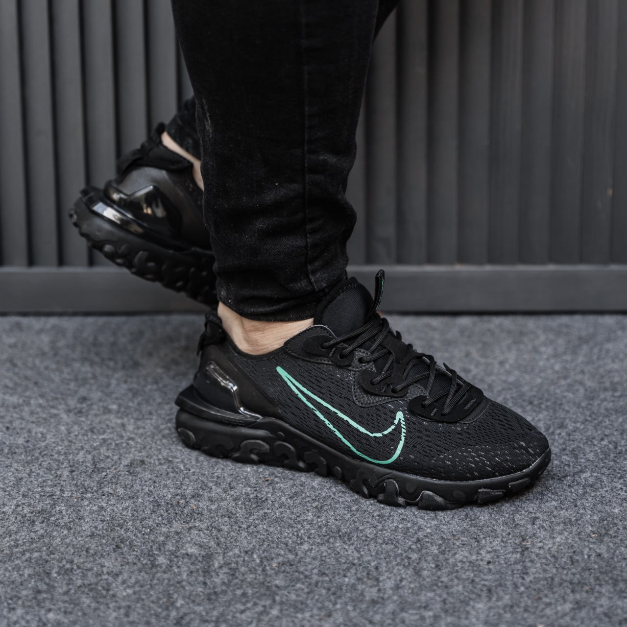 Nike React Vision Black Turquoise — стильна й комфортна модель з технологічною підошвою, чорним базовим верхом і акцентним бірюзовим Swoosh, що додає образу яскравості та сучасного настрою.