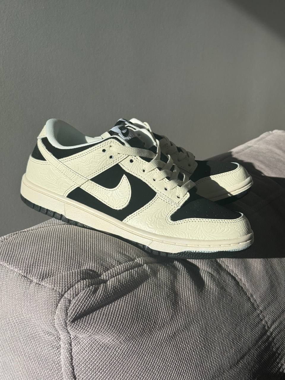 Nike SB Dunk “Beige/Black” — універсальні кросівки для повсякденного носіння в поєднанні бежевого та чорного відтінків. Контрастна колірна гама додає моделі стриманості й стилю, роблячи її легкою для поєднання з різним гардеробом.