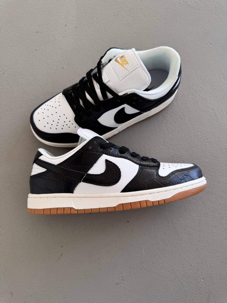 Nike Dunk Low “Black Croc” — стильна повсякденна модель у класичному чорному кольорі. Верх виконаний із шкіри з тисненням під крокодилячу фактуру, що додає взуттю виразності й характеру.
